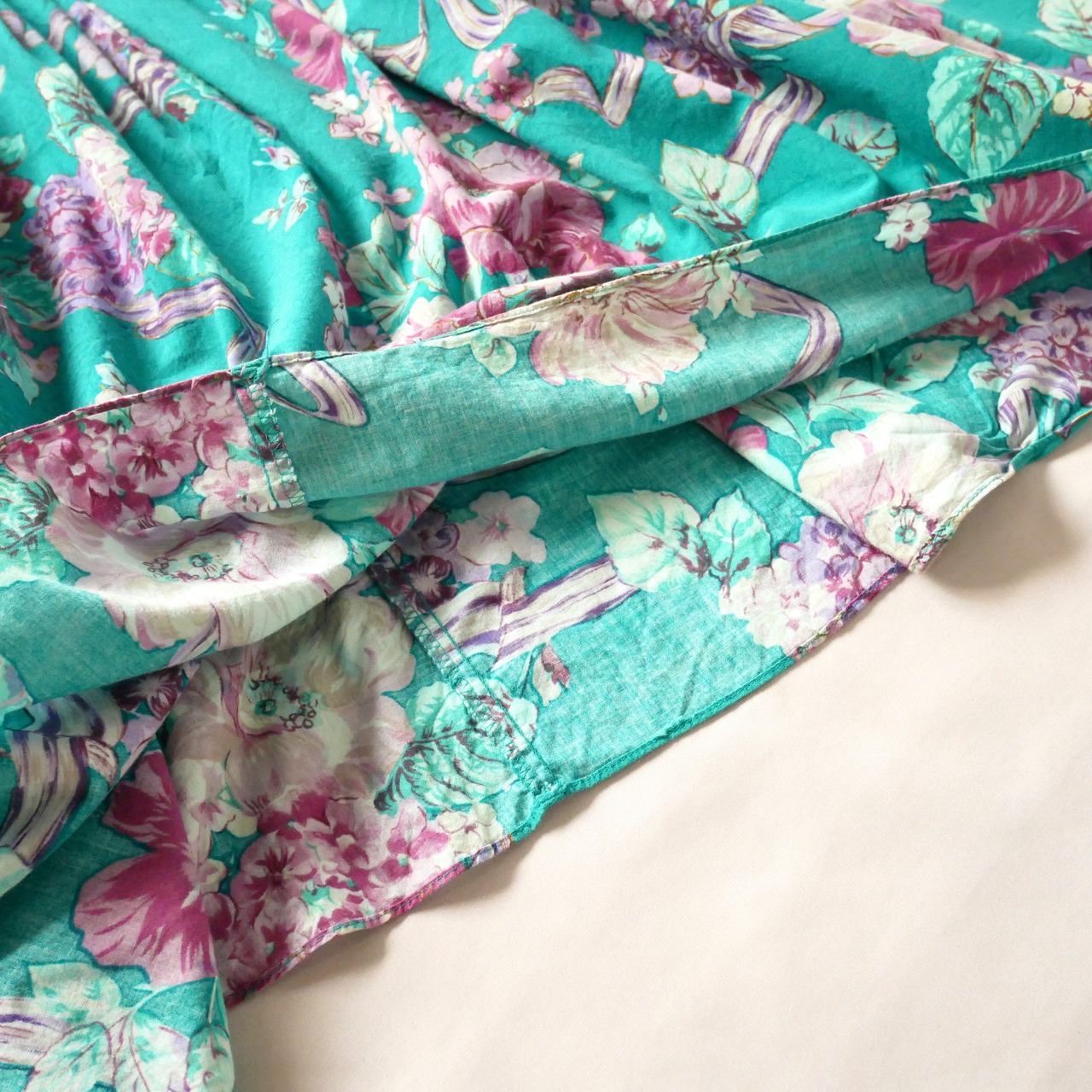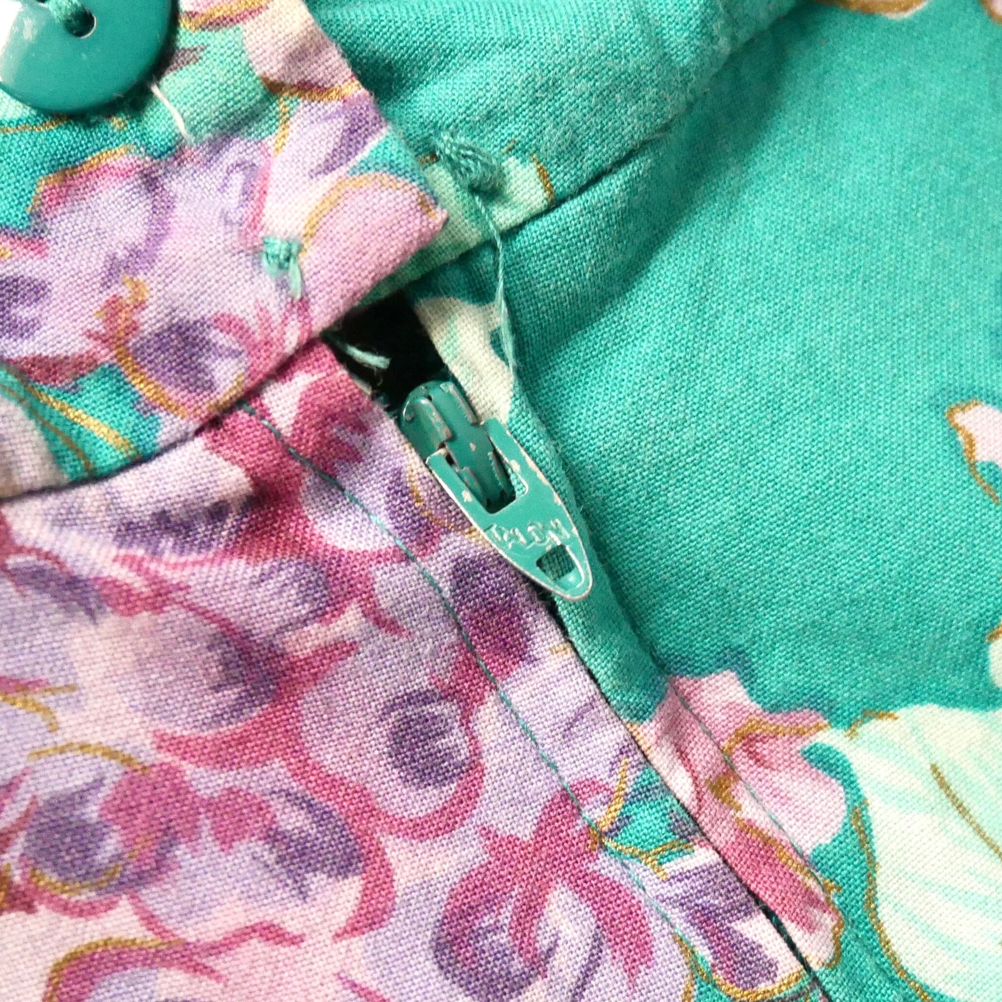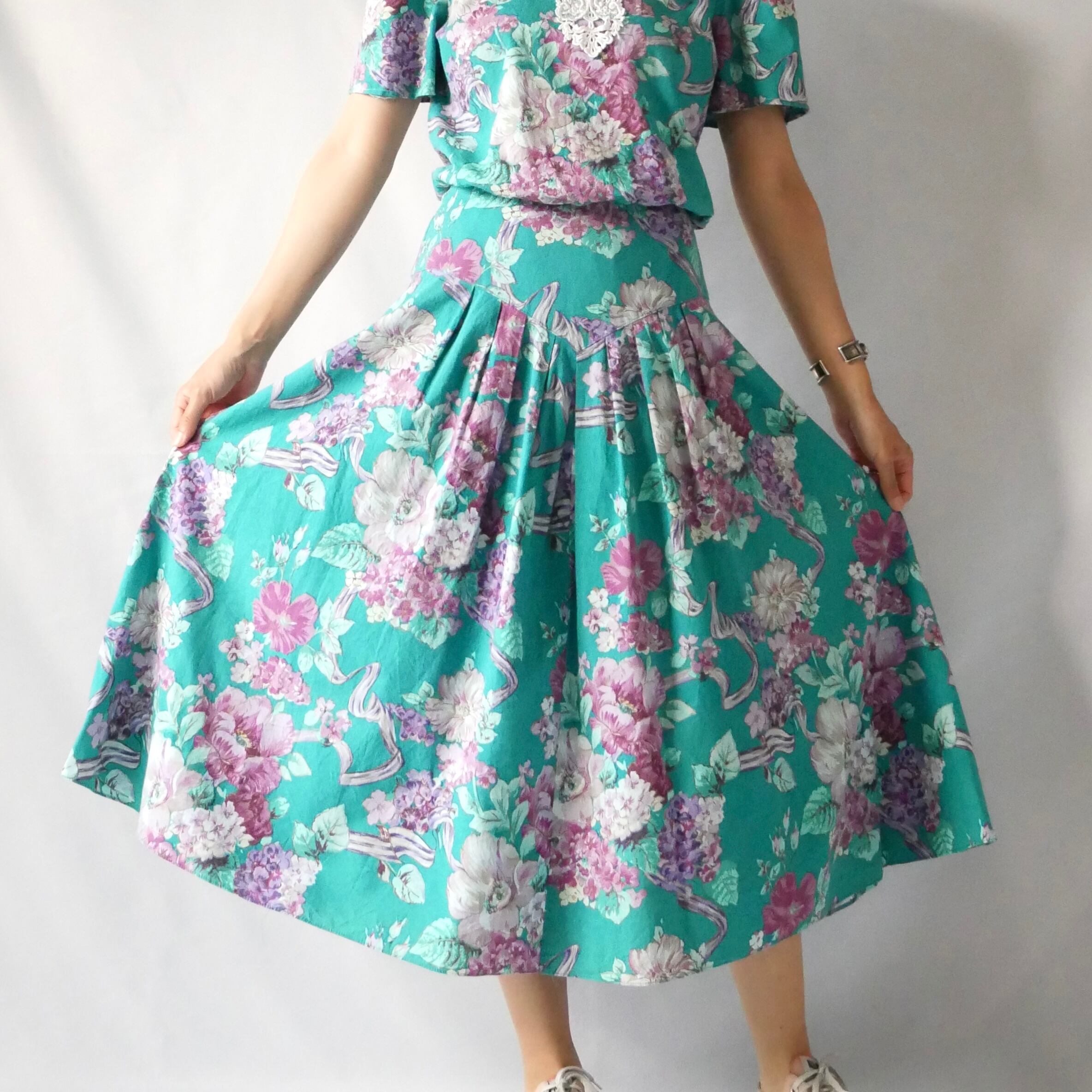 Made in USA green floral long onepiece アメリカ製 グリーン花柄 白レース襟 マキシワンピース