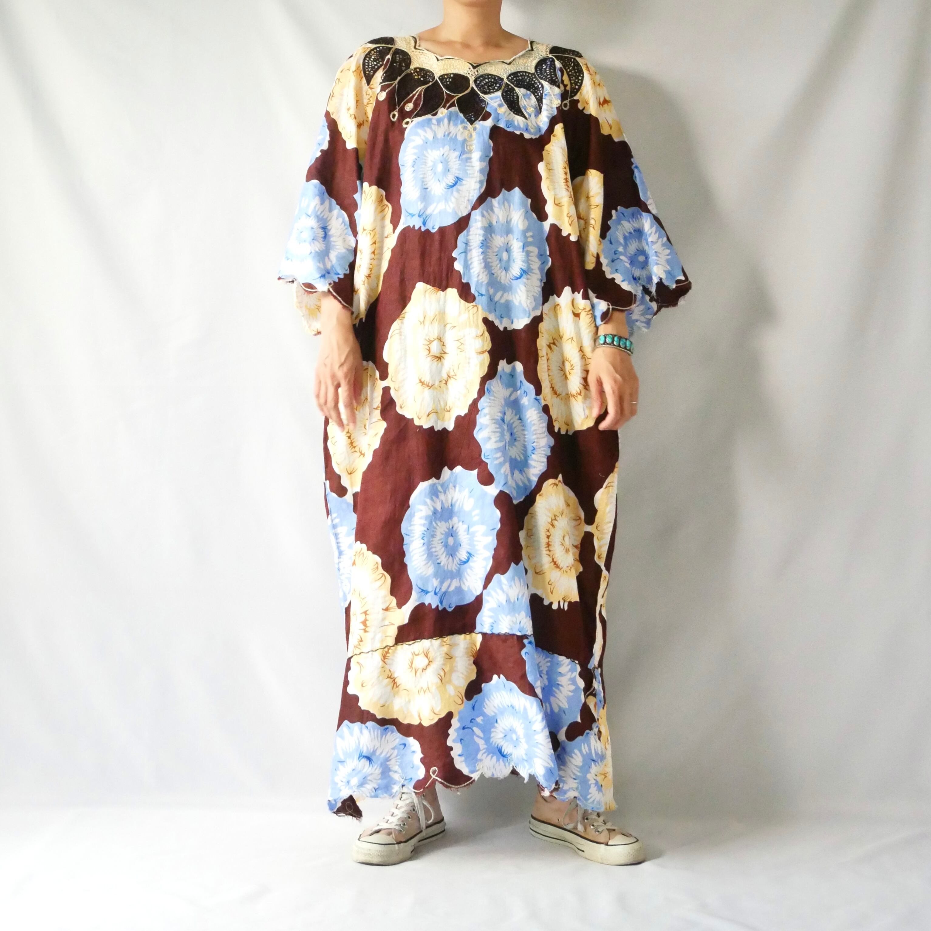 Batik flower maxi onepiece 花柄 刺繍入り バティック マキシワンピース