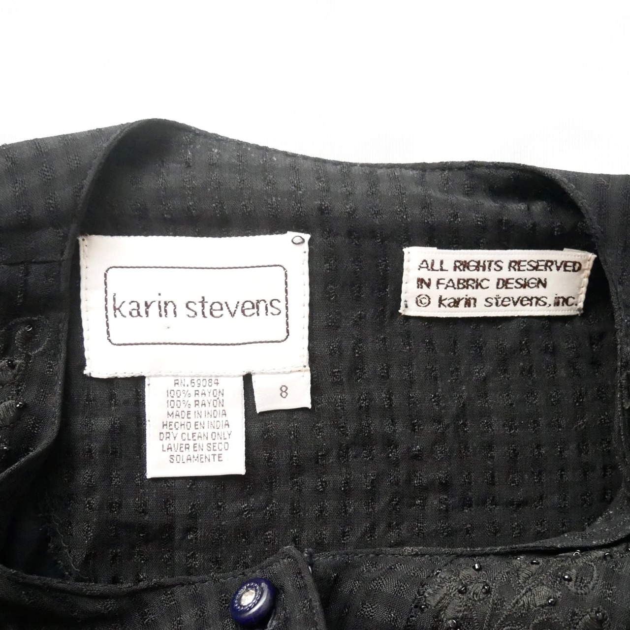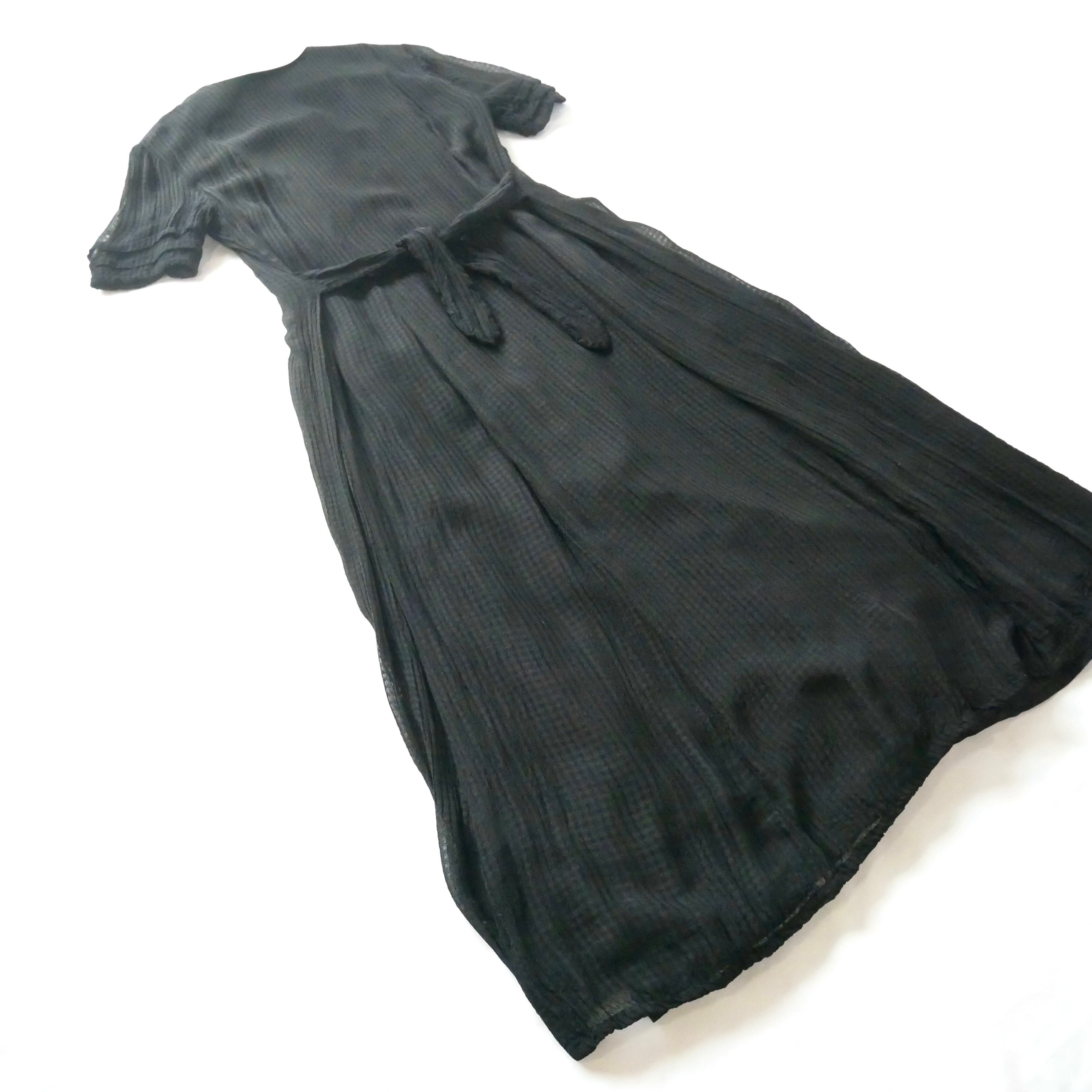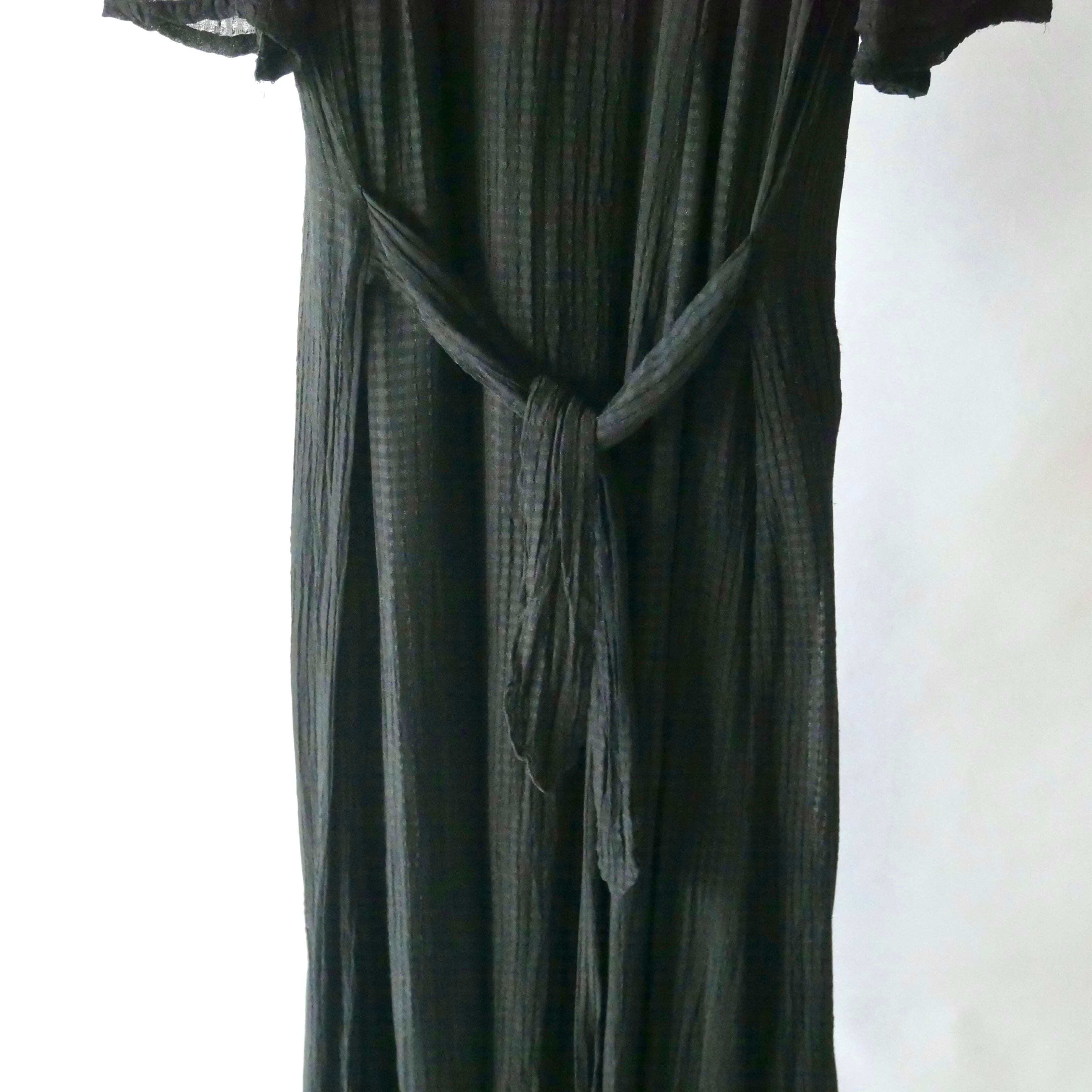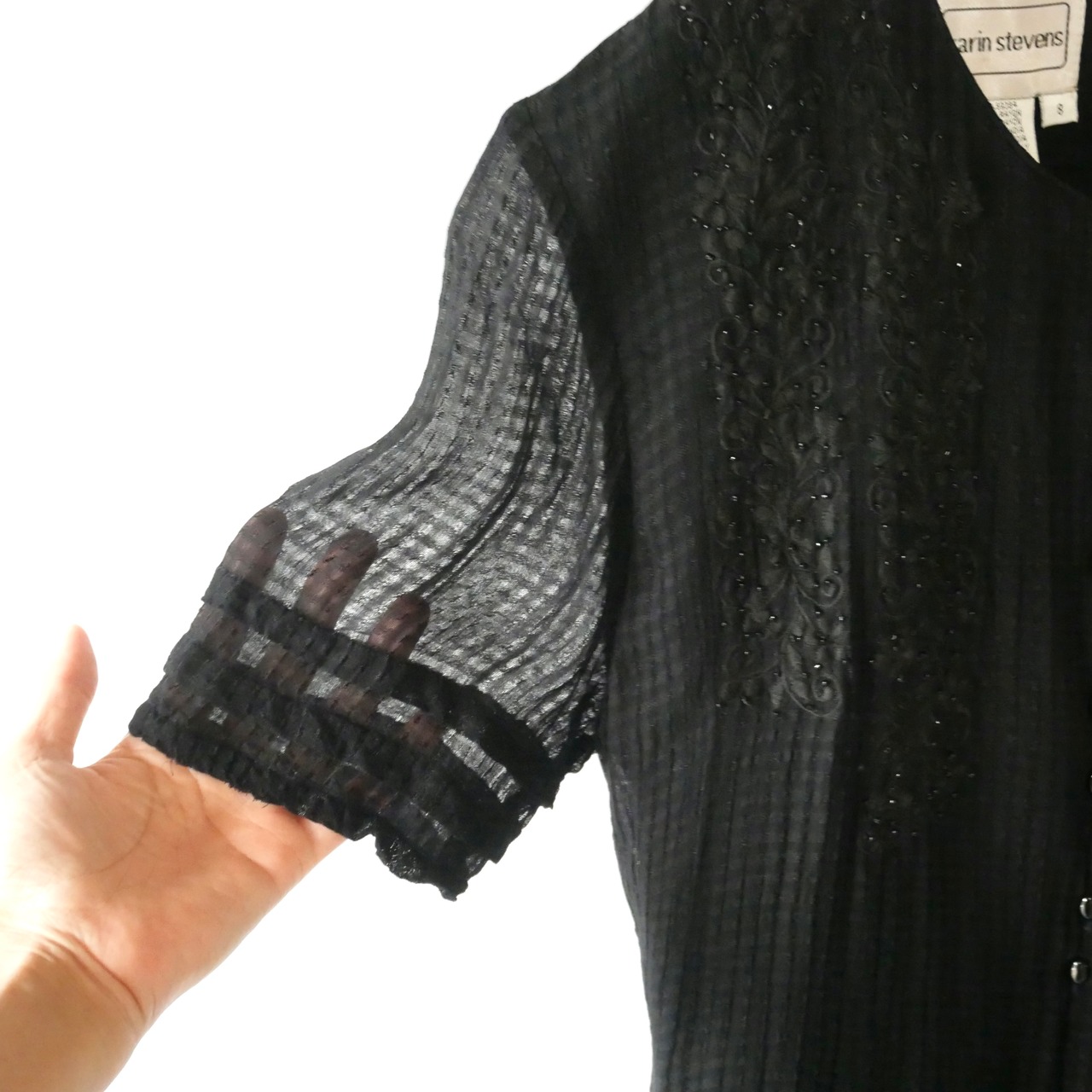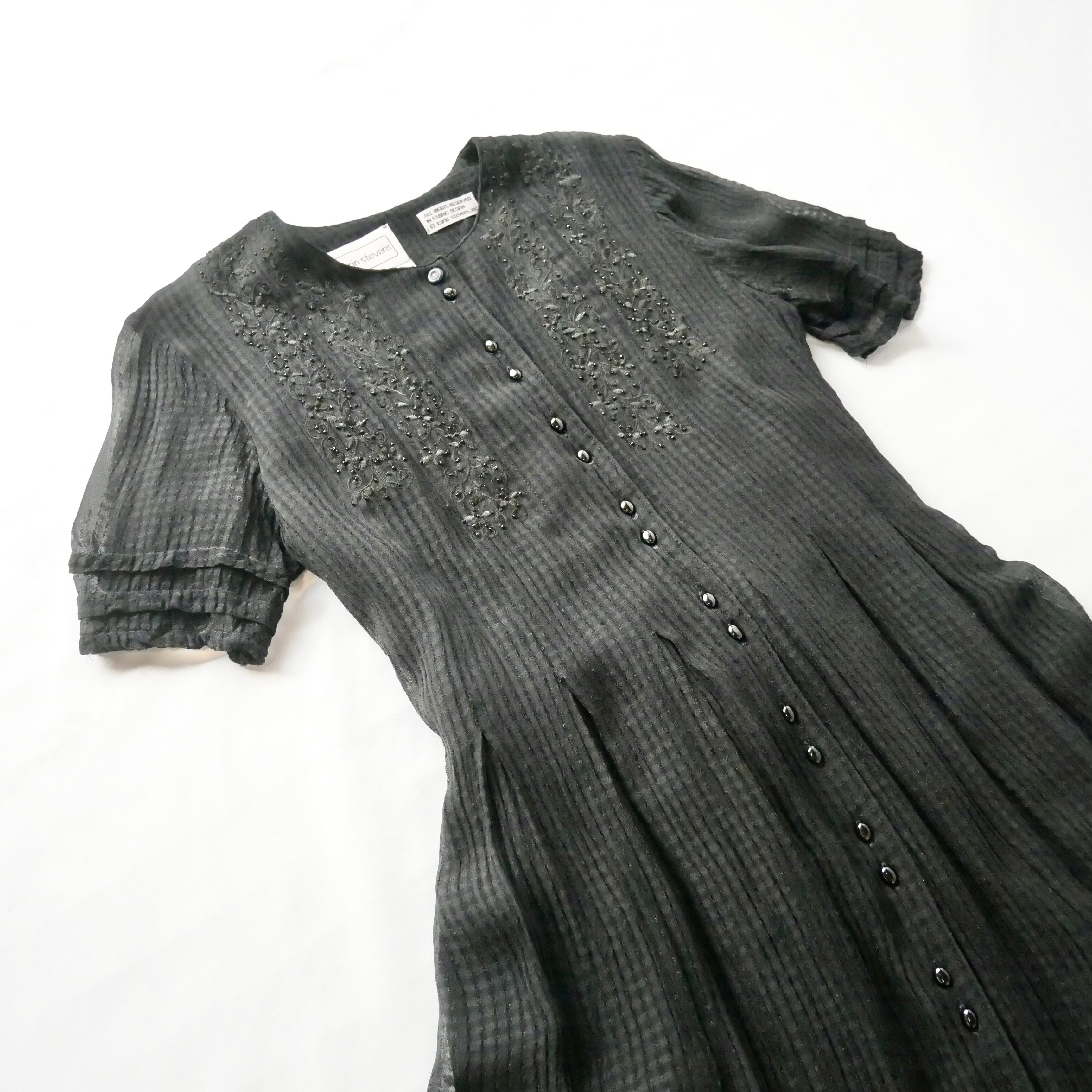 胸元の細かな刺繍のビーズ使いが可愛い黒インド製レーヨン前開きワンピースです。