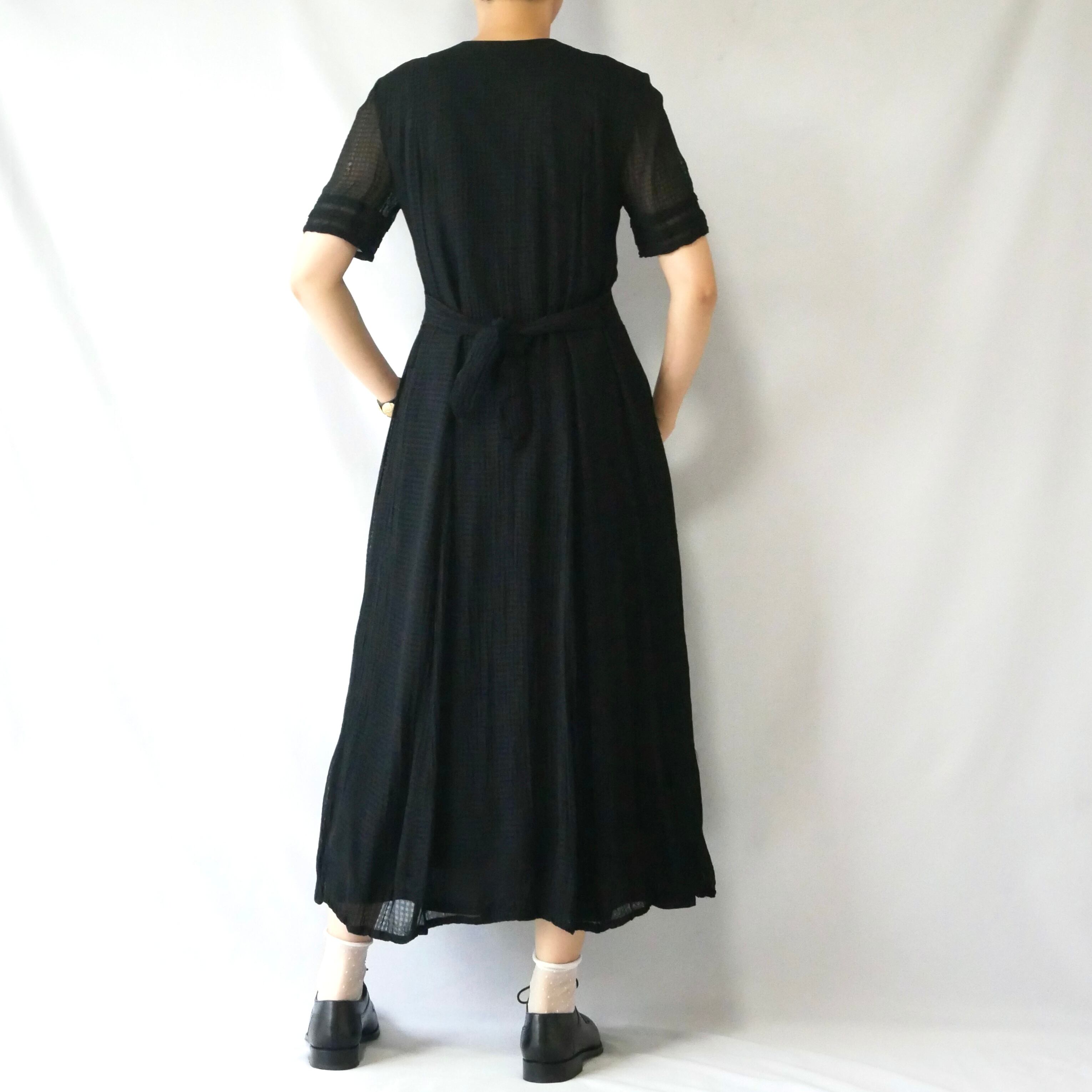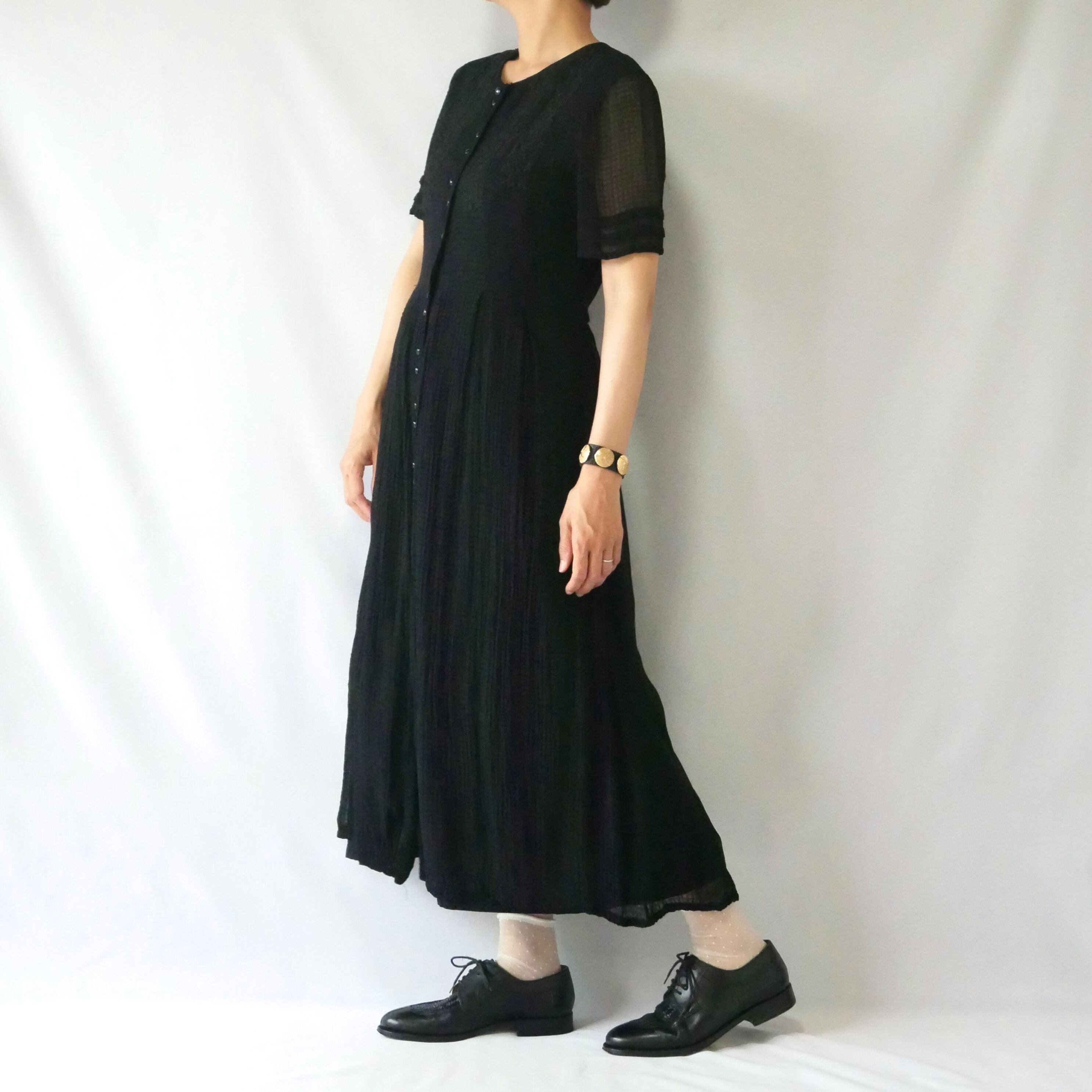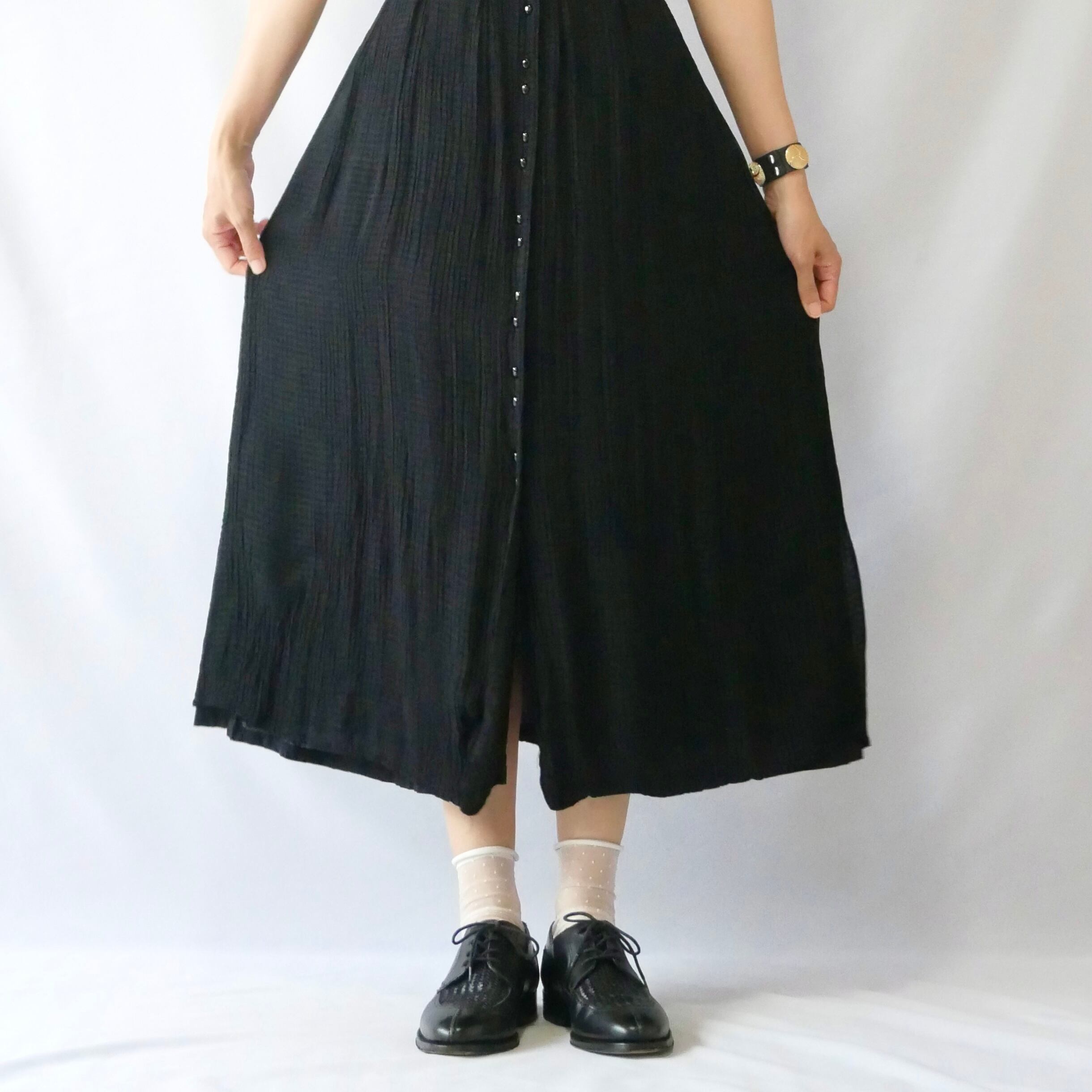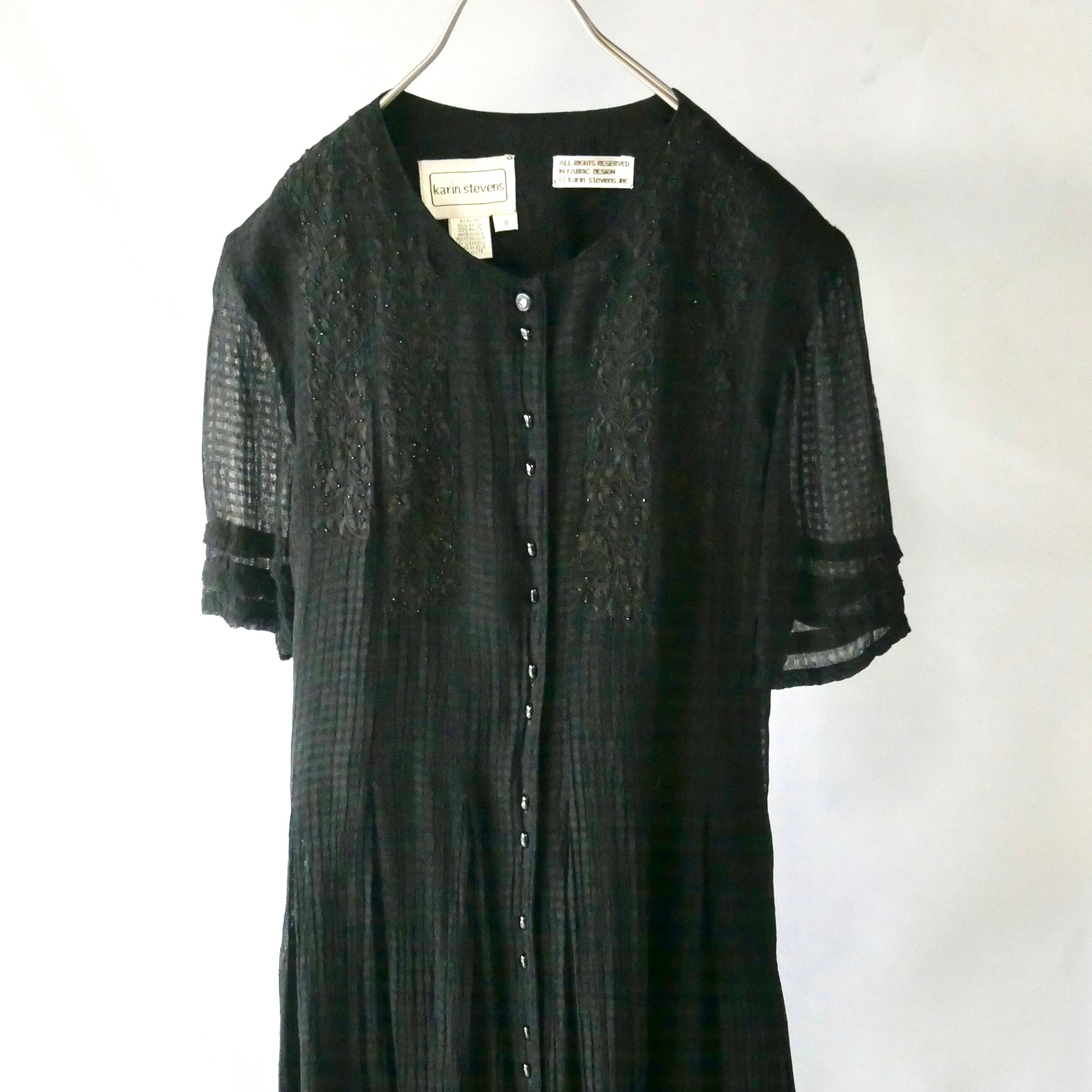 Black rayon embroidery maxi onepiece 黒 レーヨン 胸元刺繍ビーズ 前開き マキシワンピース