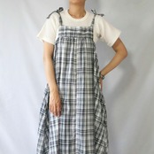 肩紐のリボン結びが可愛いチェックワンピースです。