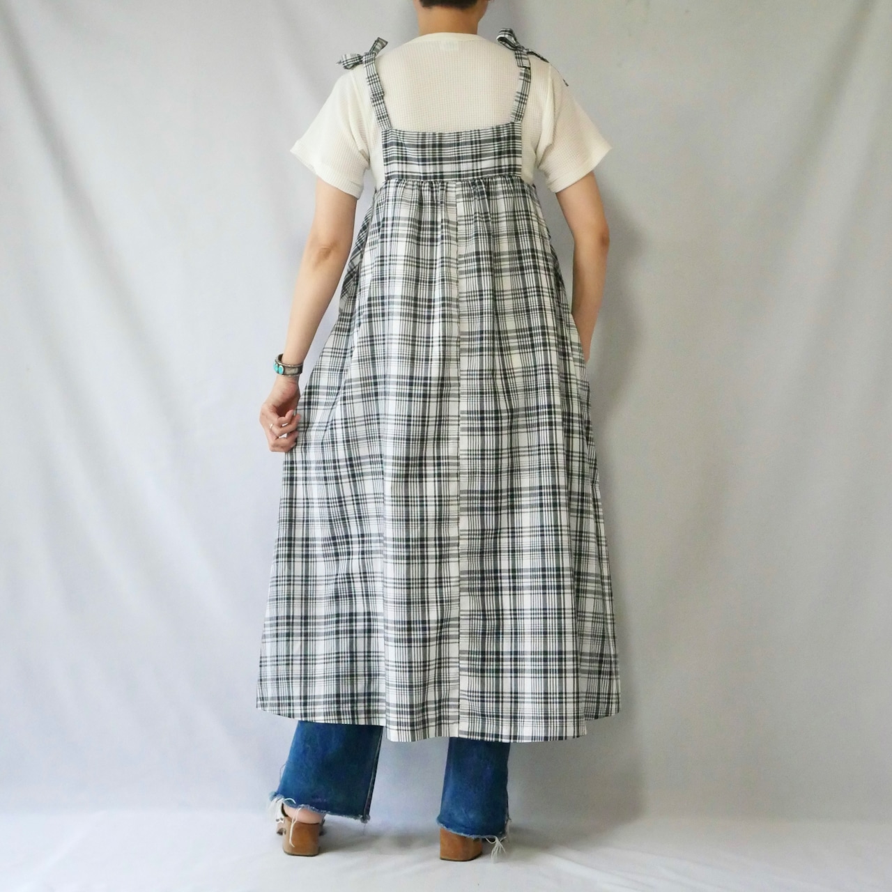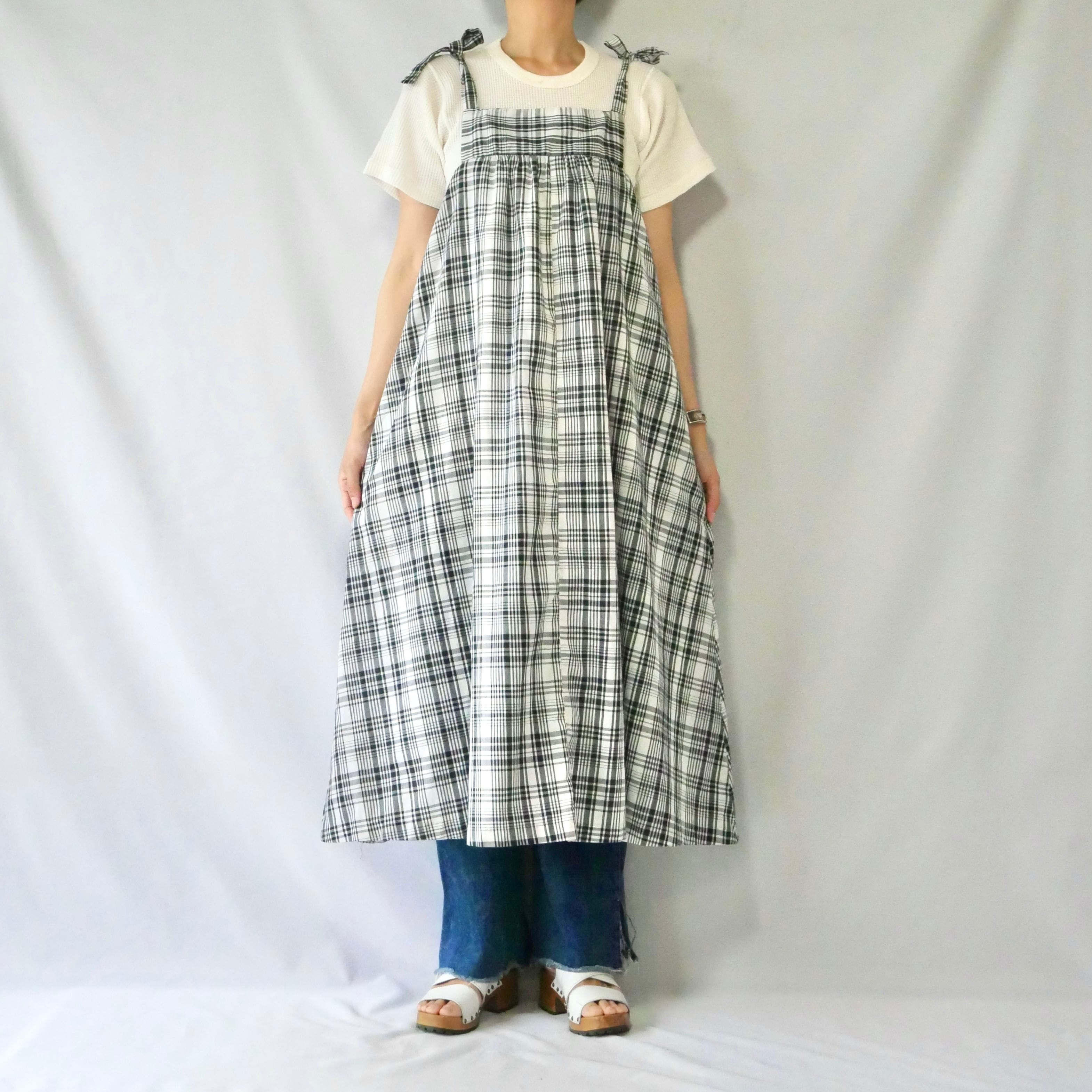 70s vintage check ribbon onepiece 70年代 ヴィンテージ チェック キャミ ロングワンピース