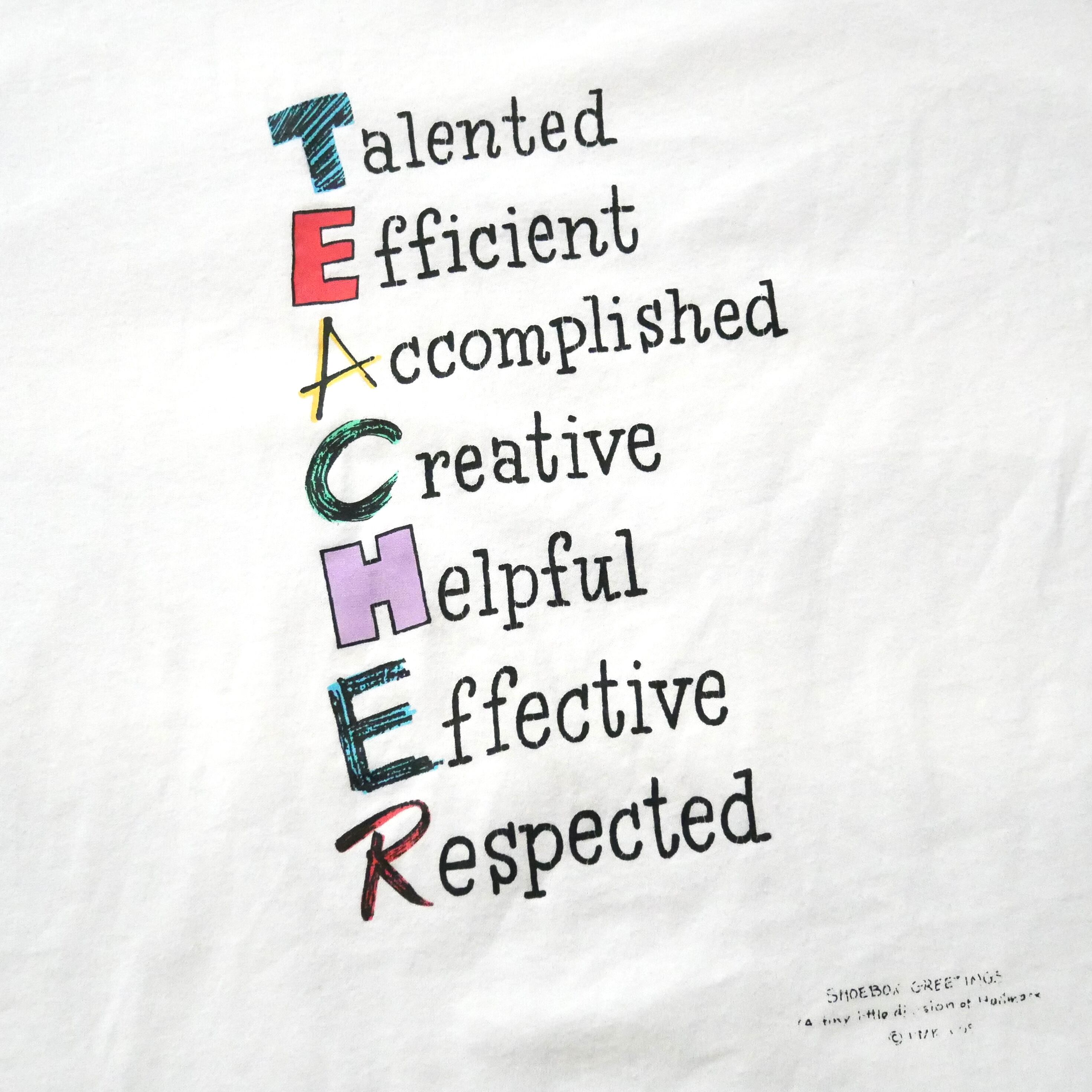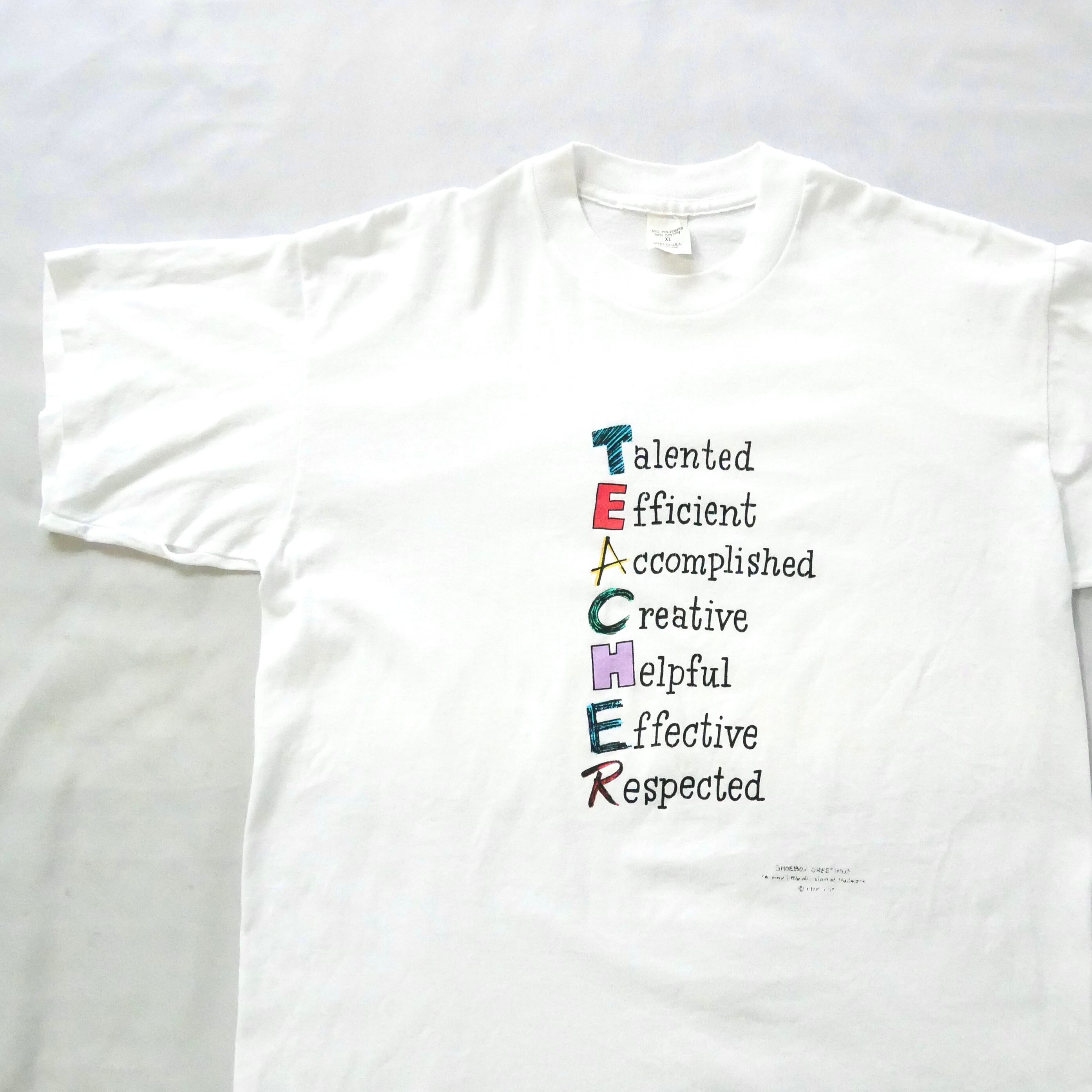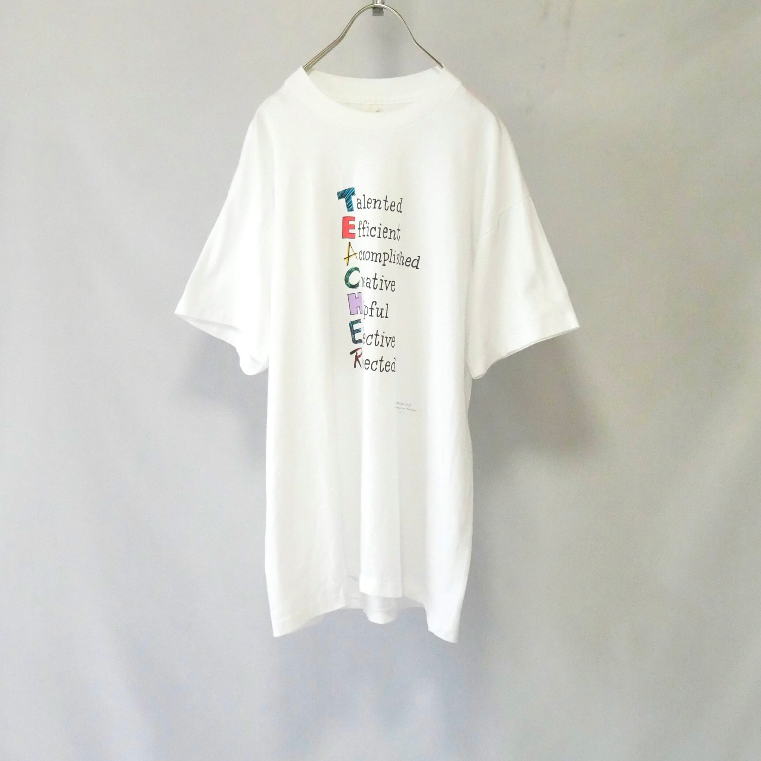 90年代USA製XLサイズ"TEACHER"メッセージTシャツです。