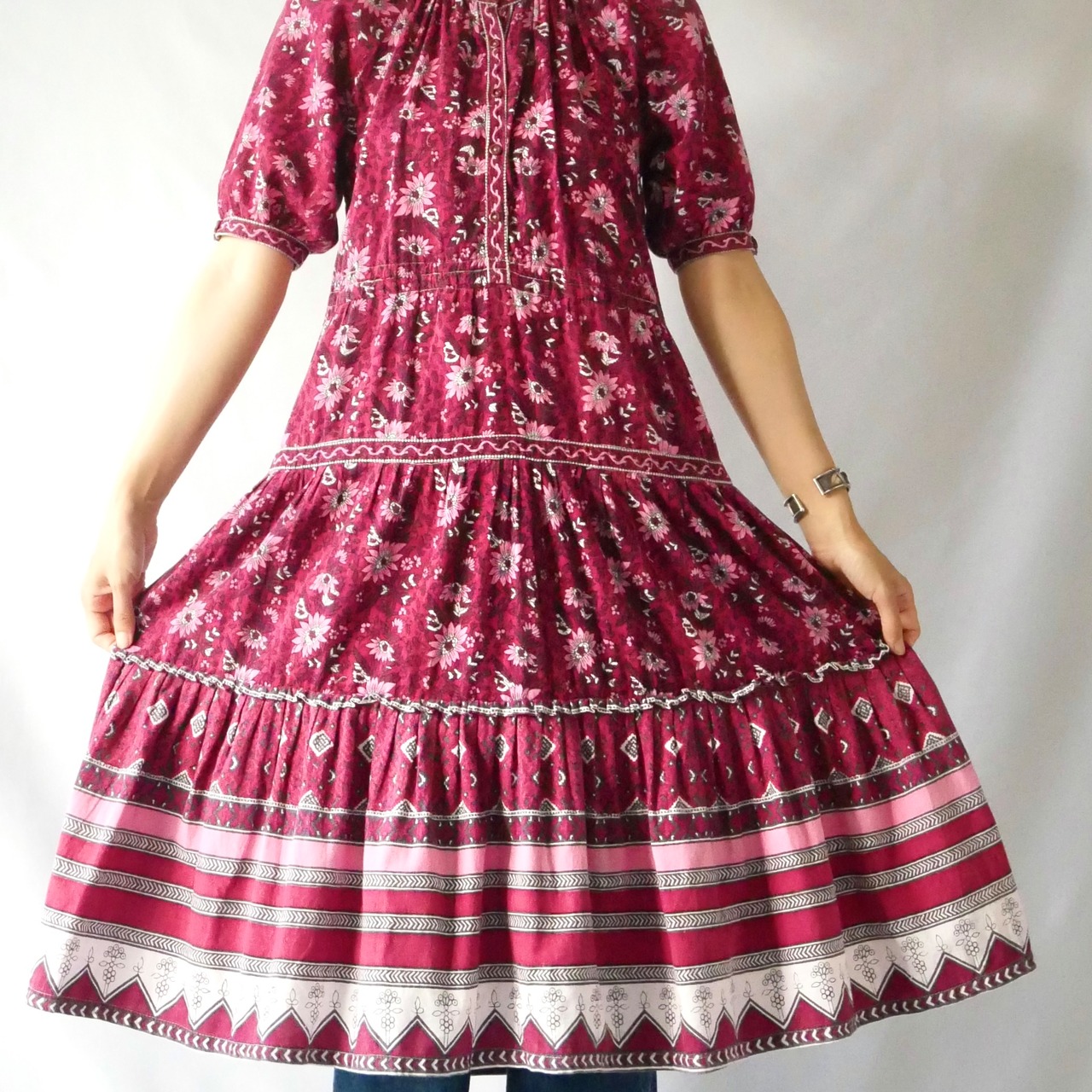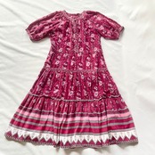 濃いめのピンクと淡いピンクの組み合わせが可愛いヴィンテージインド綿ワンピースです。