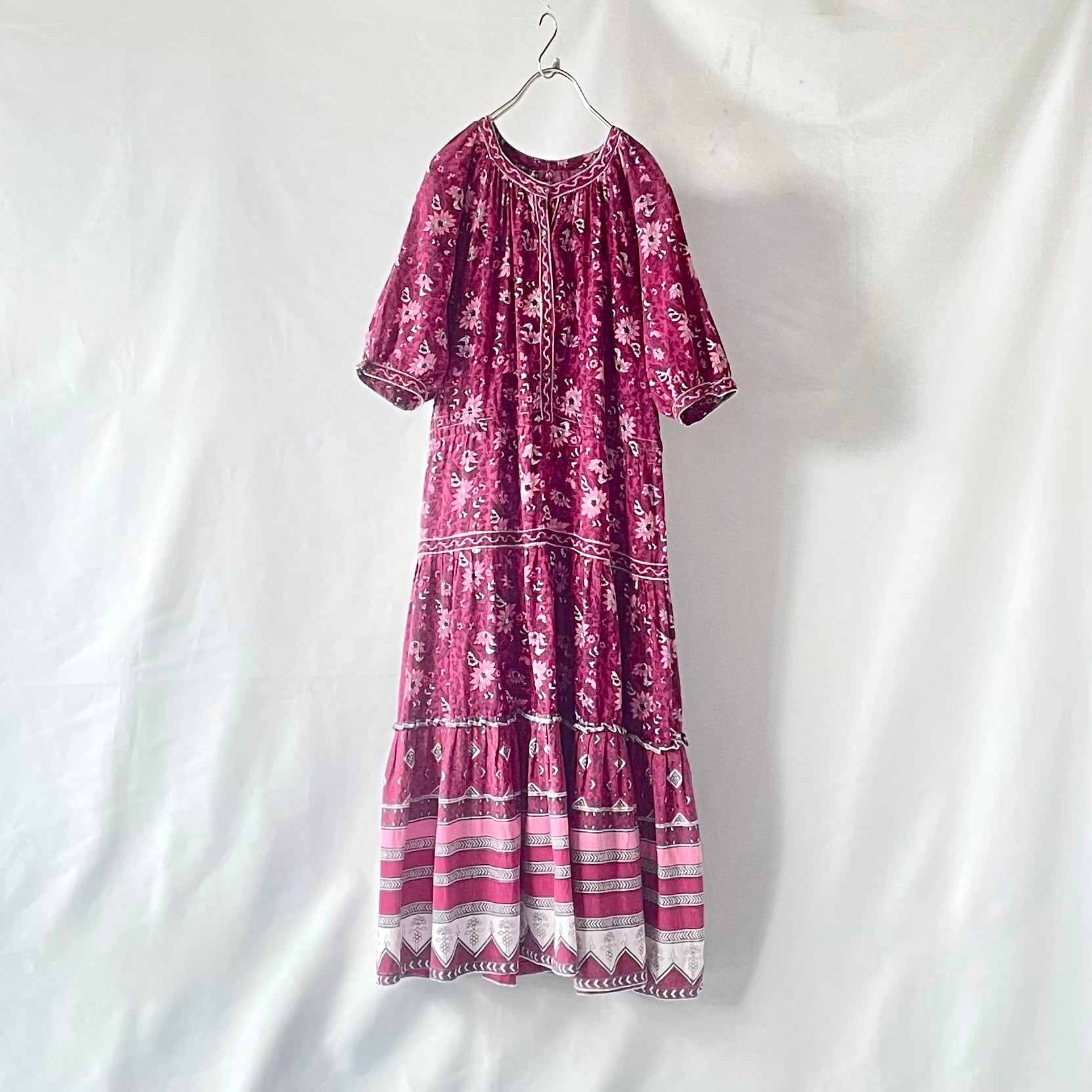 70s vintage india cotton pink floral onepiece 70年代 ヴィンテージ ピンク 花柄 ロングワンピース