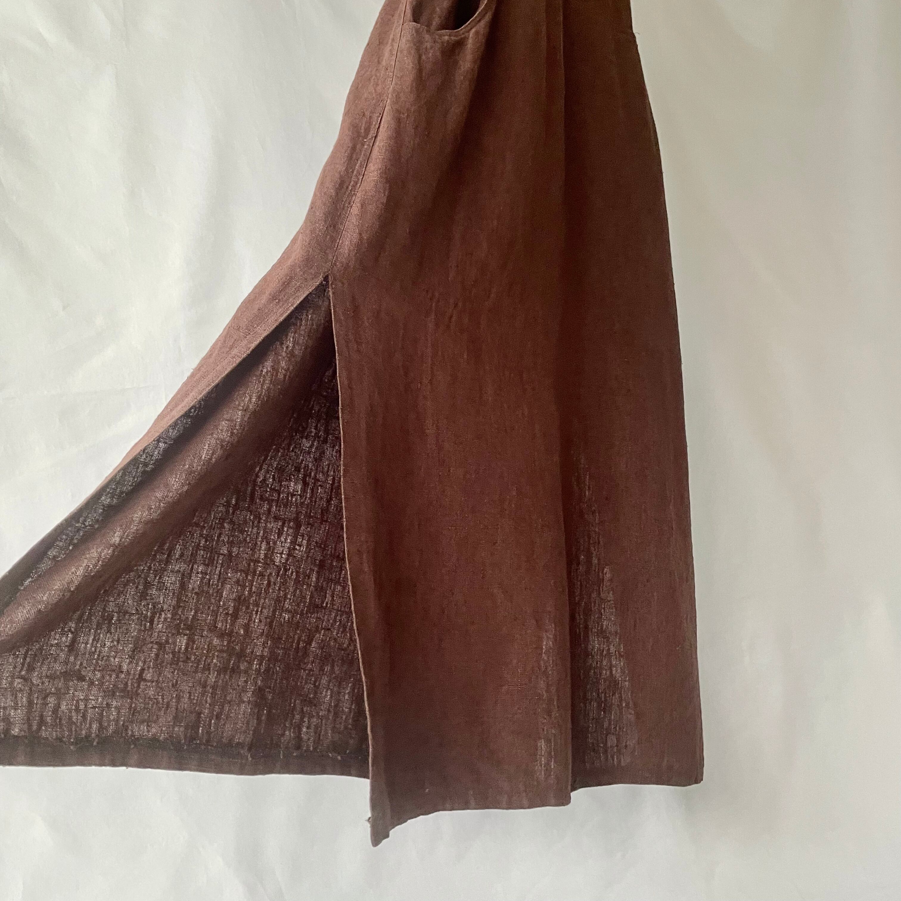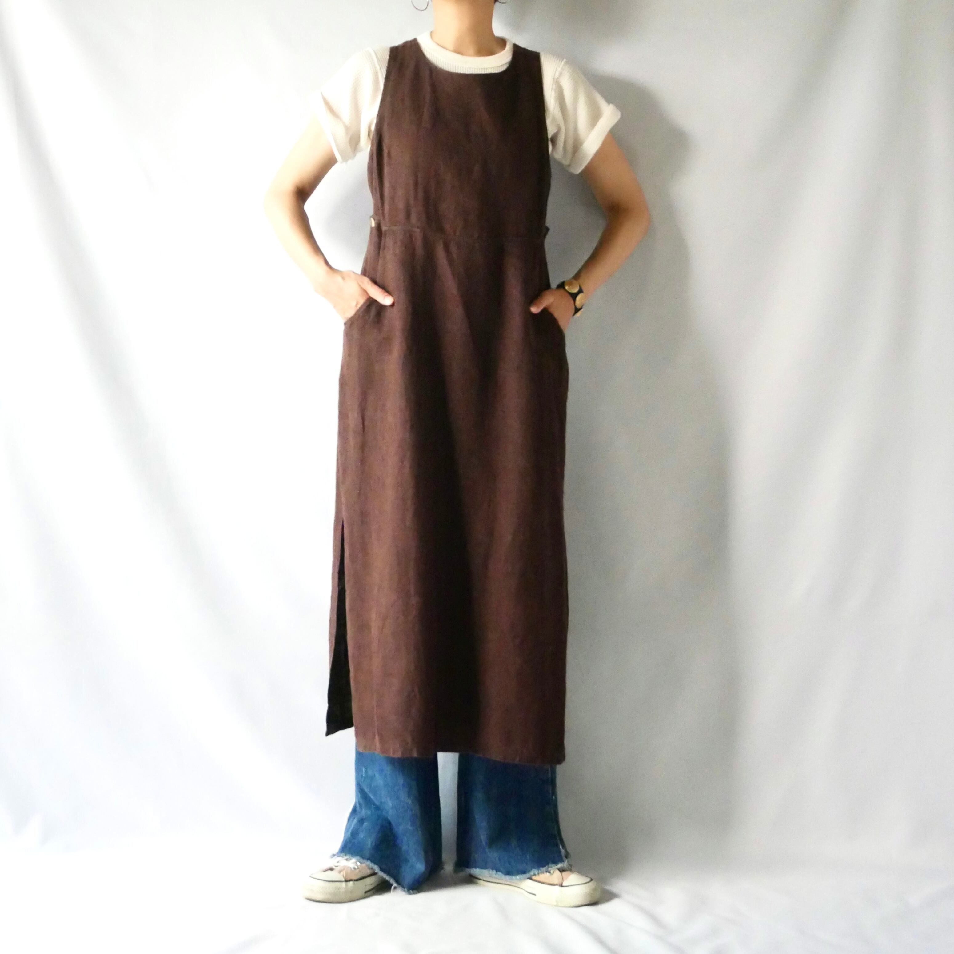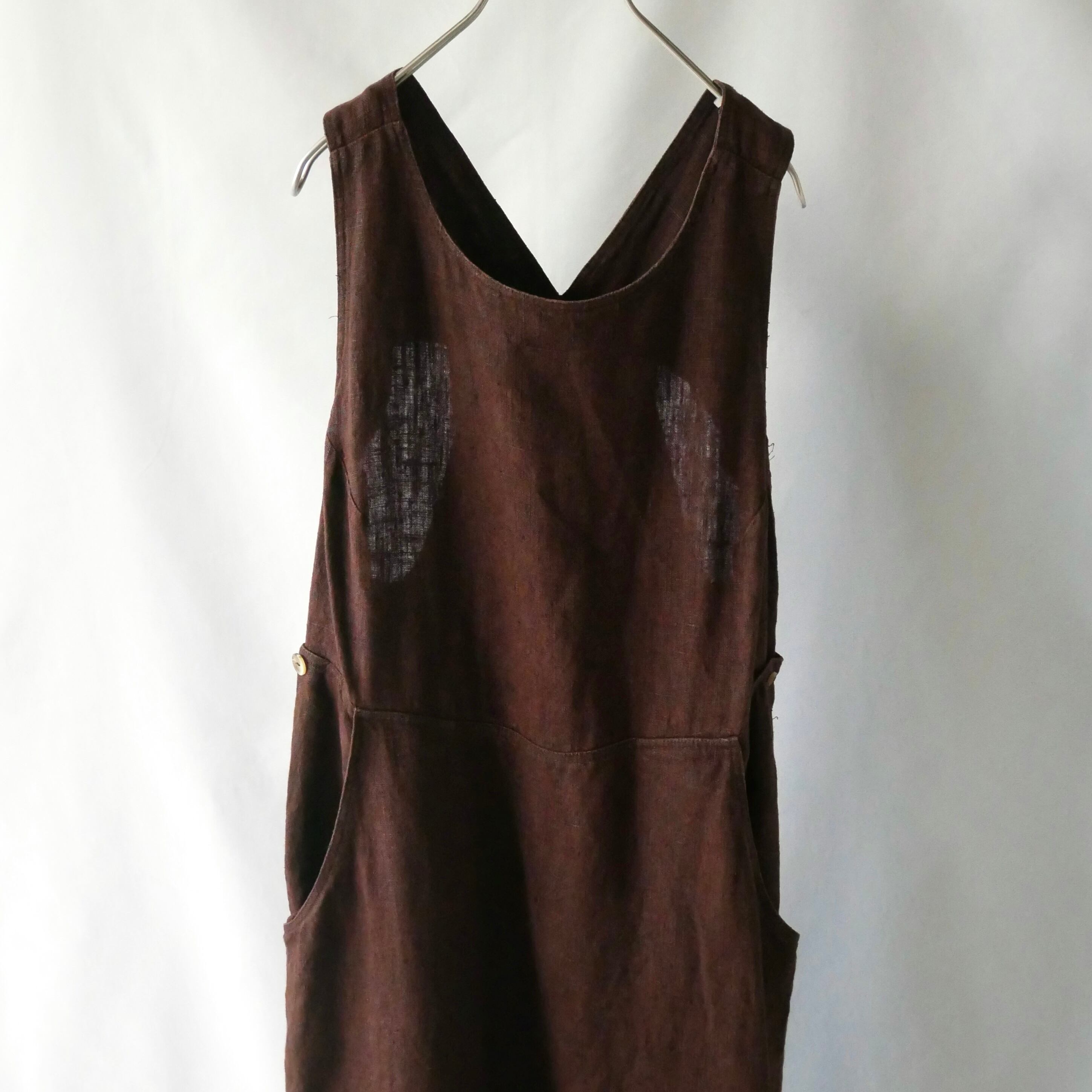 Linen harve benard brown onepiece リネン ブラウン サロペット ジャンパースカート型 ロングワンピース
