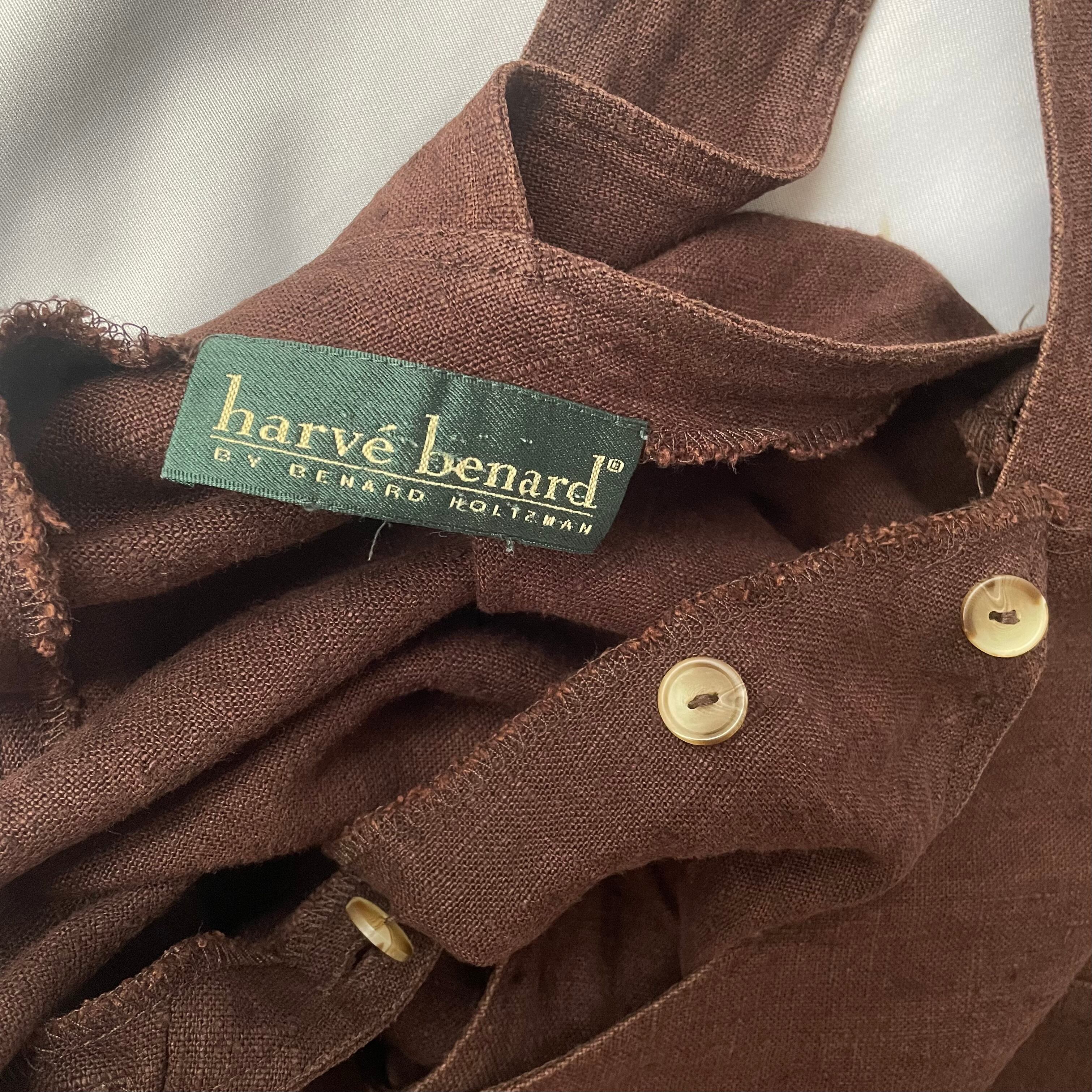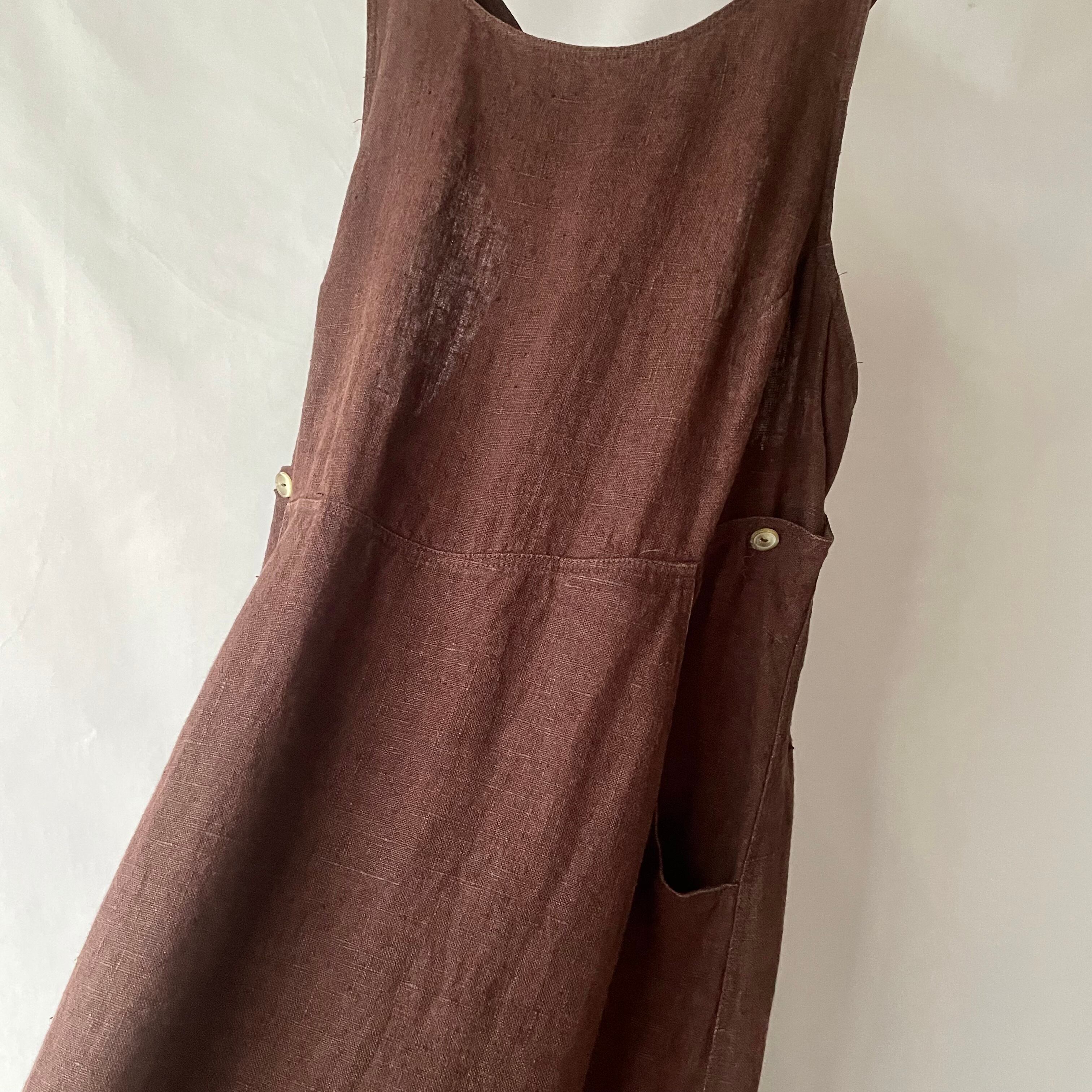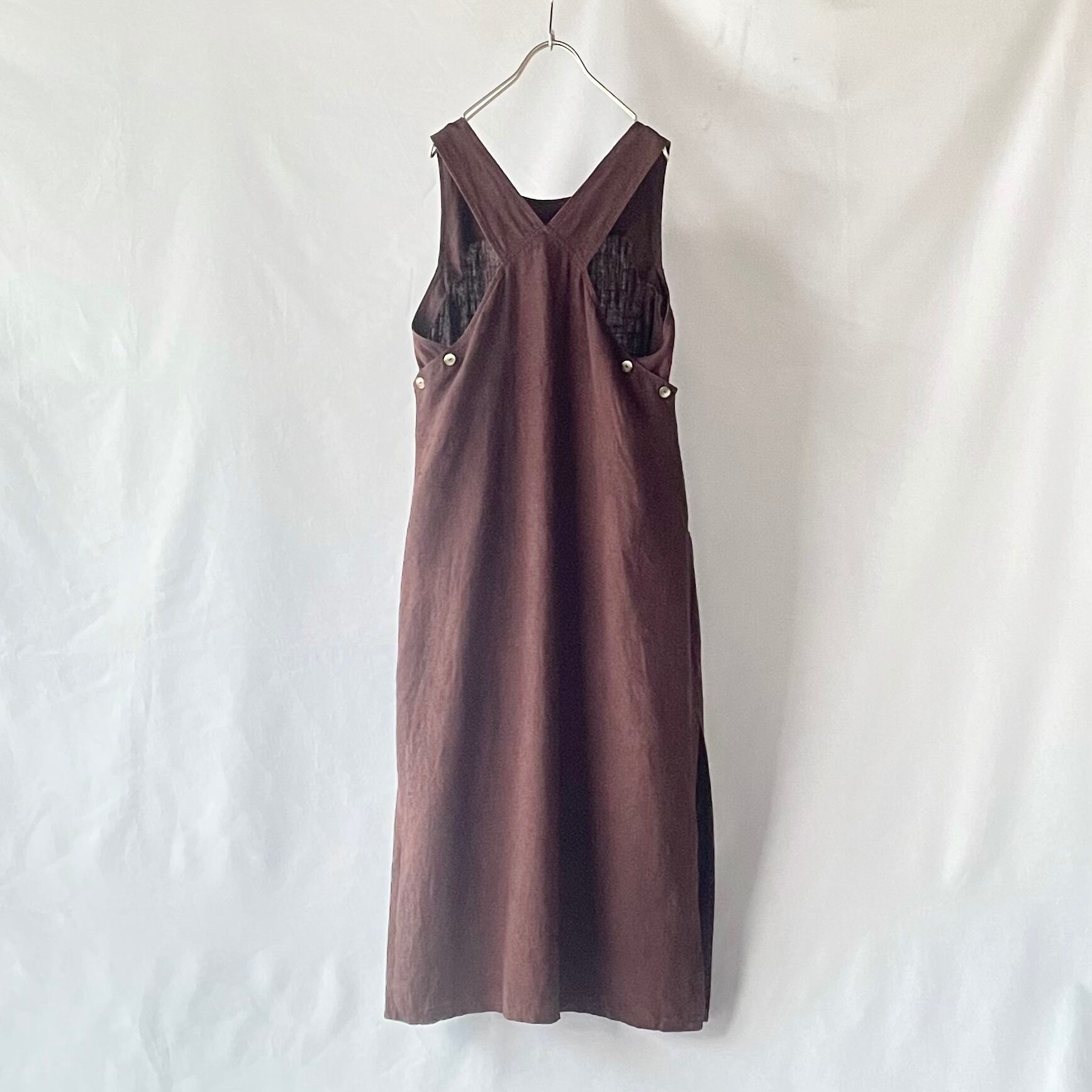Linen harve benard brown onepiece リネン ブラウン サロペット ジャンパースカート型 ロングワンピース