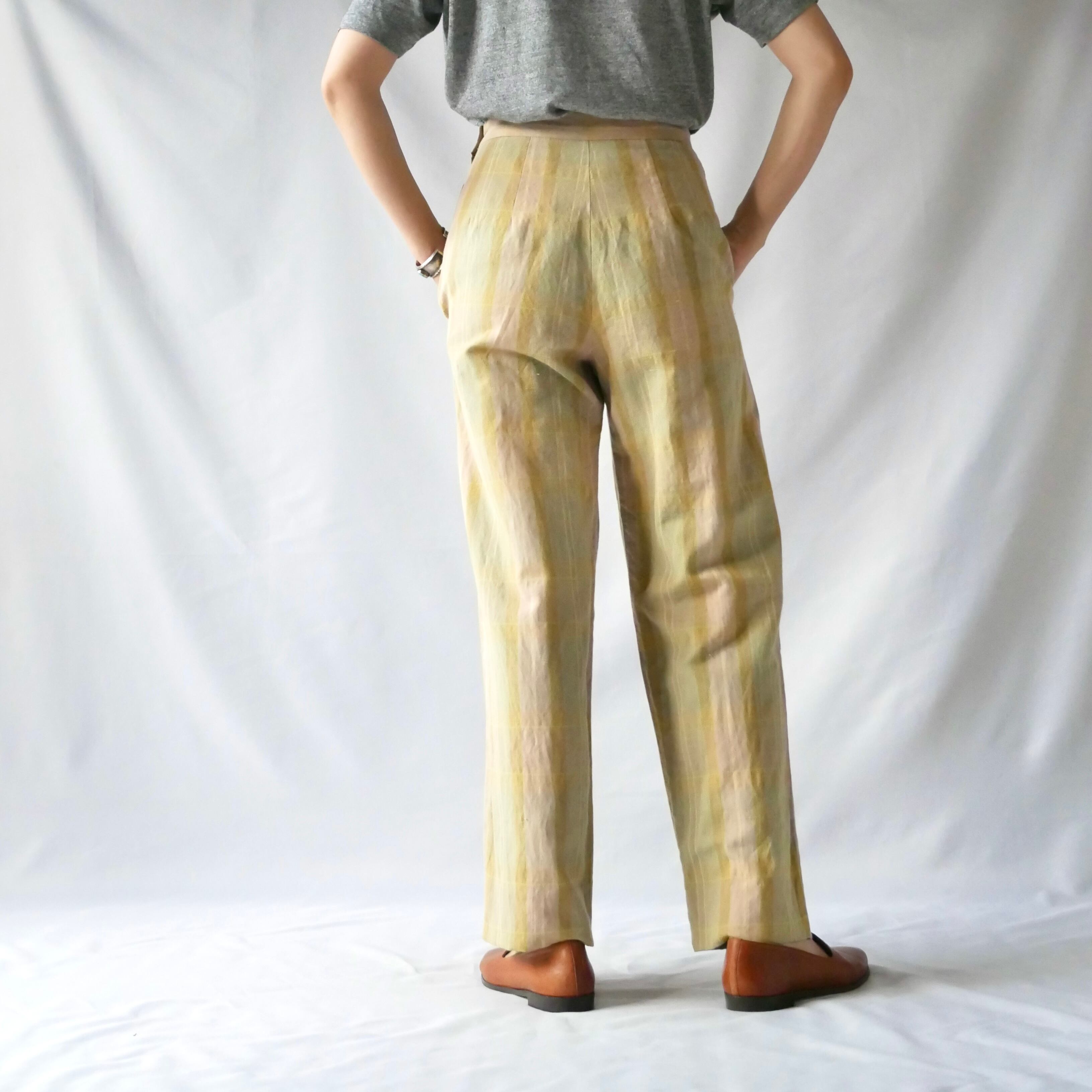 Made in Romania linen mix check pant ルーマニア製 リネン混 チェック タックパンツ