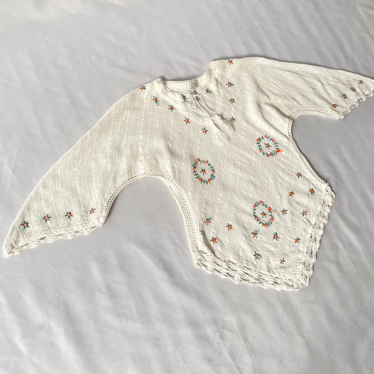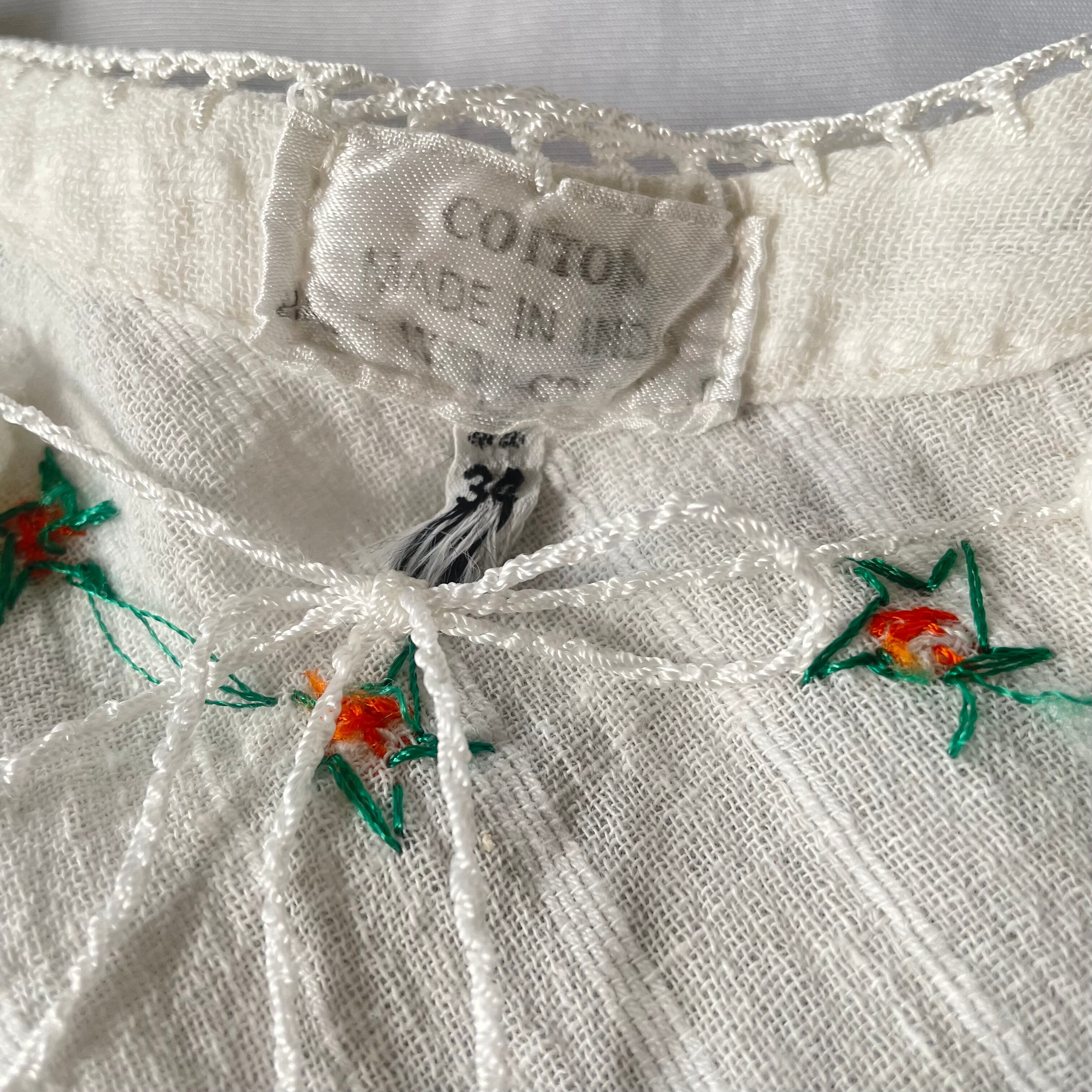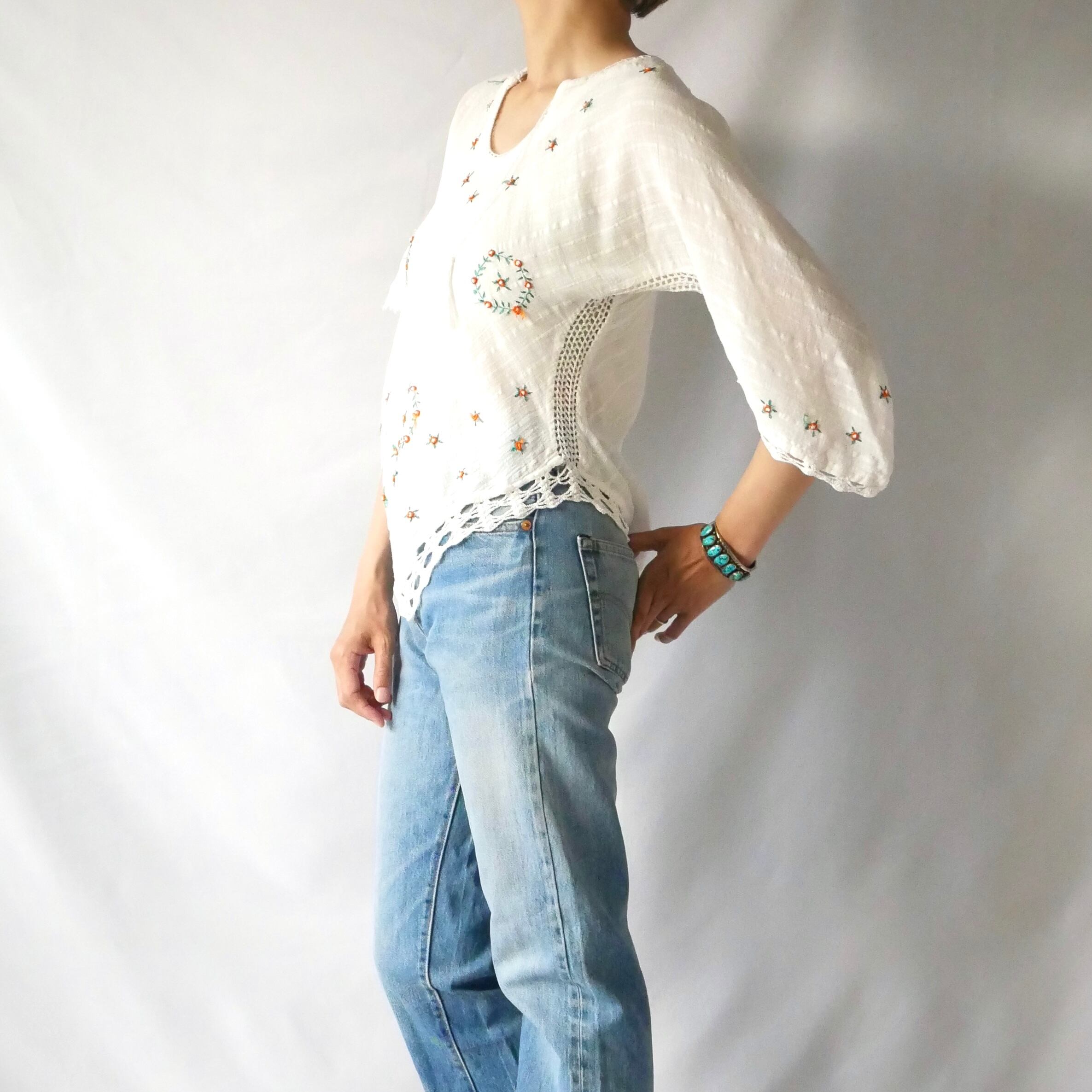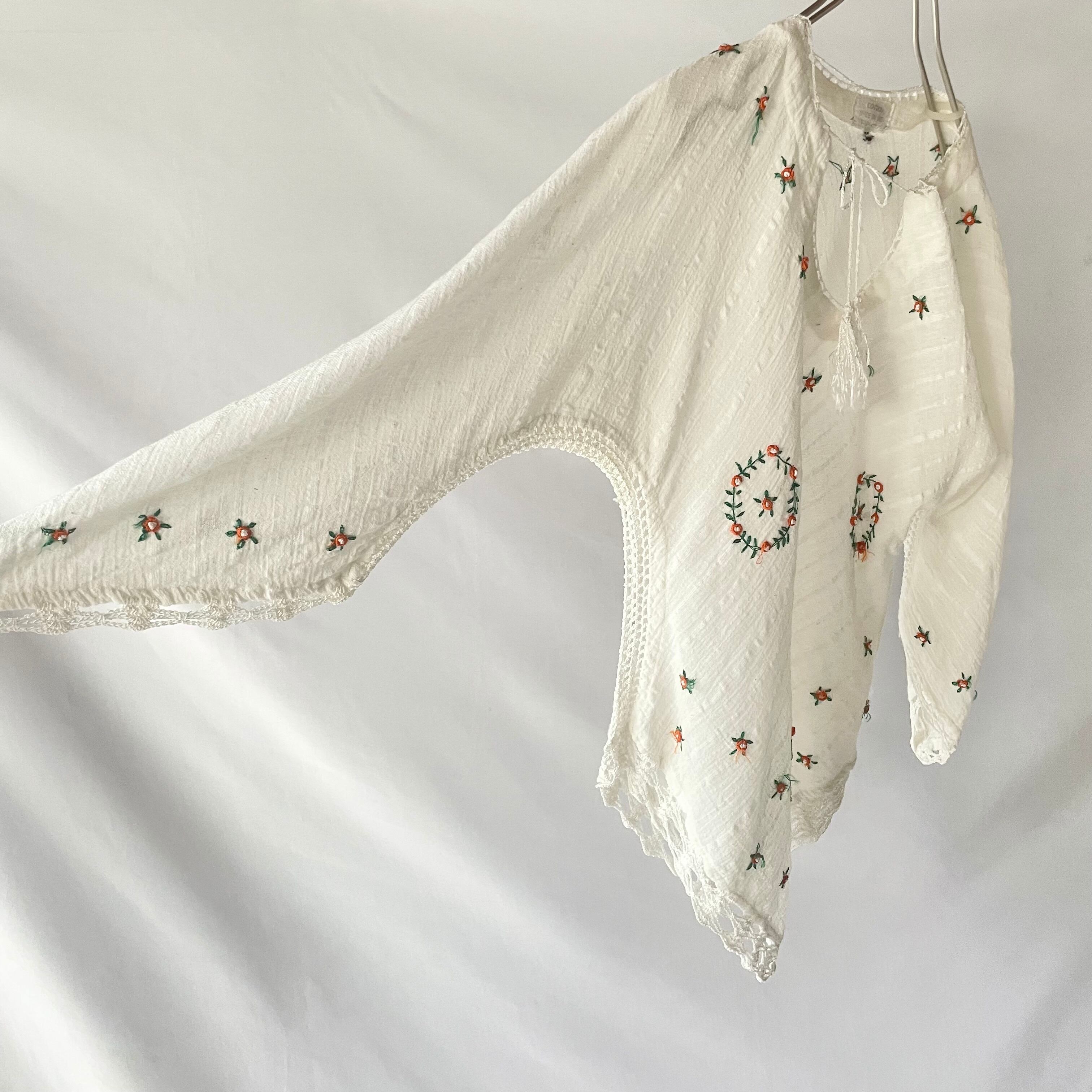 Made in India 70s vintage gauze tops 70年代 ヴィンテージ インド綿 ガーゼ お花刺繍 三角袖 トップス