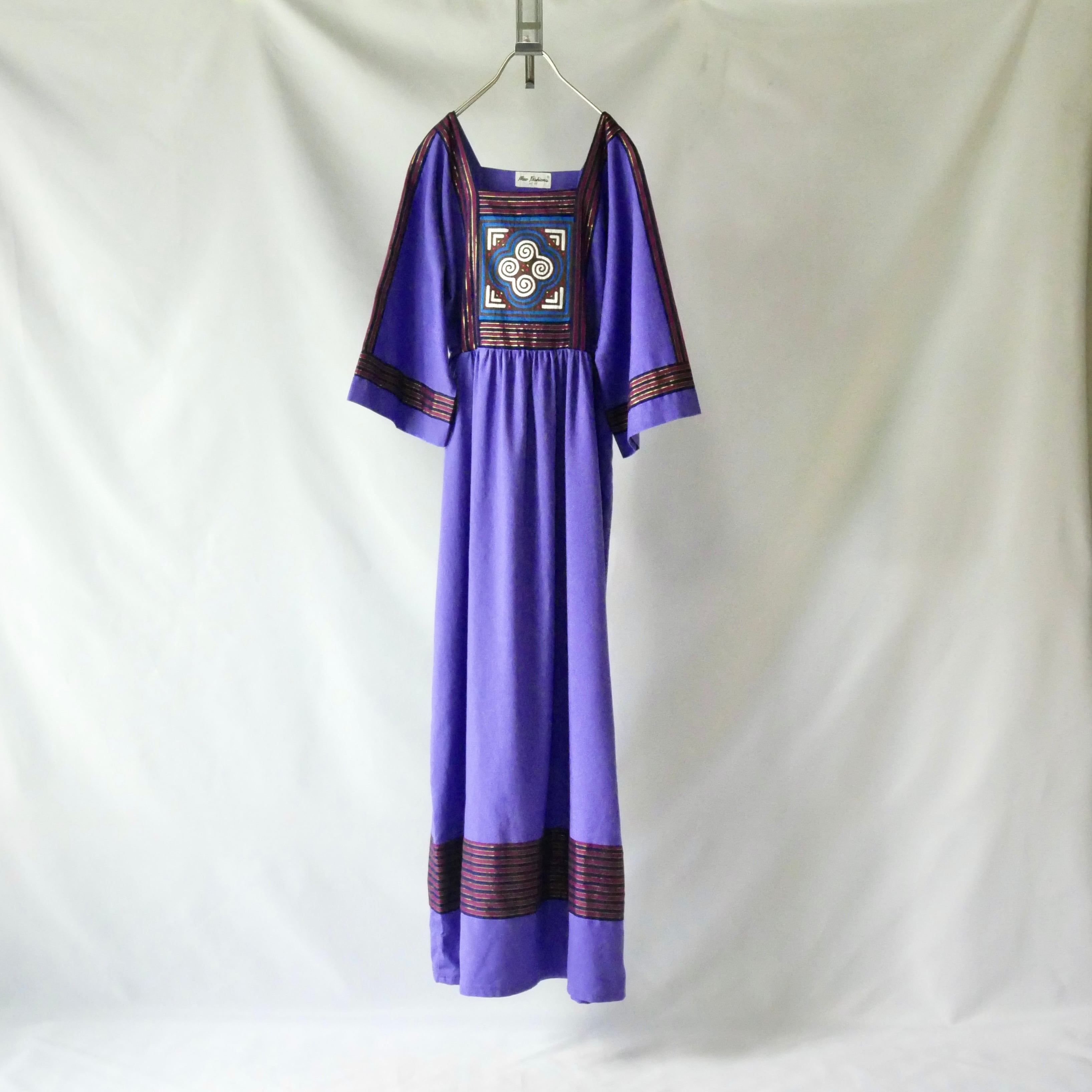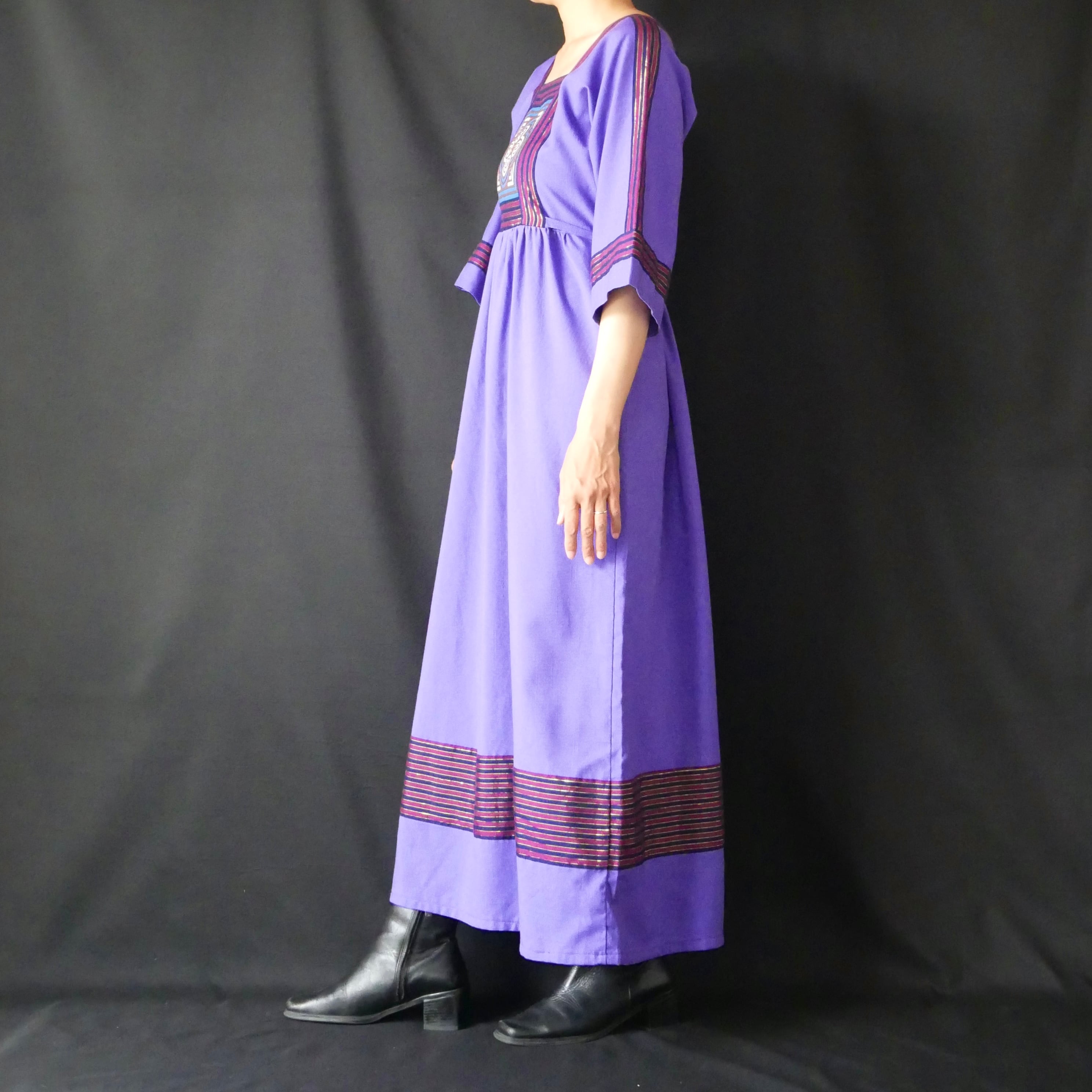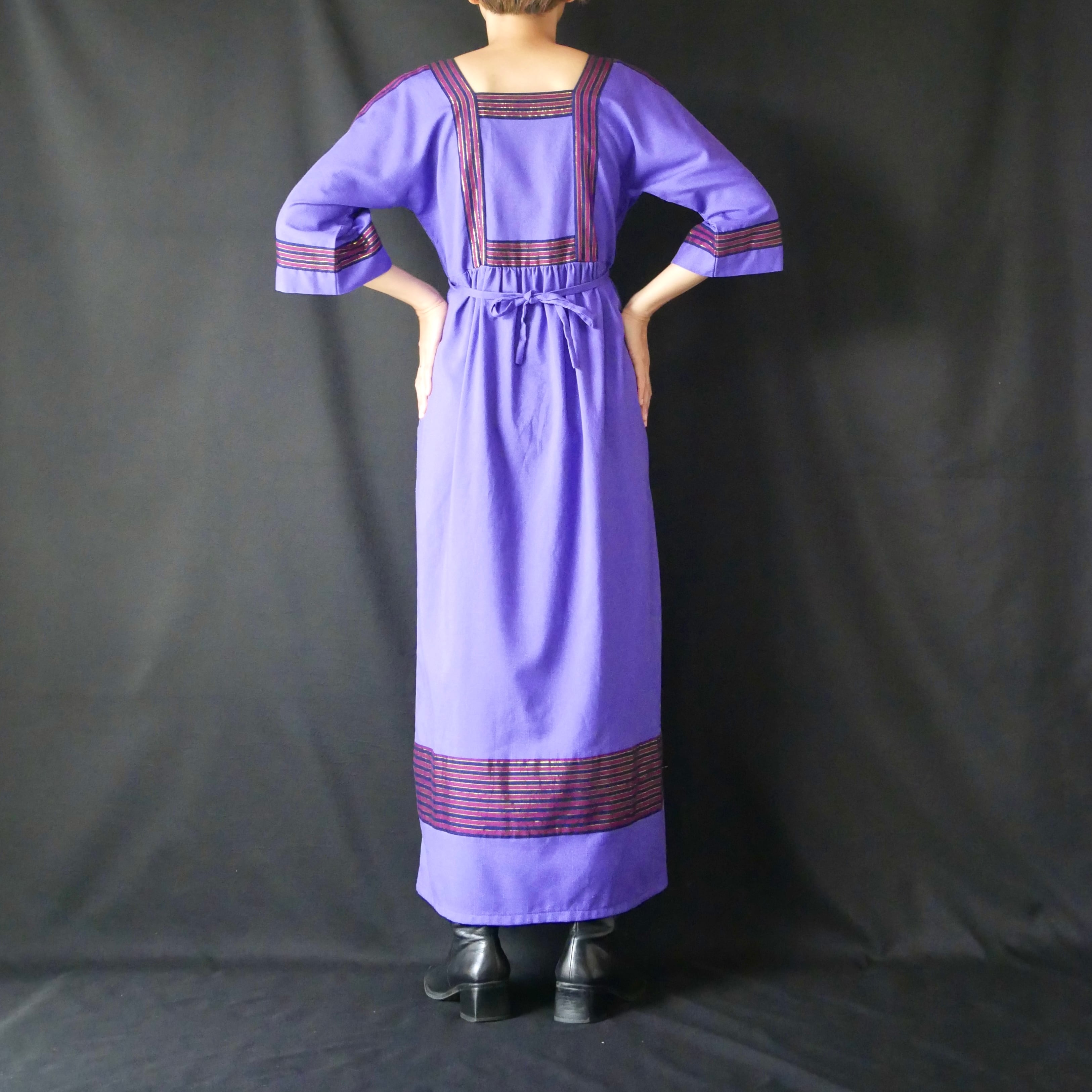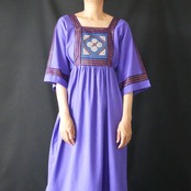 80s vintage purple patchwork maxi onepiece 80年代 ヴィンテージ パープル 胸元 パッチワーク マキシワンピース | &Dorothy used&vintage 古着屋