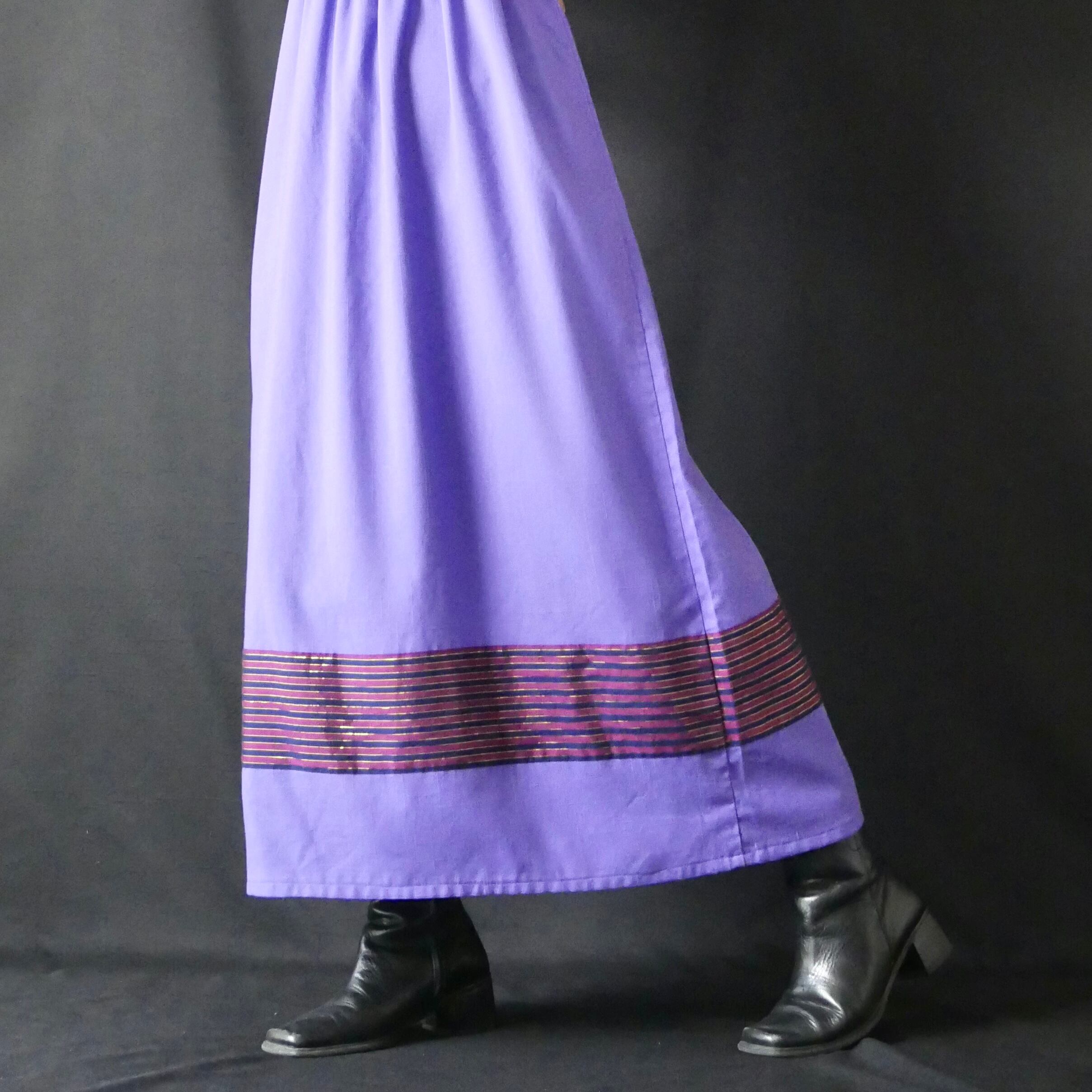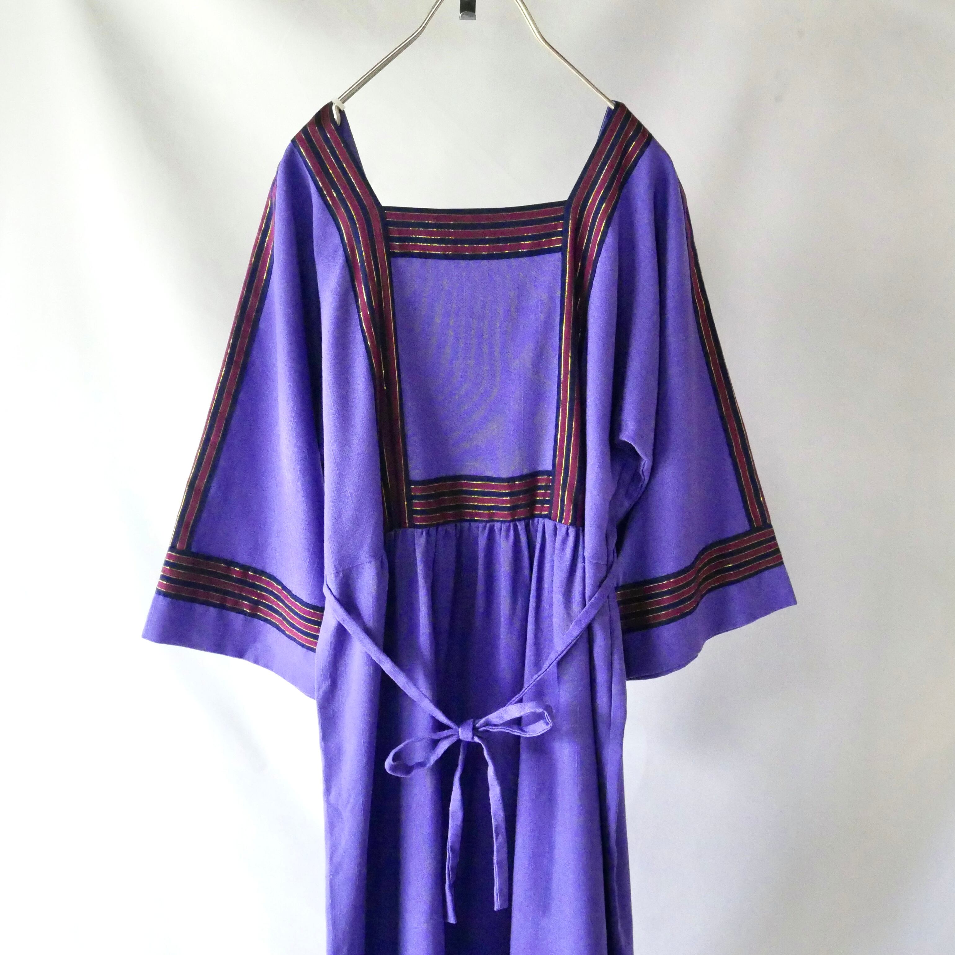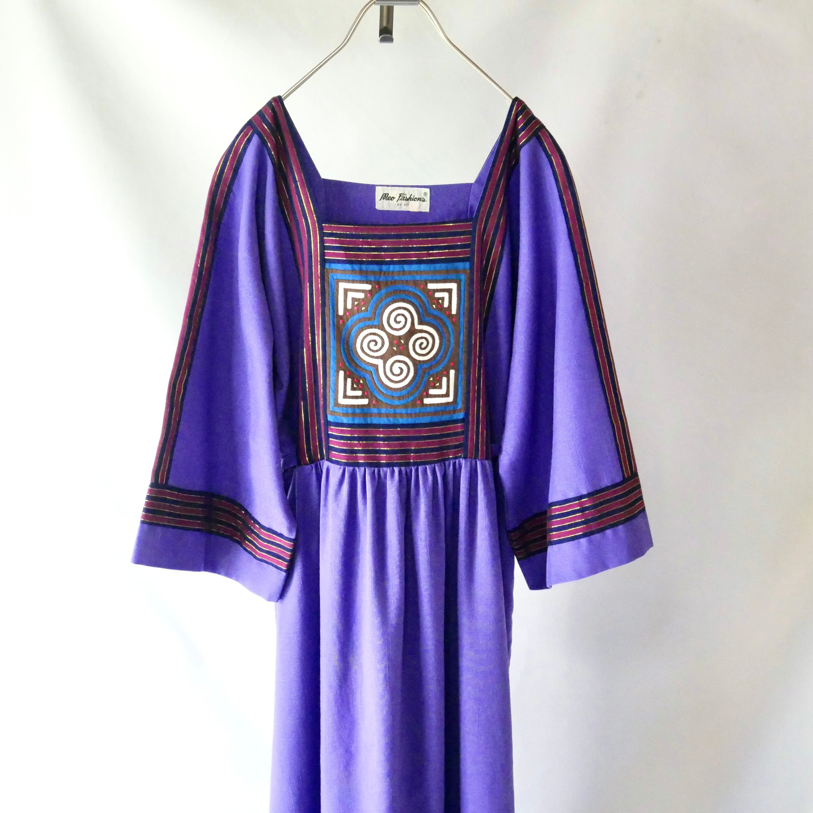 80s vintage purple patchwork maxi onepiece 80年代 ヴィンテージ パープル 胸元 パッチワーク マキシワンピース | &Dorothy used&vintage 古着屋