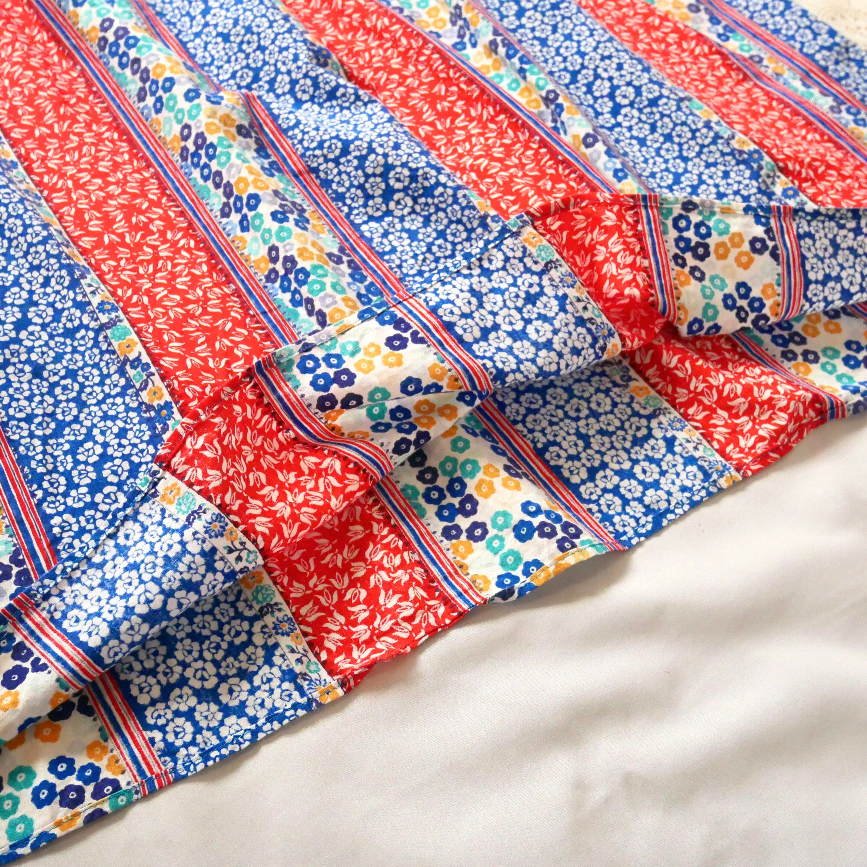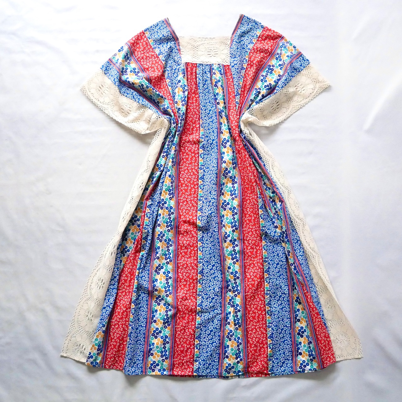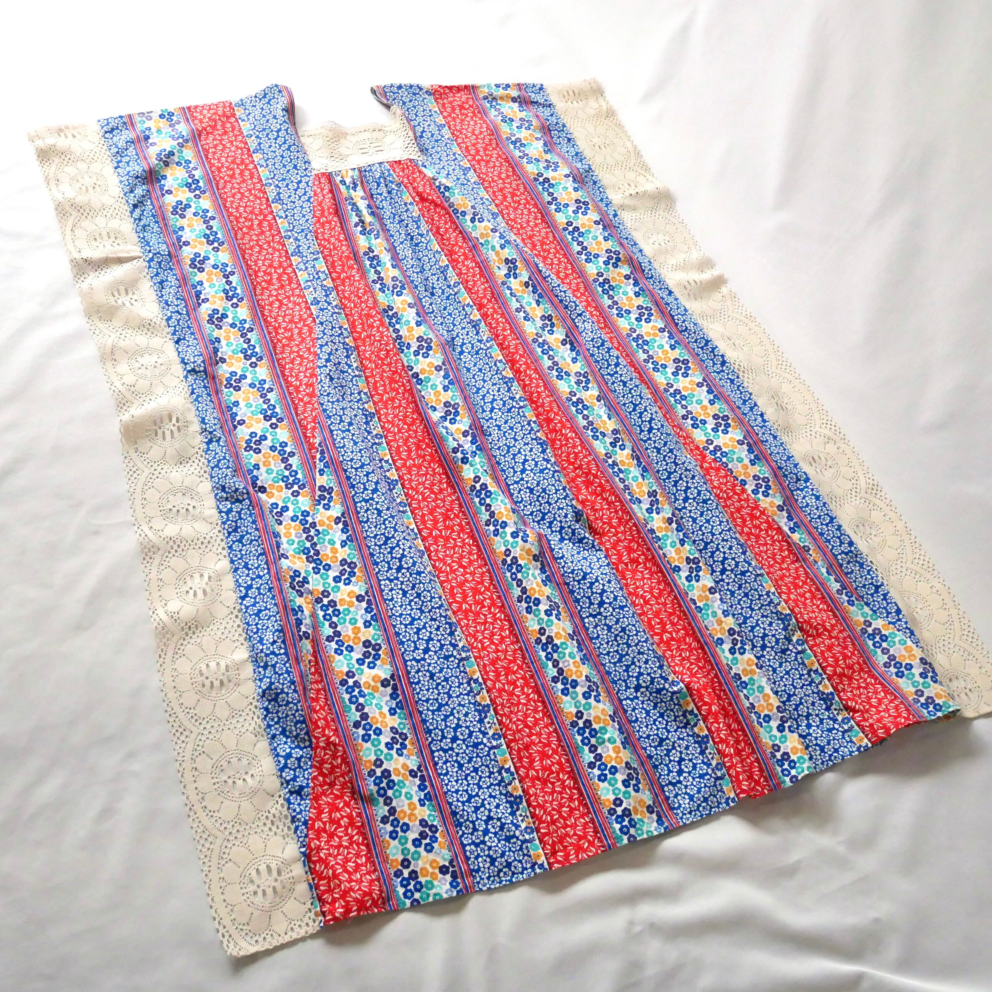 お花柄の縦ラインのテキスタイルが可愛いカナダ製70年代頃のポンチョワンピースです。