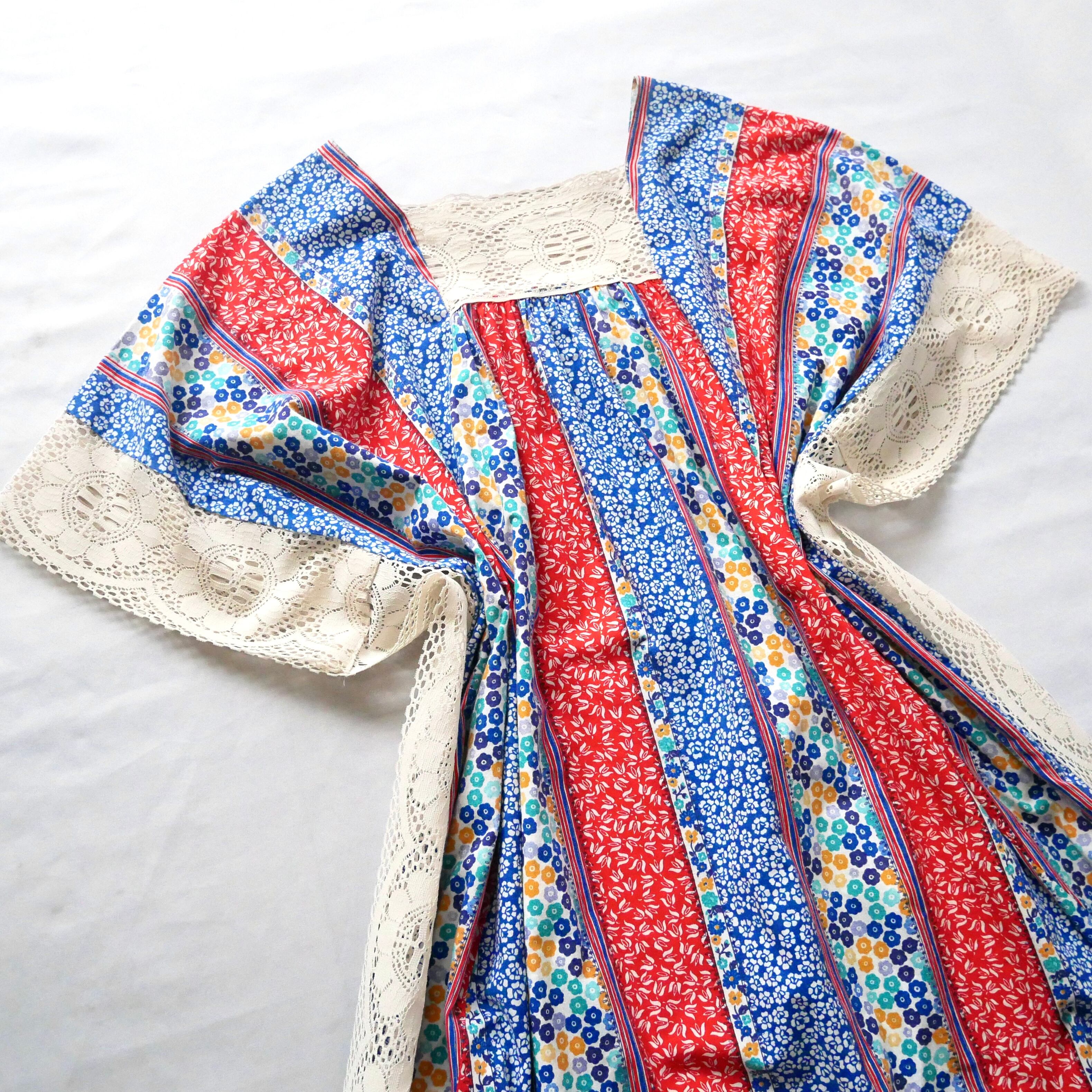 Made in CANADA 70s vintage floral poncho dress カナダ製 70年代 花柄 ポンチョ風 マキシワンピース