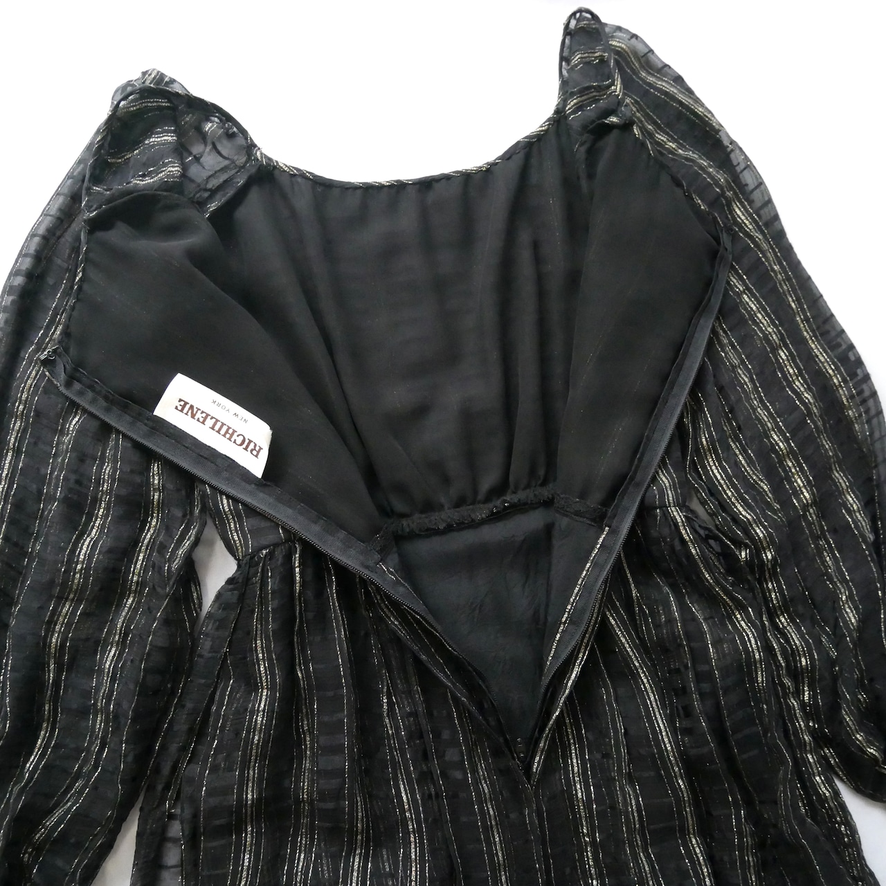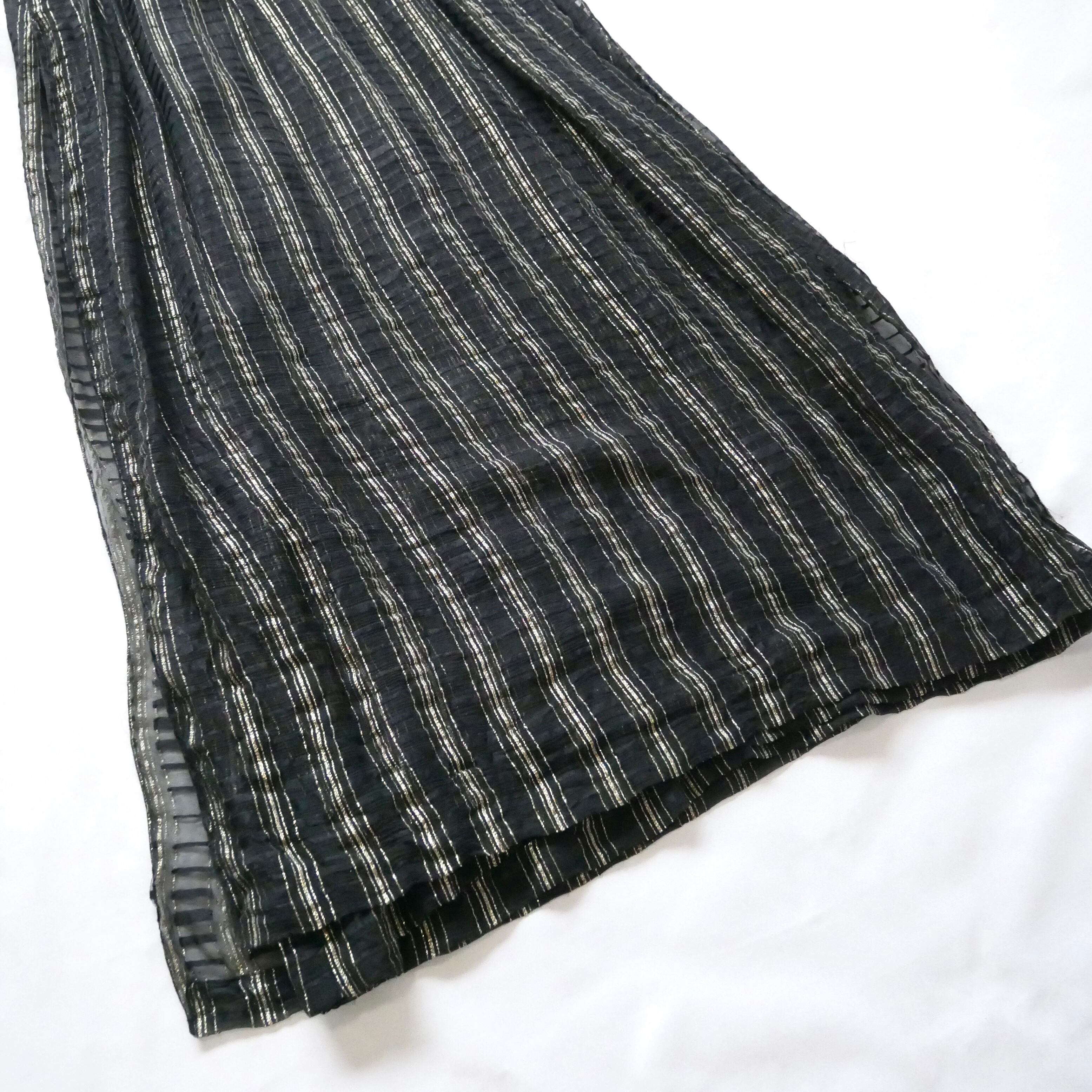 Made in USA 70s vintage black gold maxi dress アメリカ製 70年代 ヴィンテージ 黒 ゴールド シースルー 重ね マキシワンピース