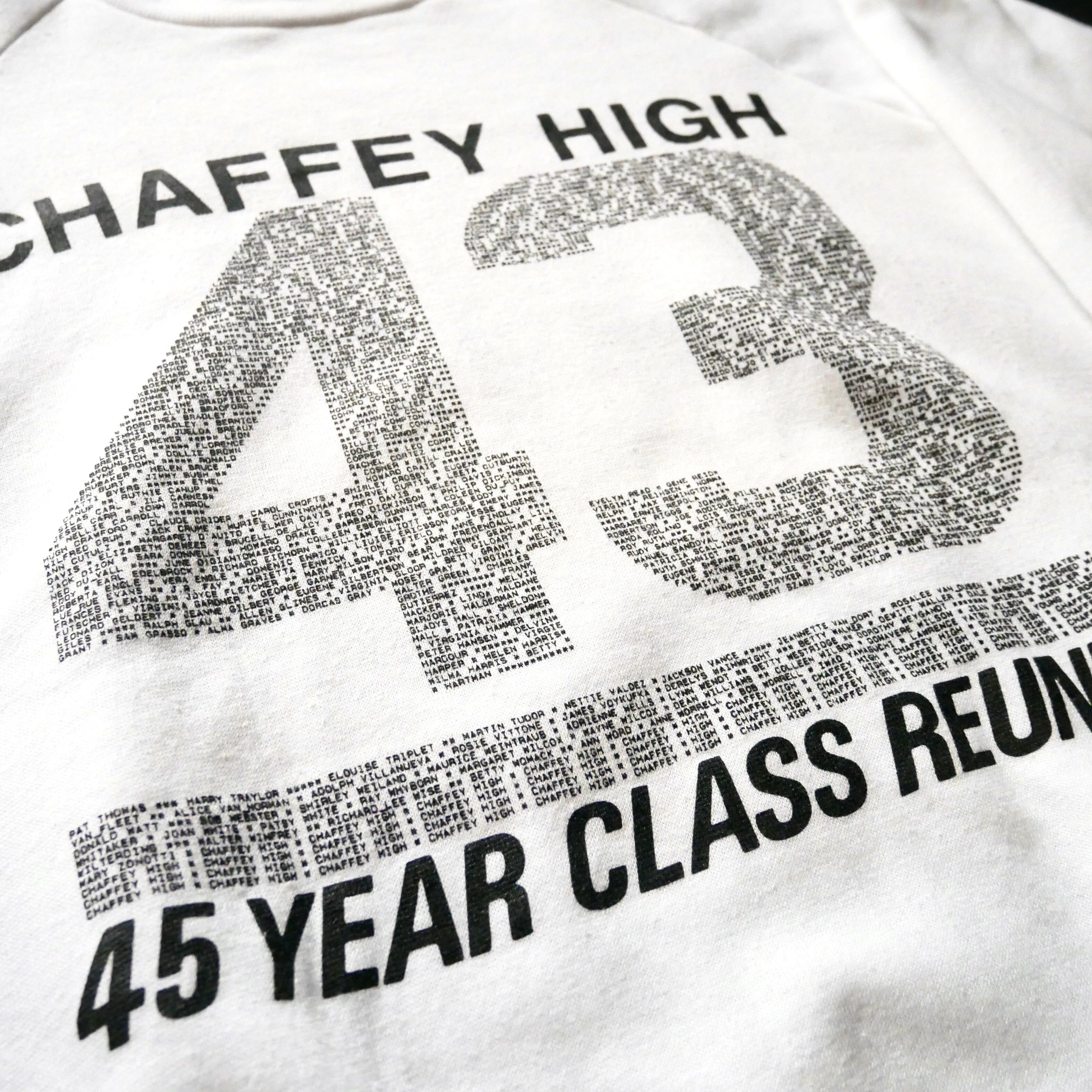 当時の同級生達の名前で43の文字が作られており、よく見ると日本人の方のお名前もあったりして楽しい一枚です。