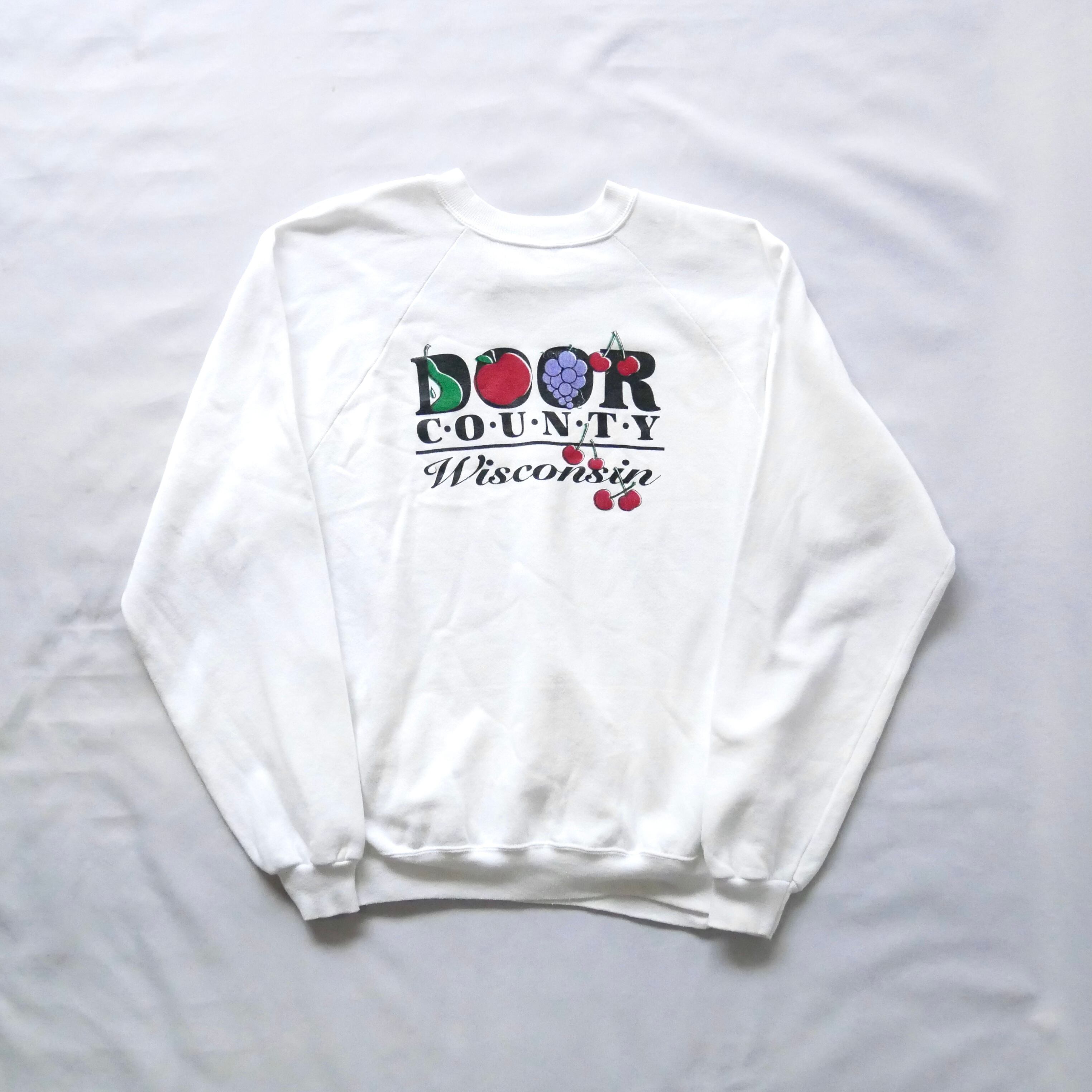 Made in USA Door country fruit white sweat アメリカ製 ウィスコンシン ドアカントリー フルーツ柄 白 スウェット | &Dorothy used&vintage 古着屋