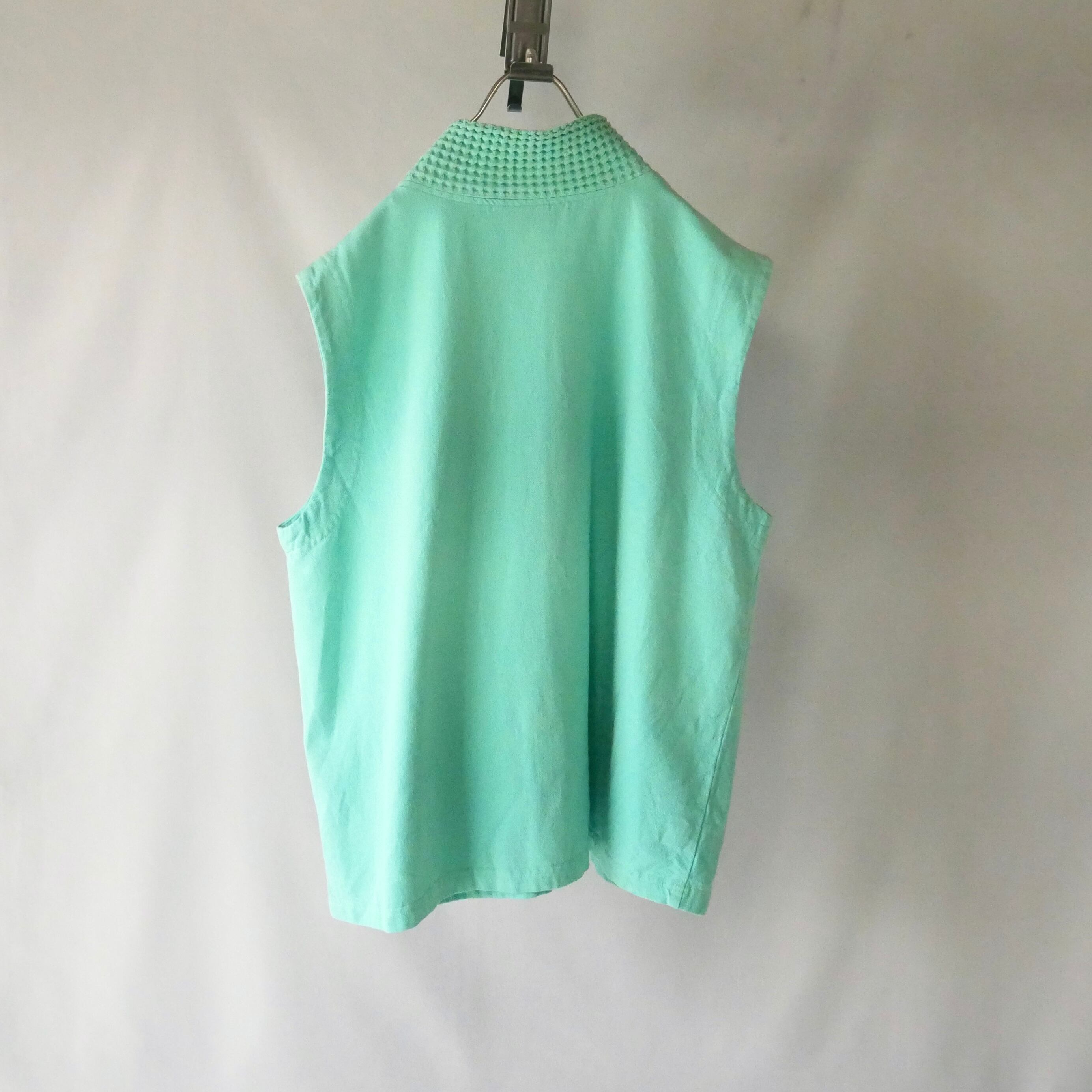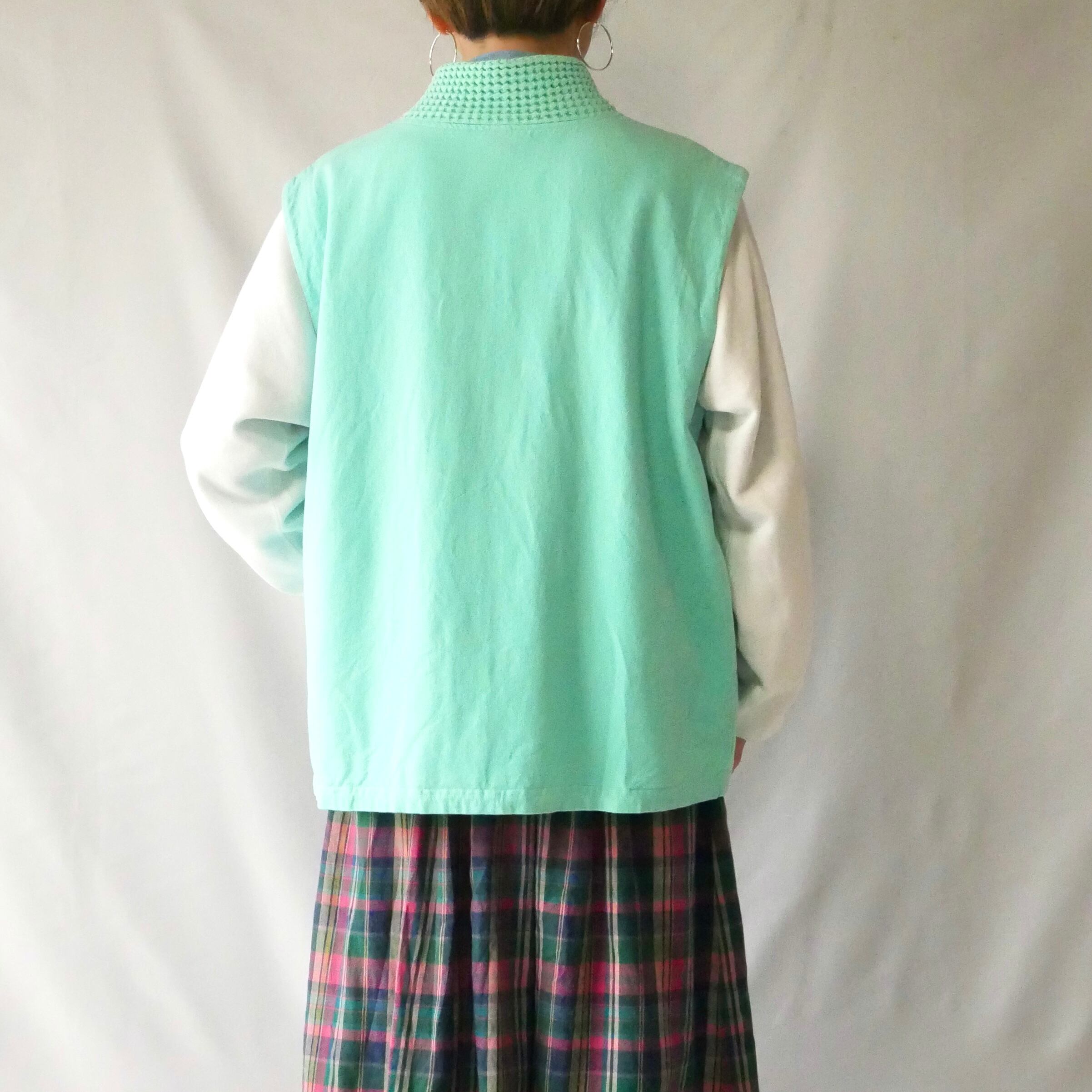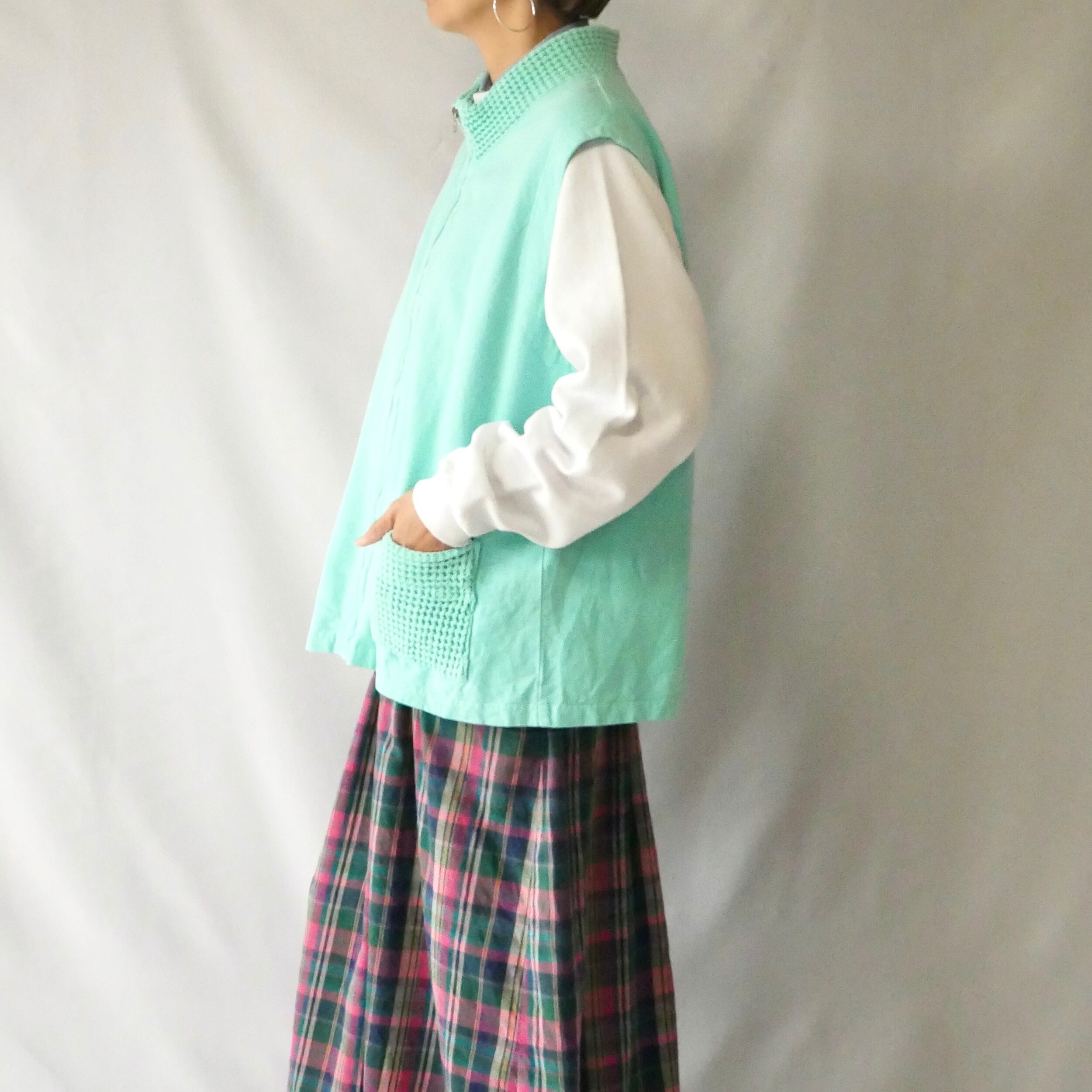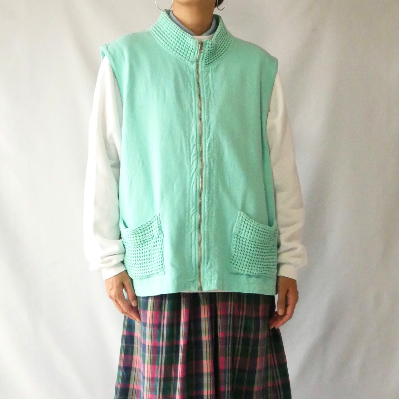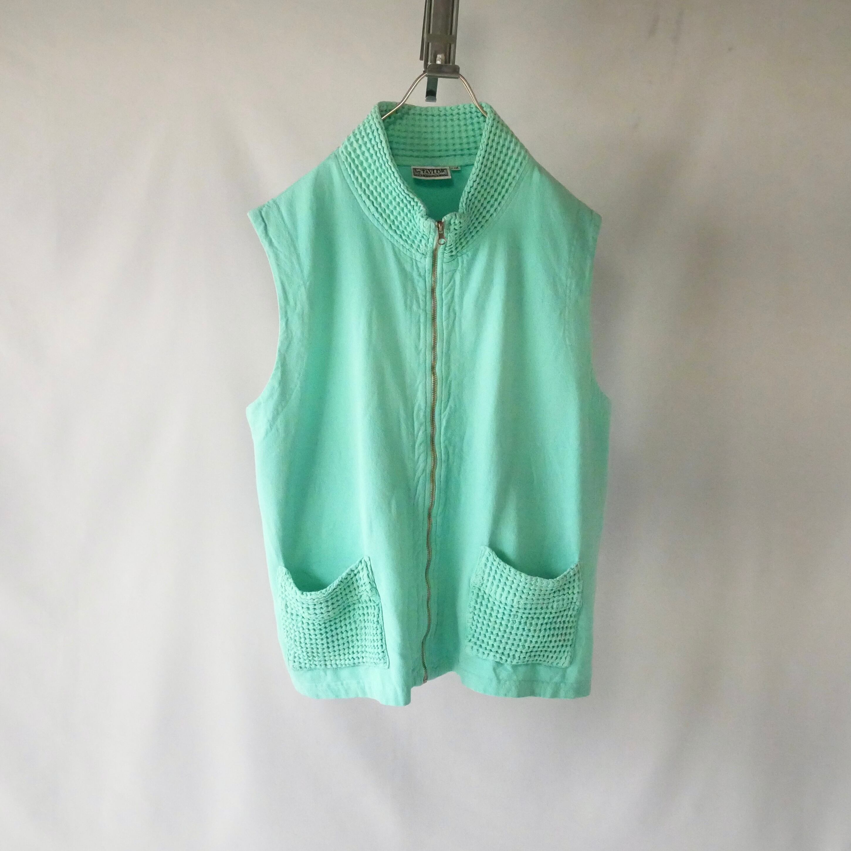 Made in USA 90s green waffle pocket vest アメリカ製 90年代 グリーン ワッフルポケット付き 大きめベスト