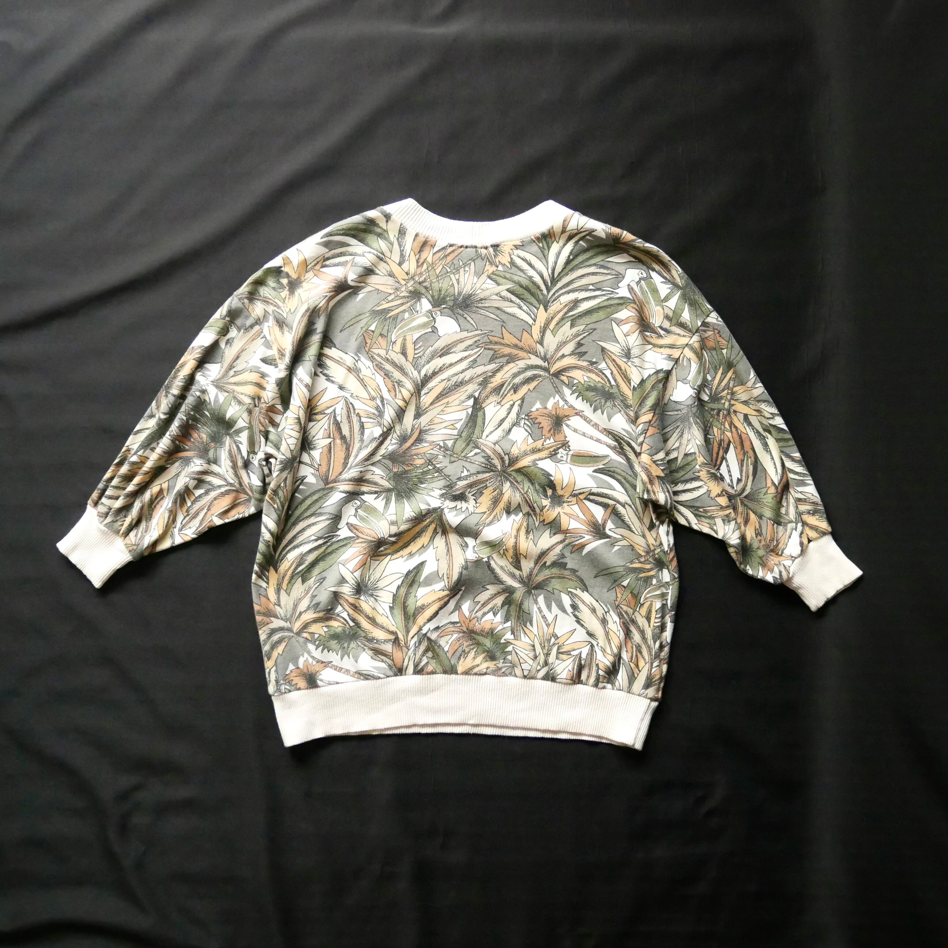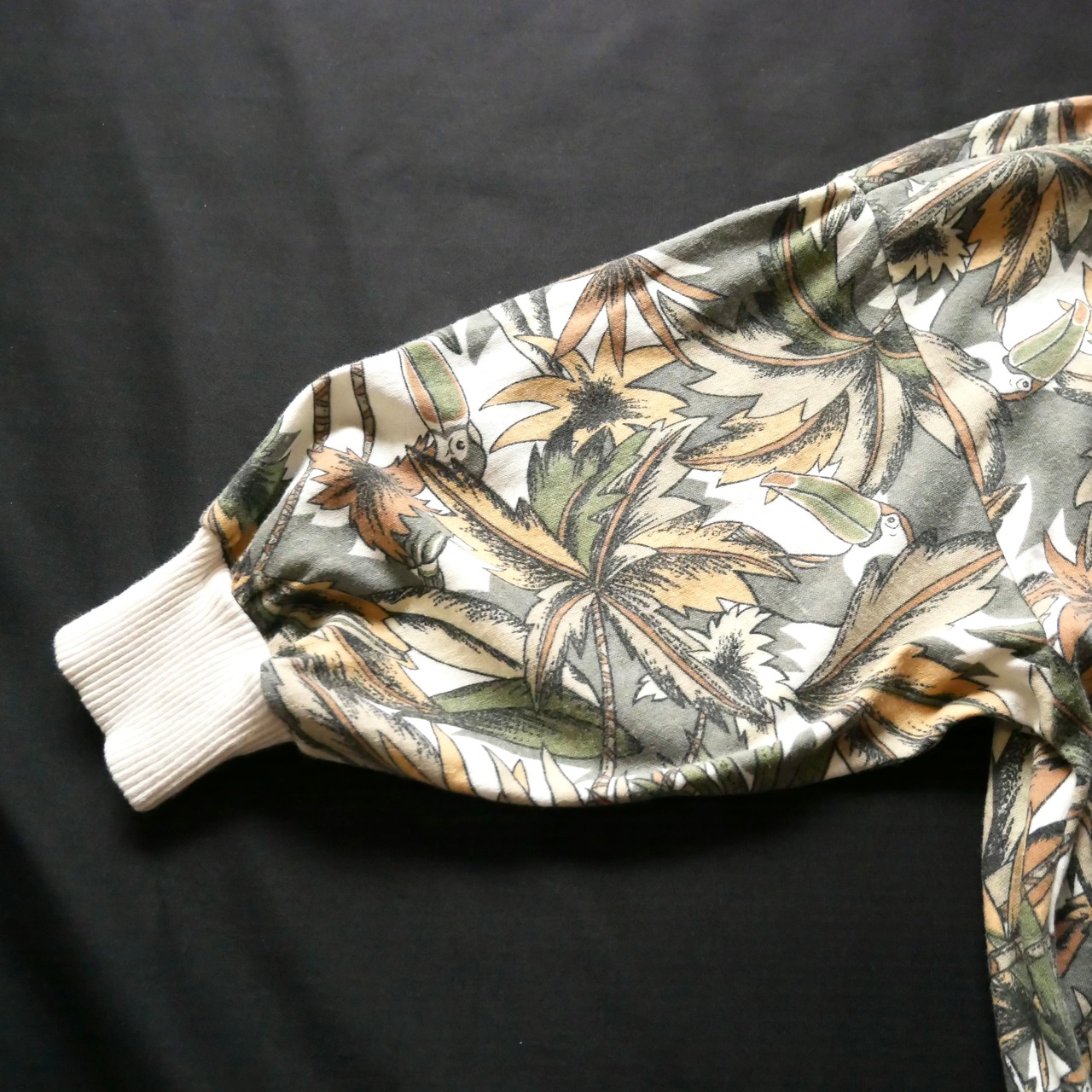 Made in USA 80s bird brown sweat tops アメリカ製 鳥 葉っぱ柄 ブラウン 七分袖 スウェット トップス