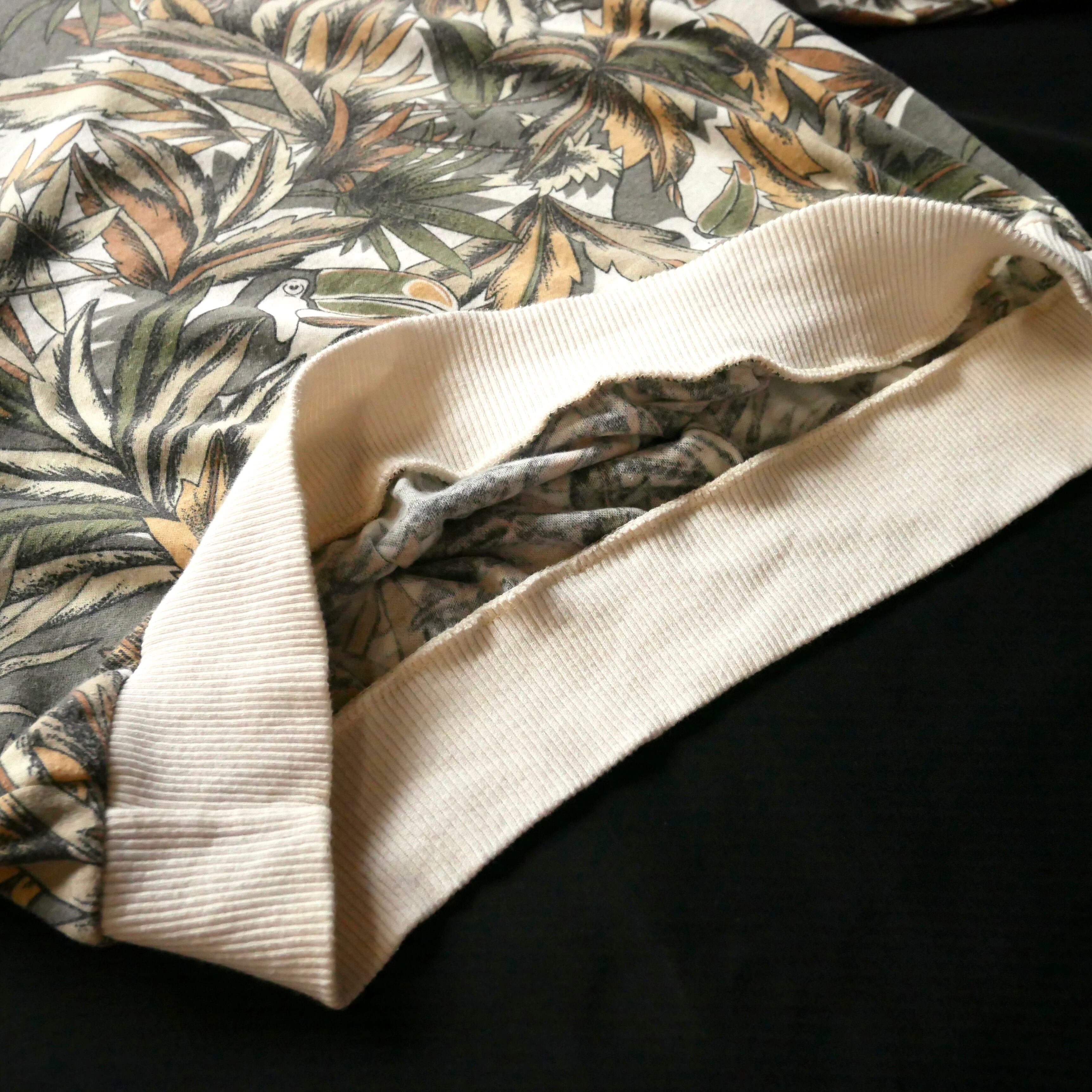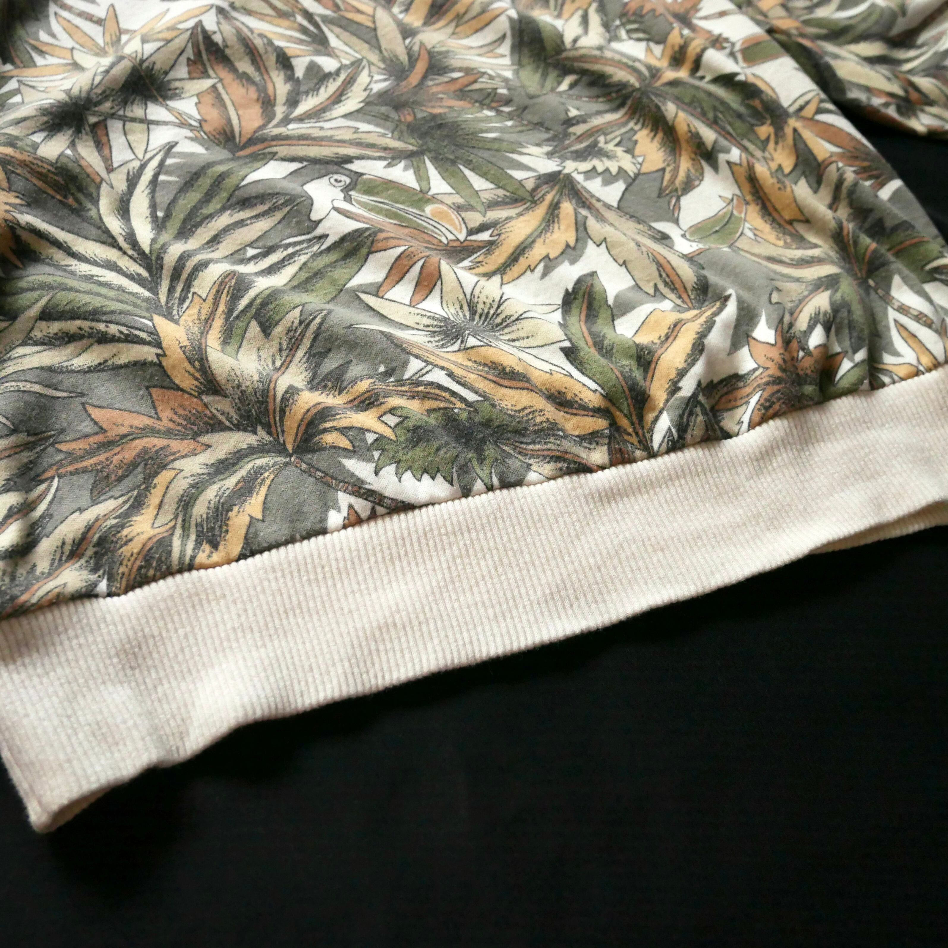 ブラウンのボタニカルと鳥模様が可愛いUSAスウェットトップスです。