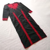 黒地に豪華に入った赤のクロスステッチが素敵なヴィンテージマキシワンピースです。