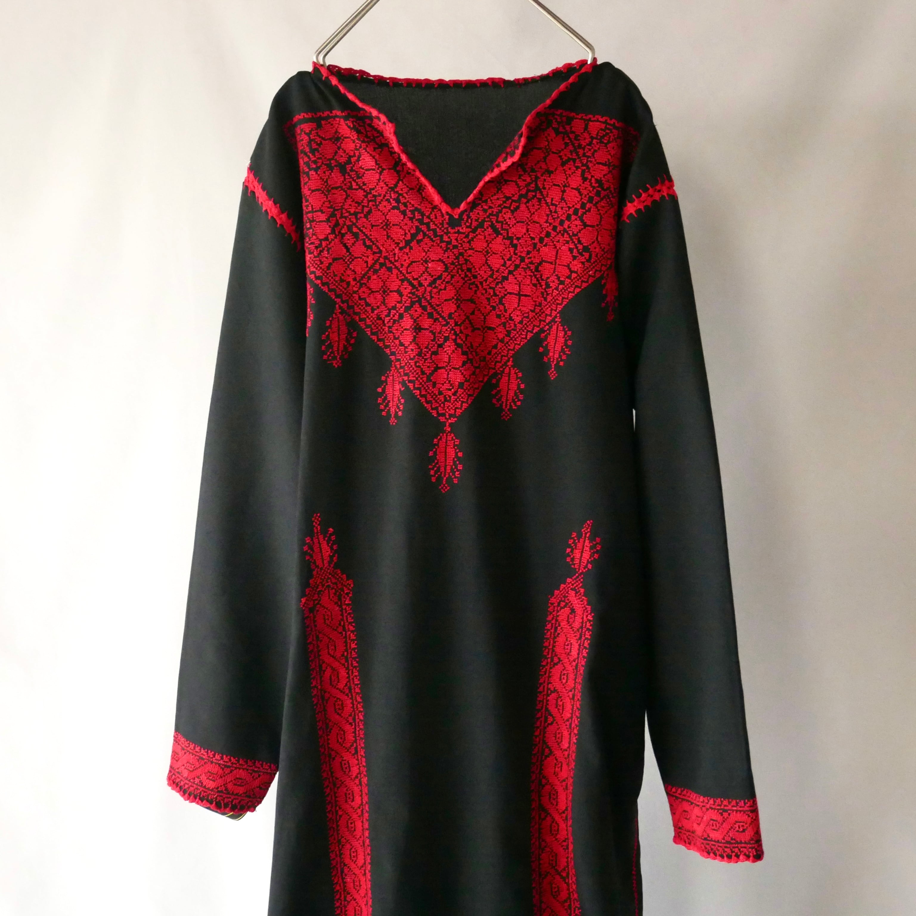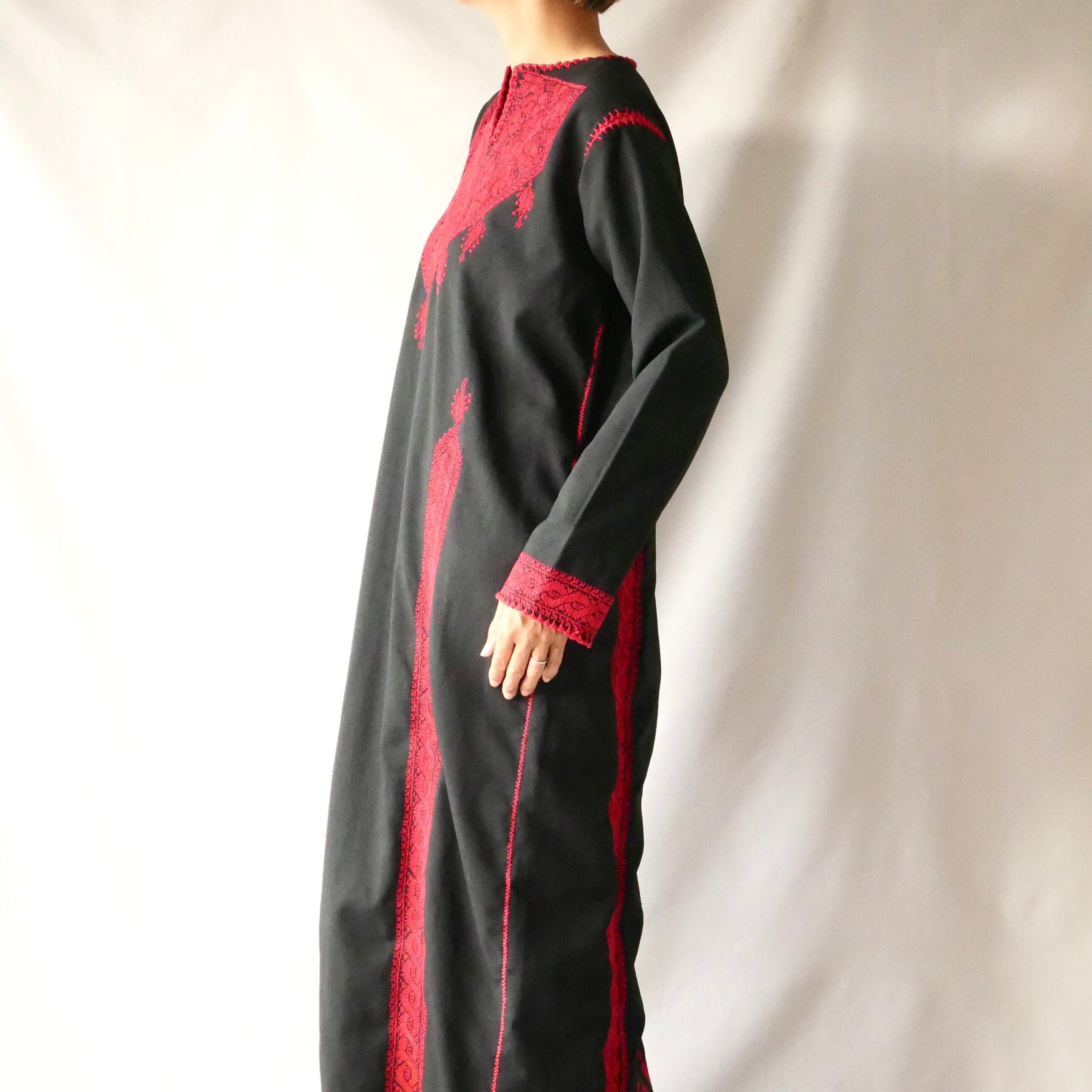 Euro vintage black red embroidery maxi onepiece ユーロ ヴィンテージ 東欧刺繍 黒 赤 クロスステッチ マキシワンピース