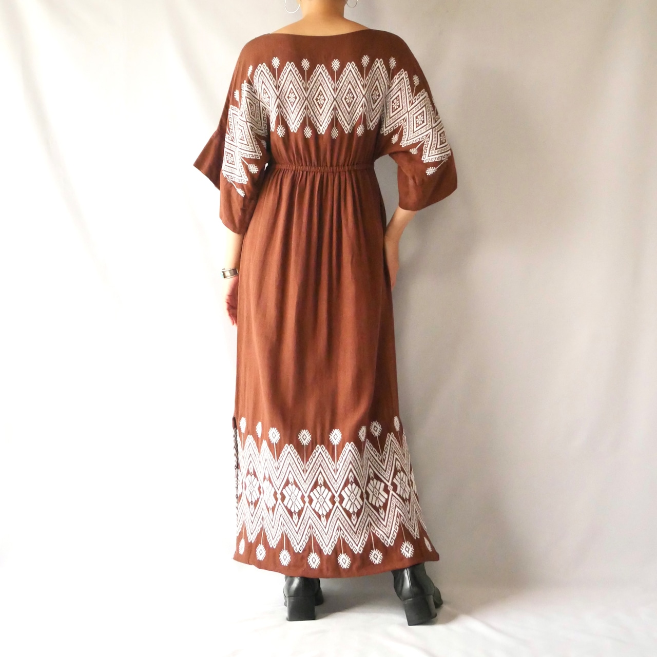 Made in Guatemala 70s vintage brown maxi onepiece グアテマラ刺繍 70年代 ヴィンテージ ブラウン マキシワンピース