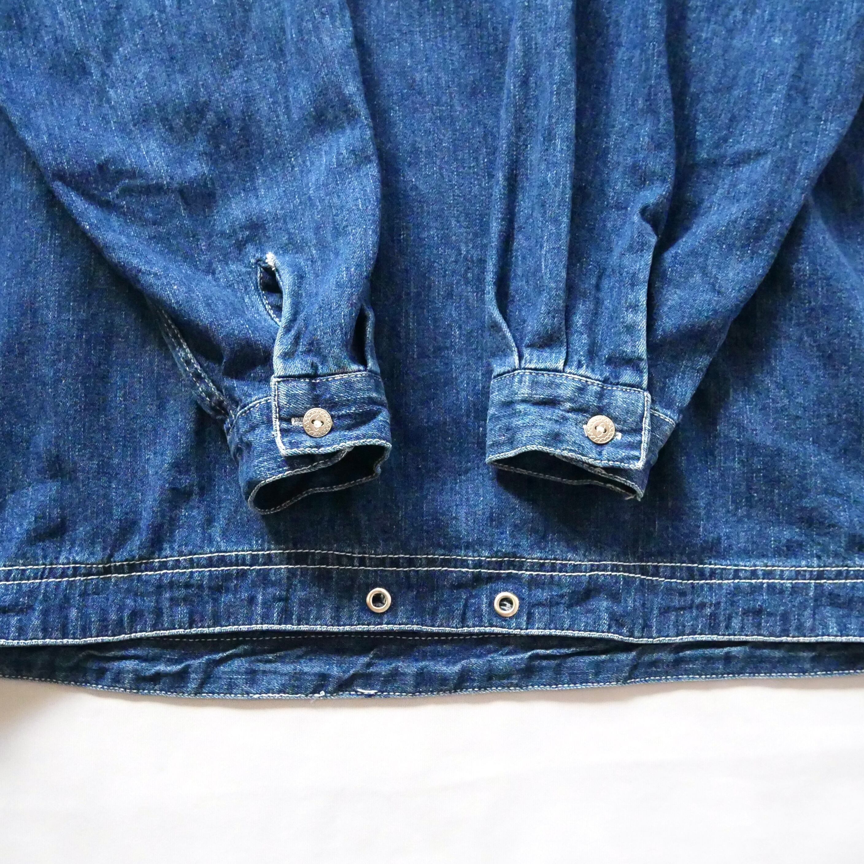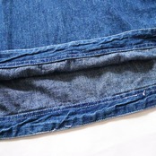 濃いめのデニムに白ステッチが90年代感満点なフード付きプルオーバーです。