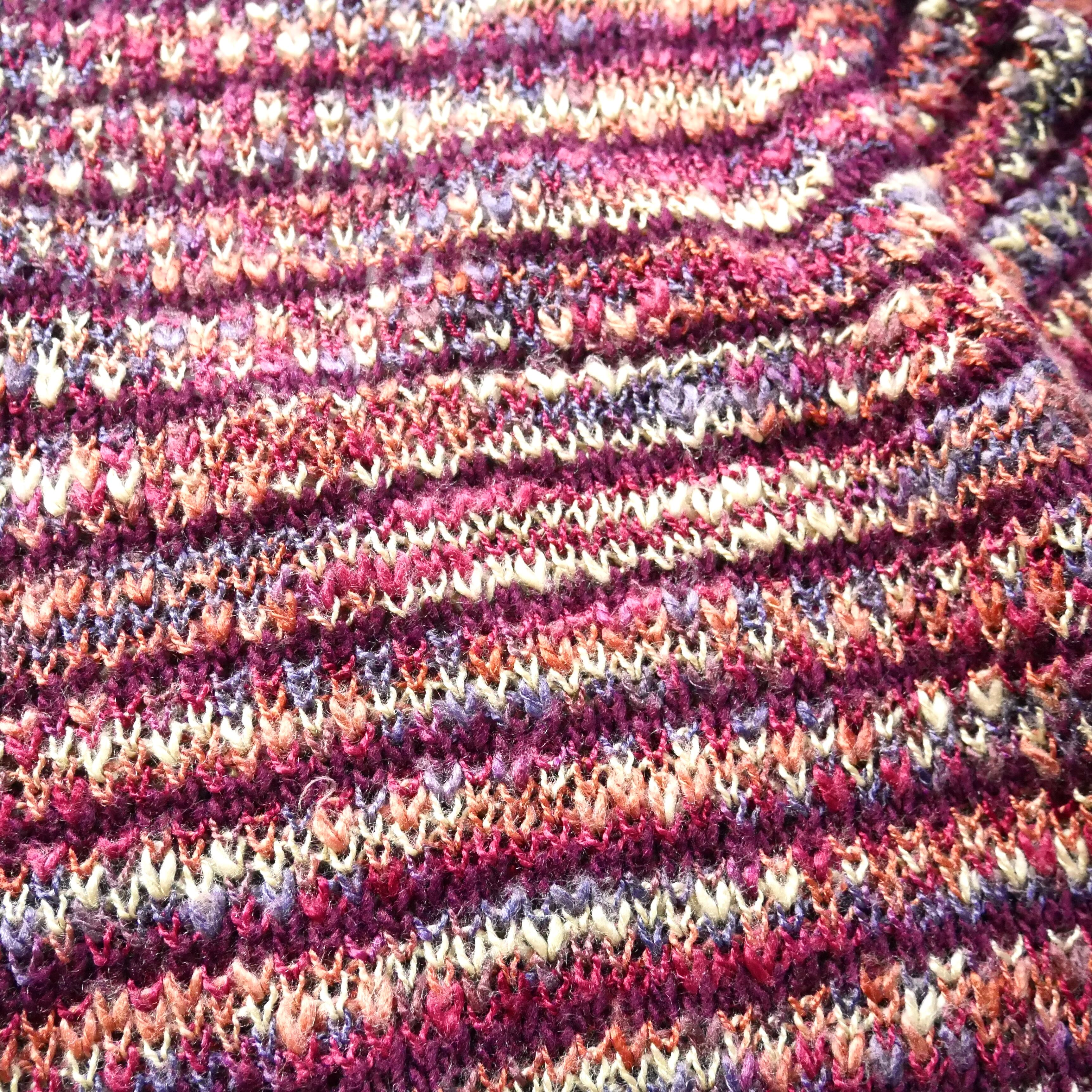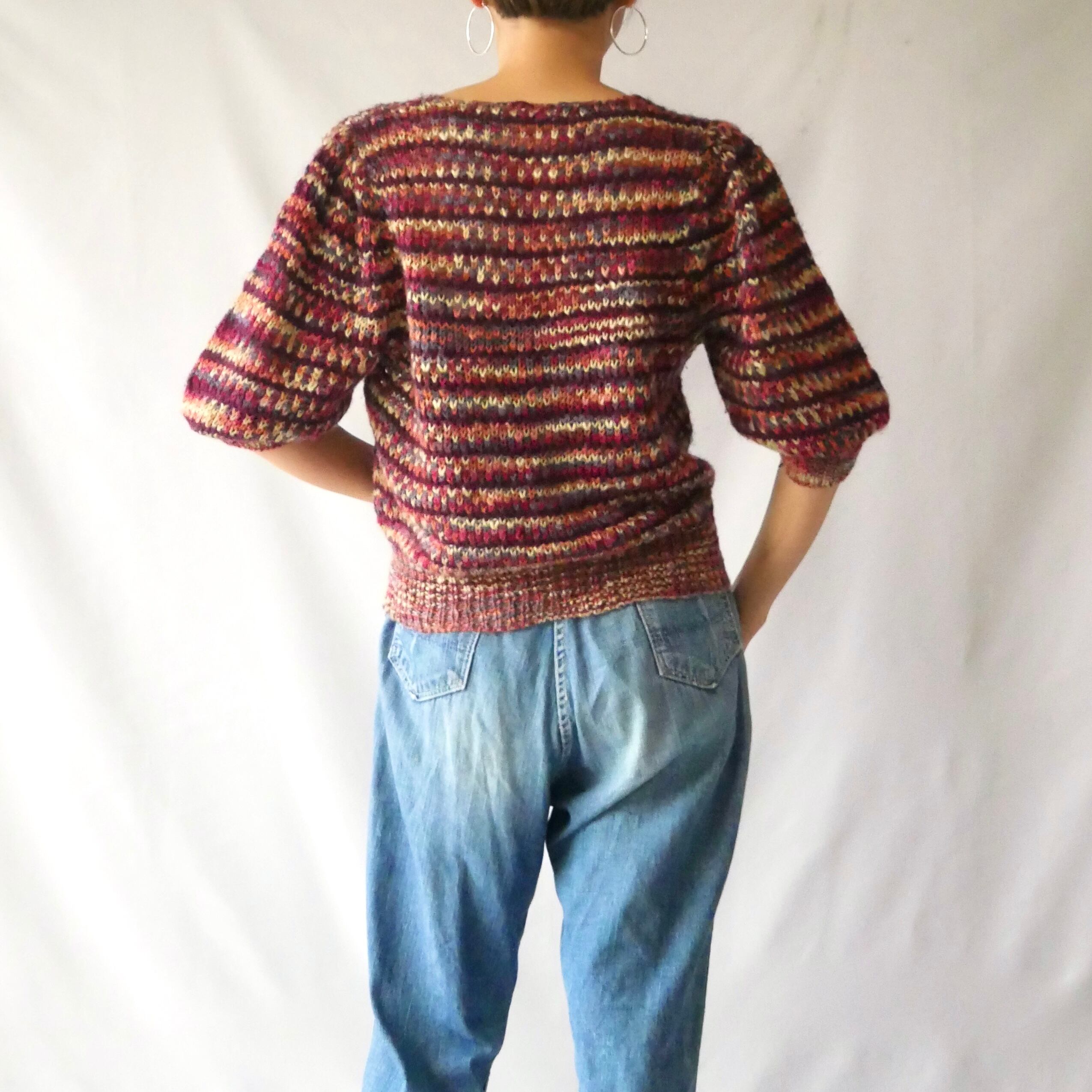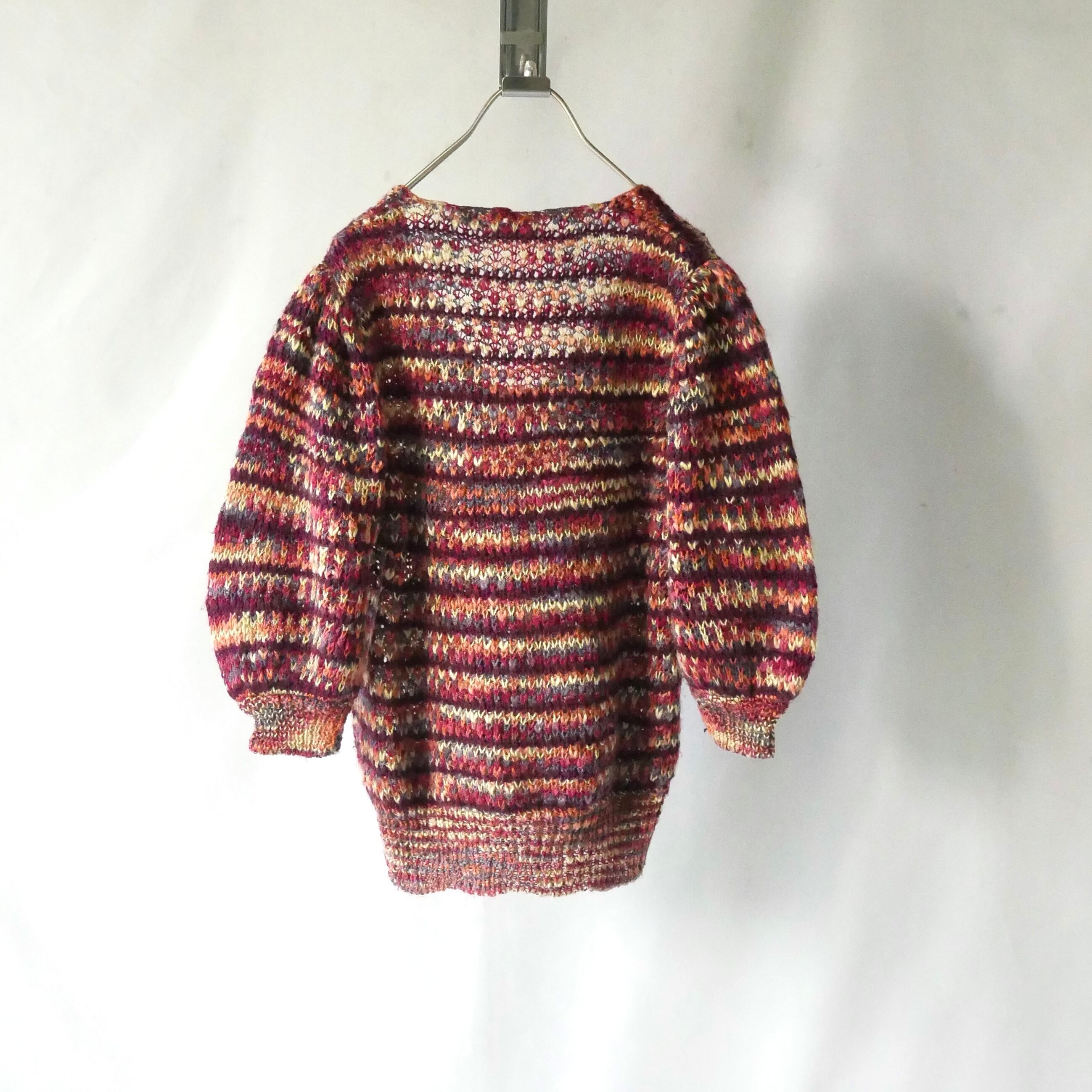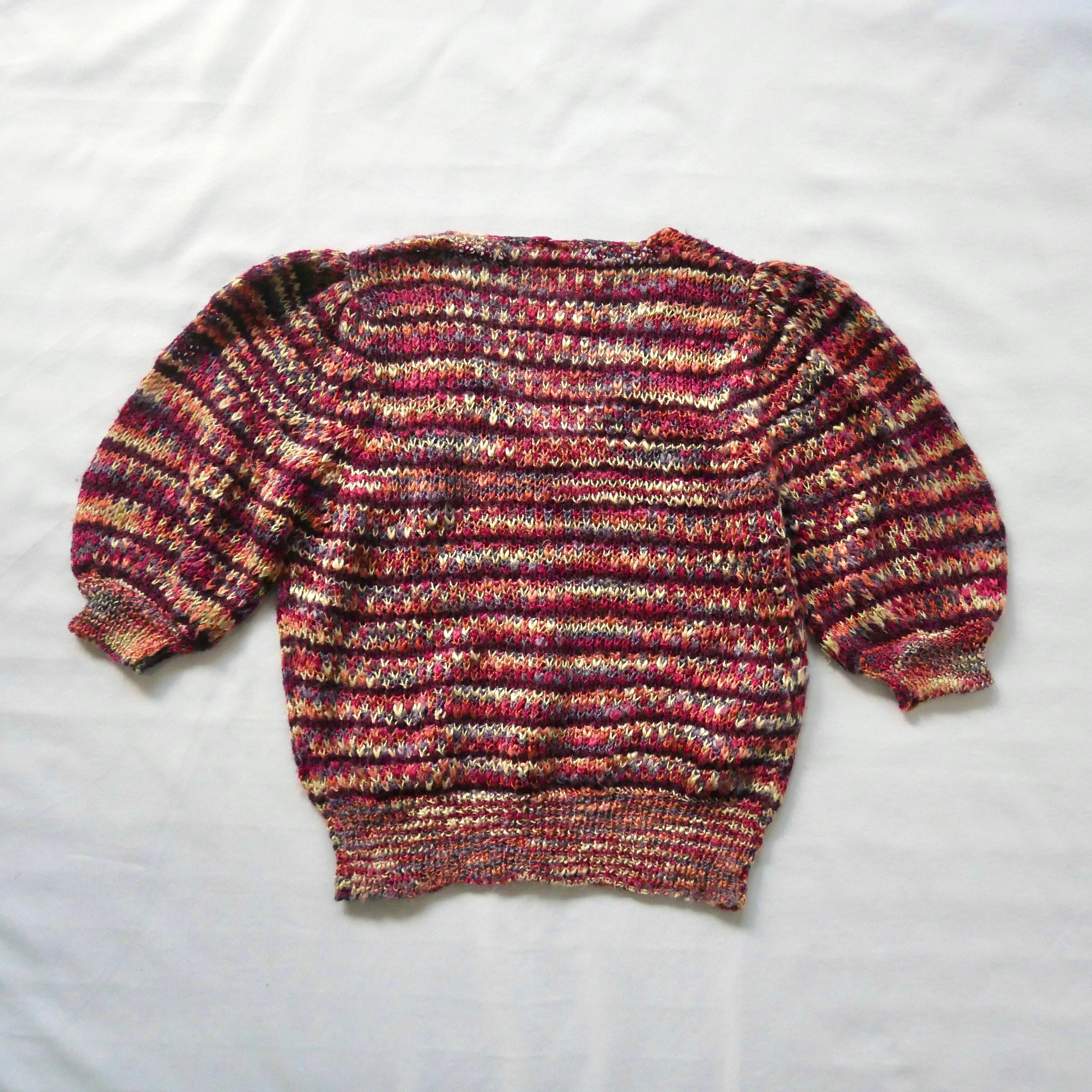 パープルやオレンジ、ピンクなど複雑なミックスカラーが可愛い80年代頃のショートスリーブニットです。