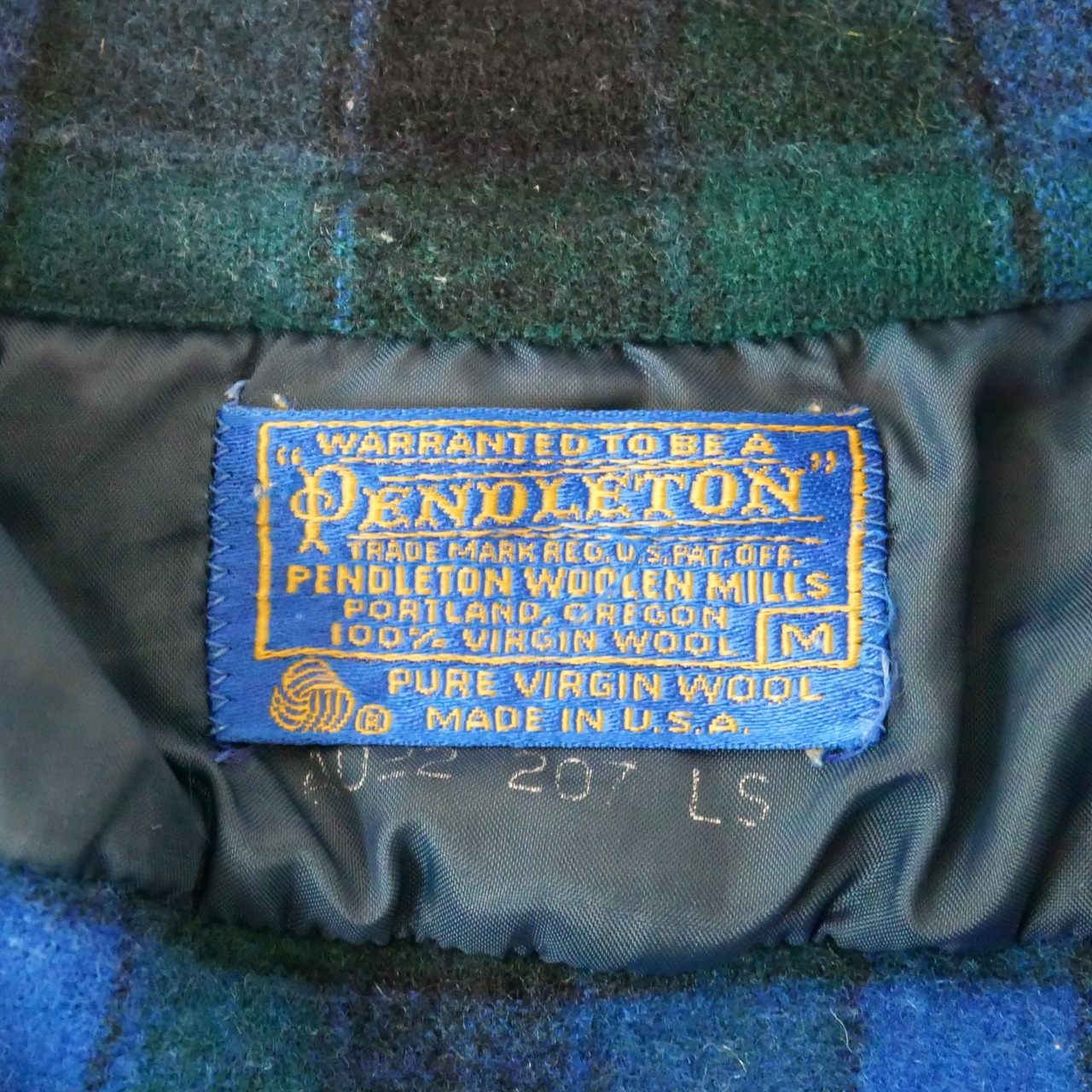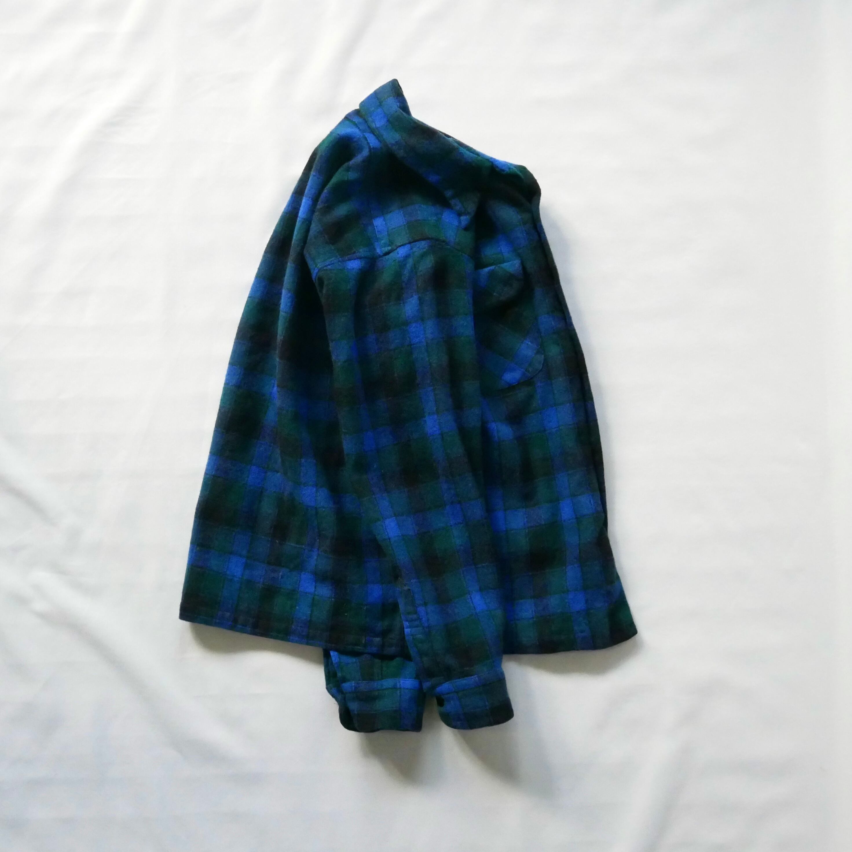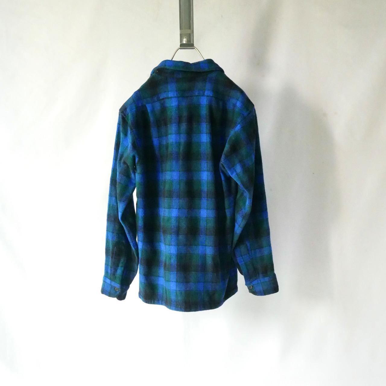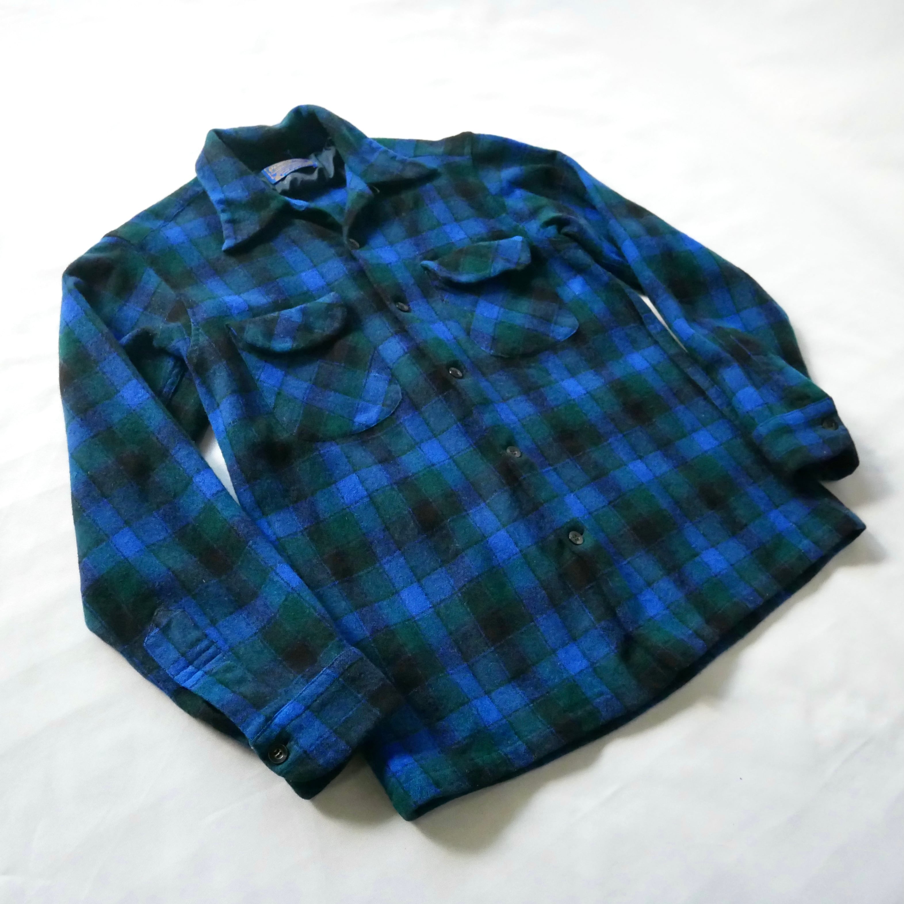 Made in USA 70s pendleton blue green check wool shirt アメリカ製 70年代 ペンドルトン 開襟 ウールチェックシャツ