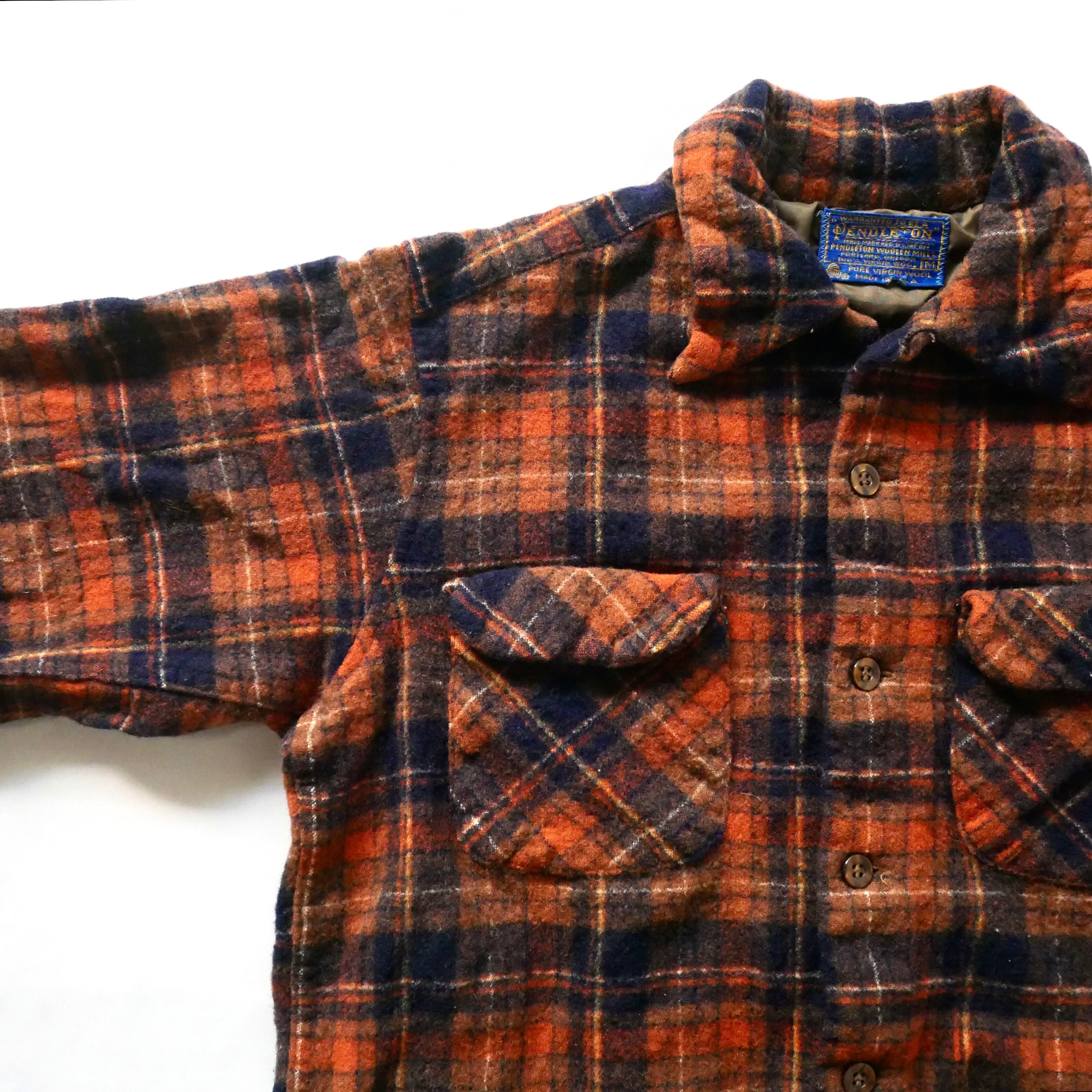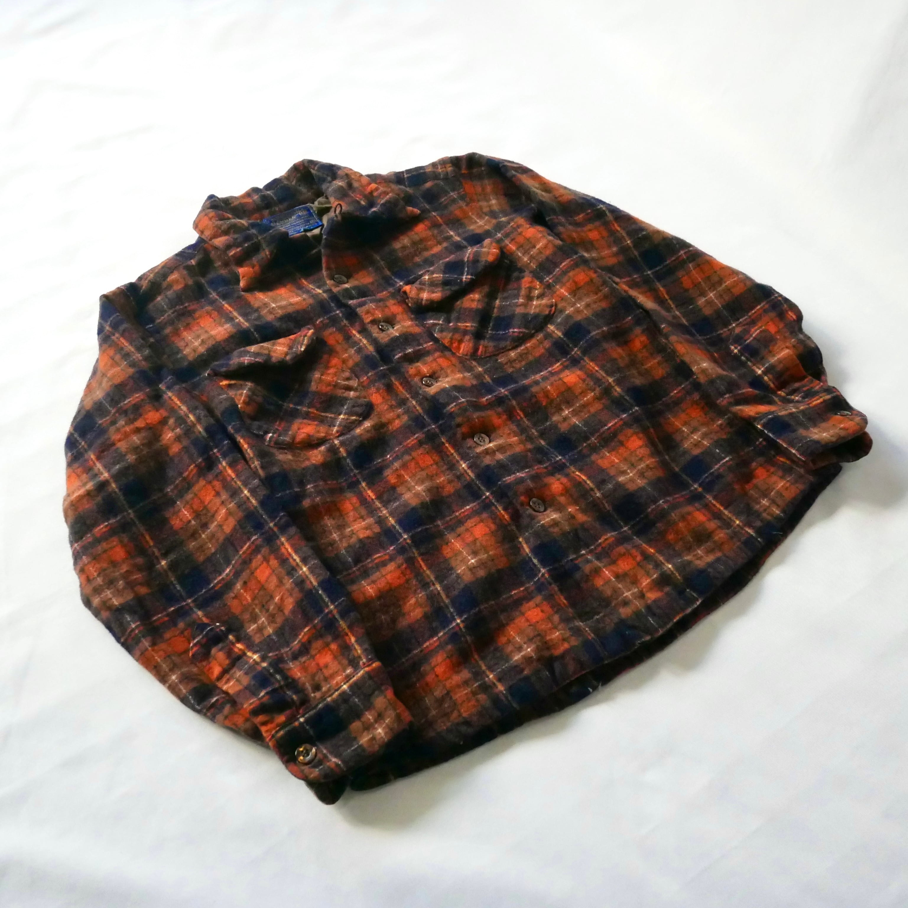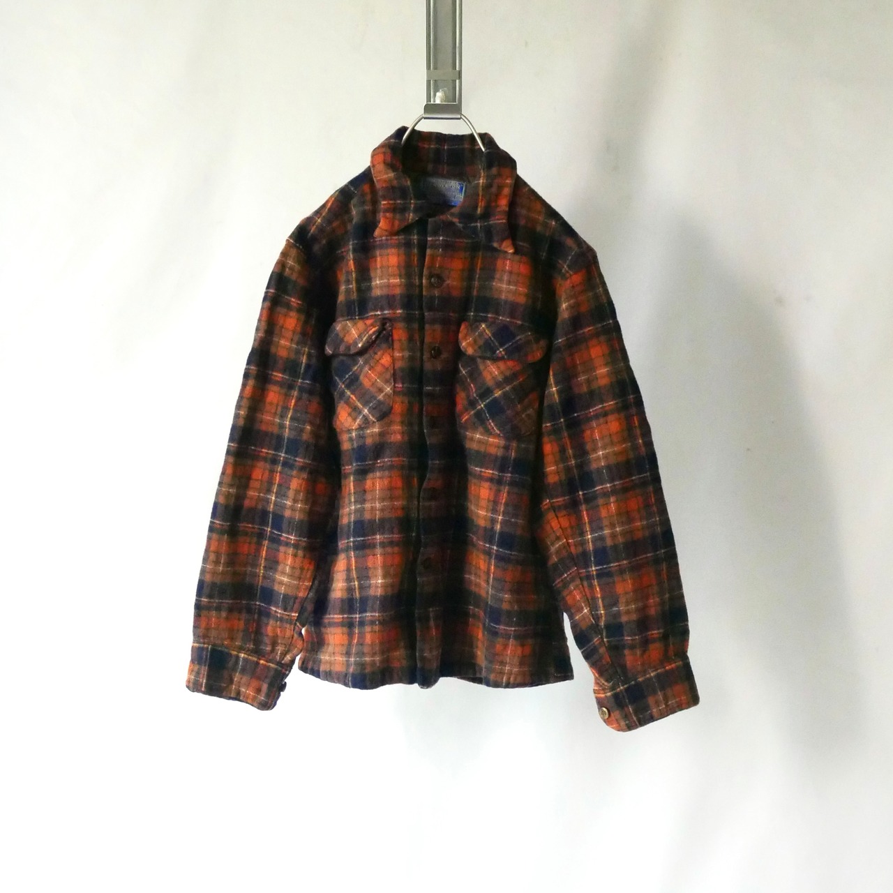Made in USA 70s pendleton brown orange check wool shirt 70年代 アメリカ製 ペンドルトン ウールチェック 開襟シャツ