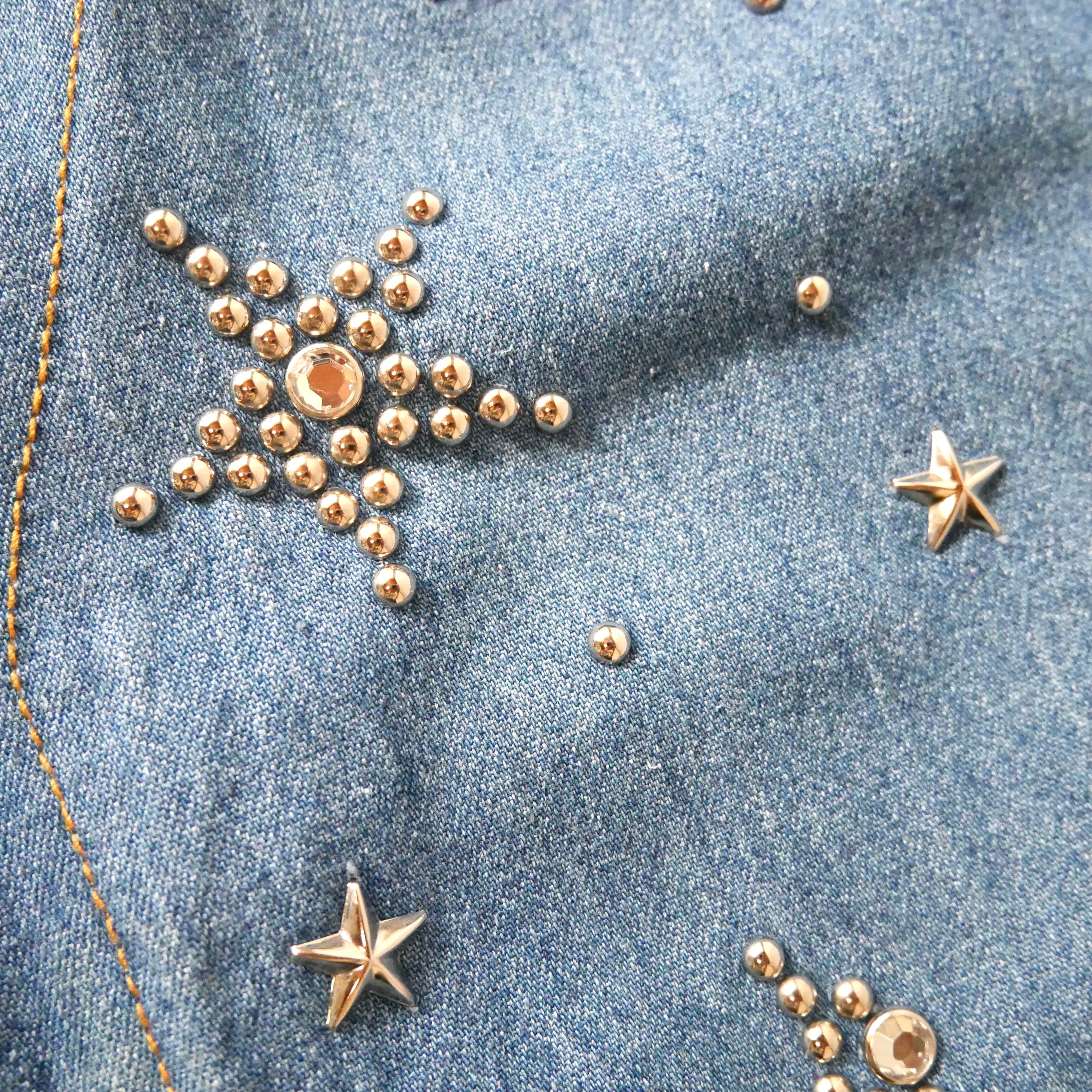 星や月のモチーフにキラキラスタッズが可愛いUSA製ノーカラージャケットです。