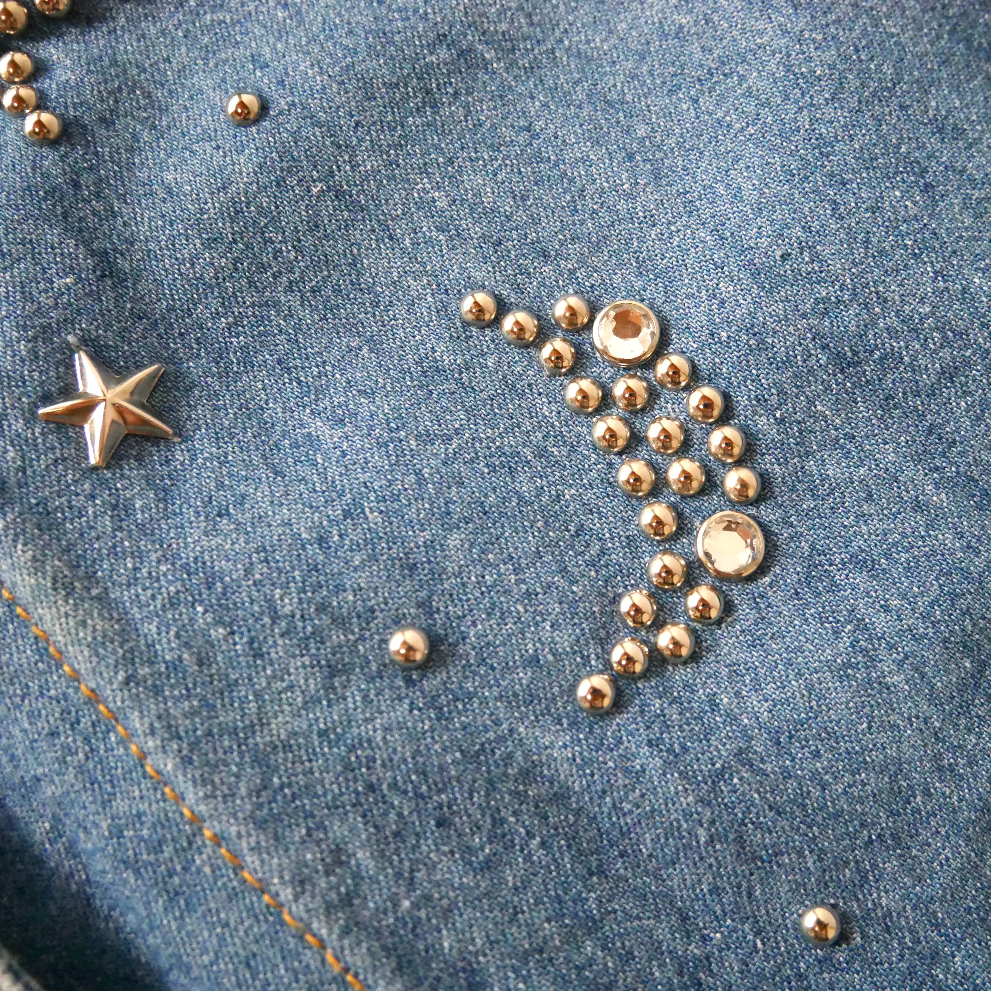 Made in USA 80s star&mooon denim studs jacket アメリカ製 80年代 星&月 スタッズ デニムノーカラージャケット