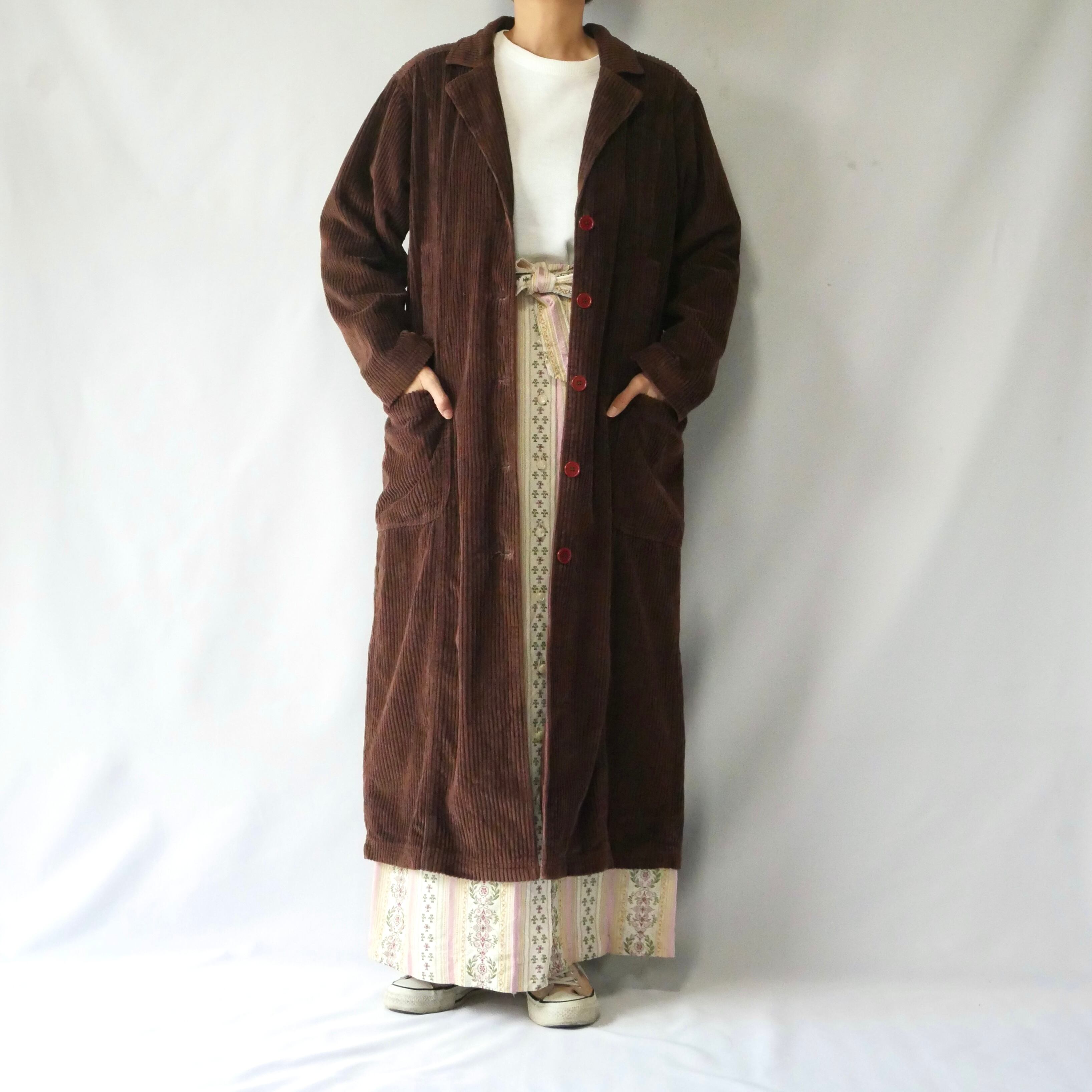 90s fat corduroy brown long coat 90年代 太畝 コーデュロイ ブラウン ロングコート