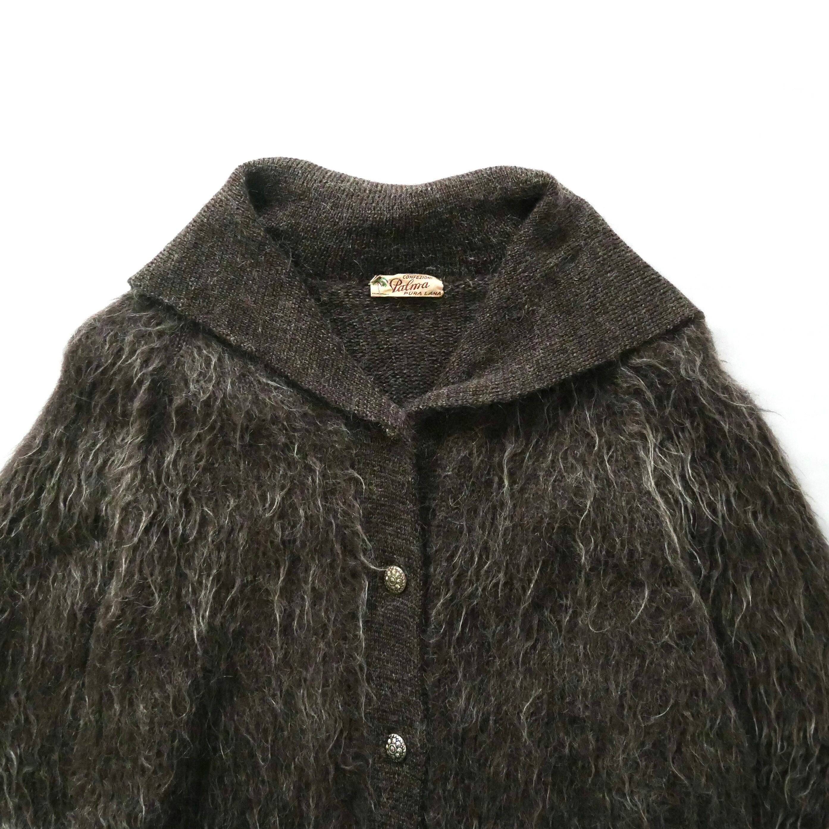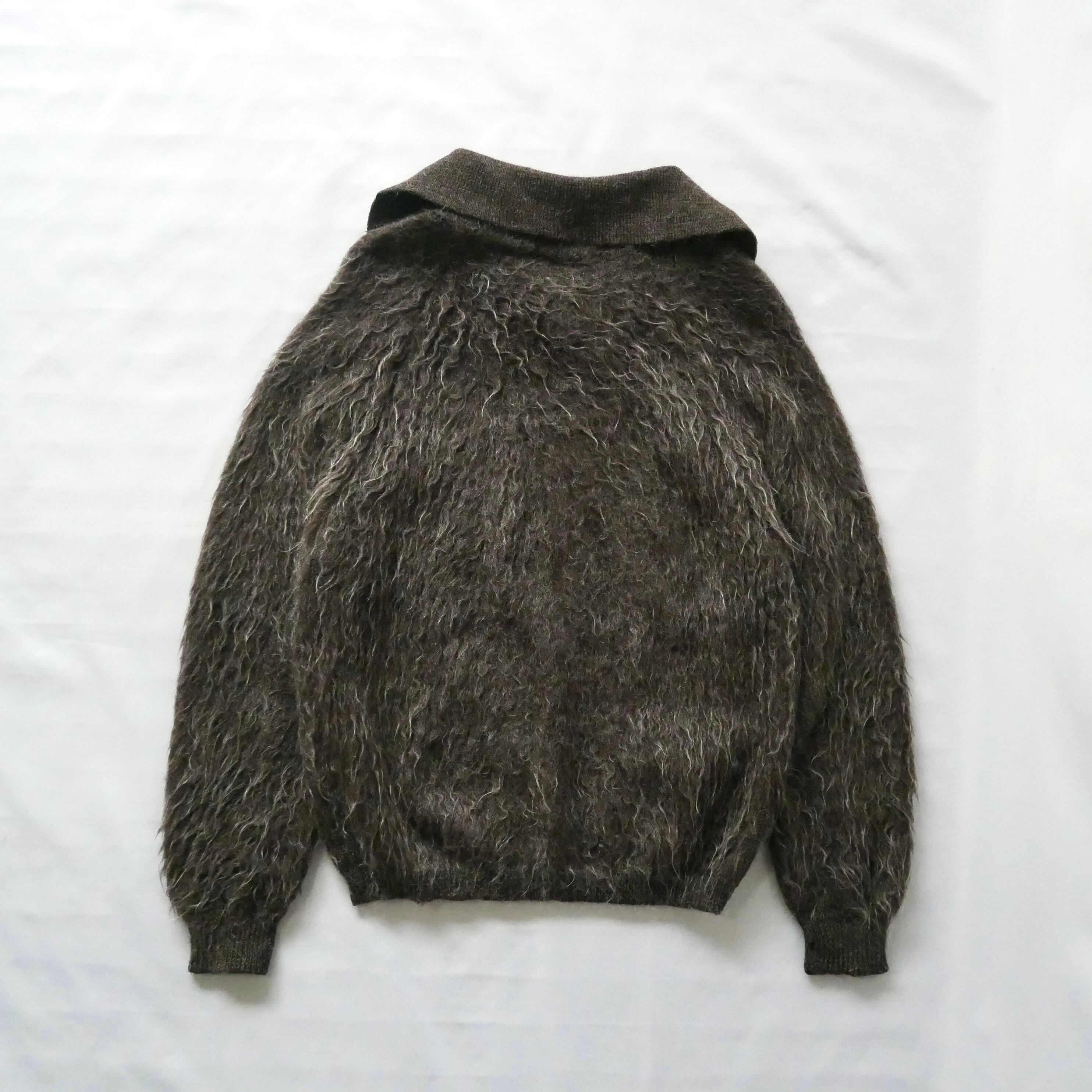 Euro vintage pura lana shaggy brown knit cardigan ユーロ ヴィンテージ ピュアウール 毛足長め ブラウン ニットカーディガン