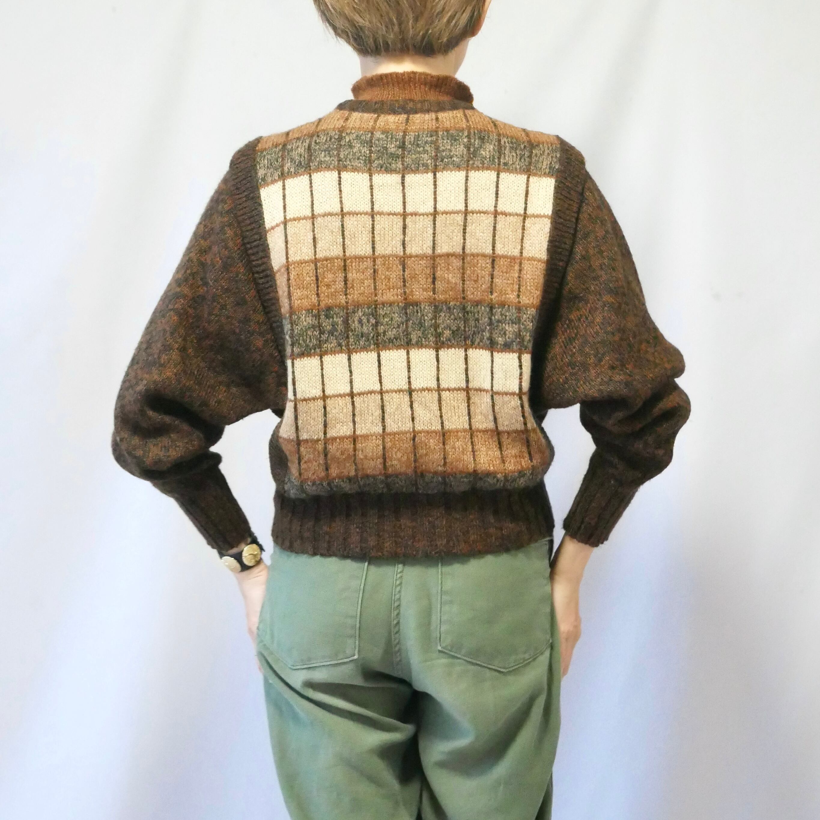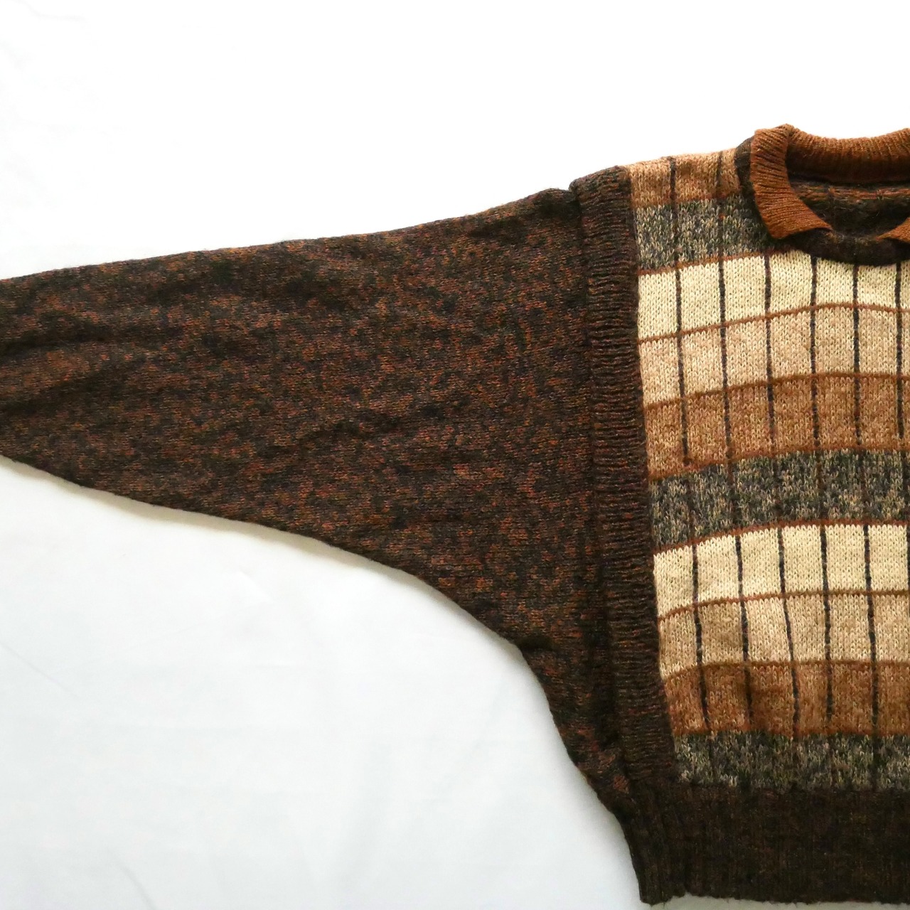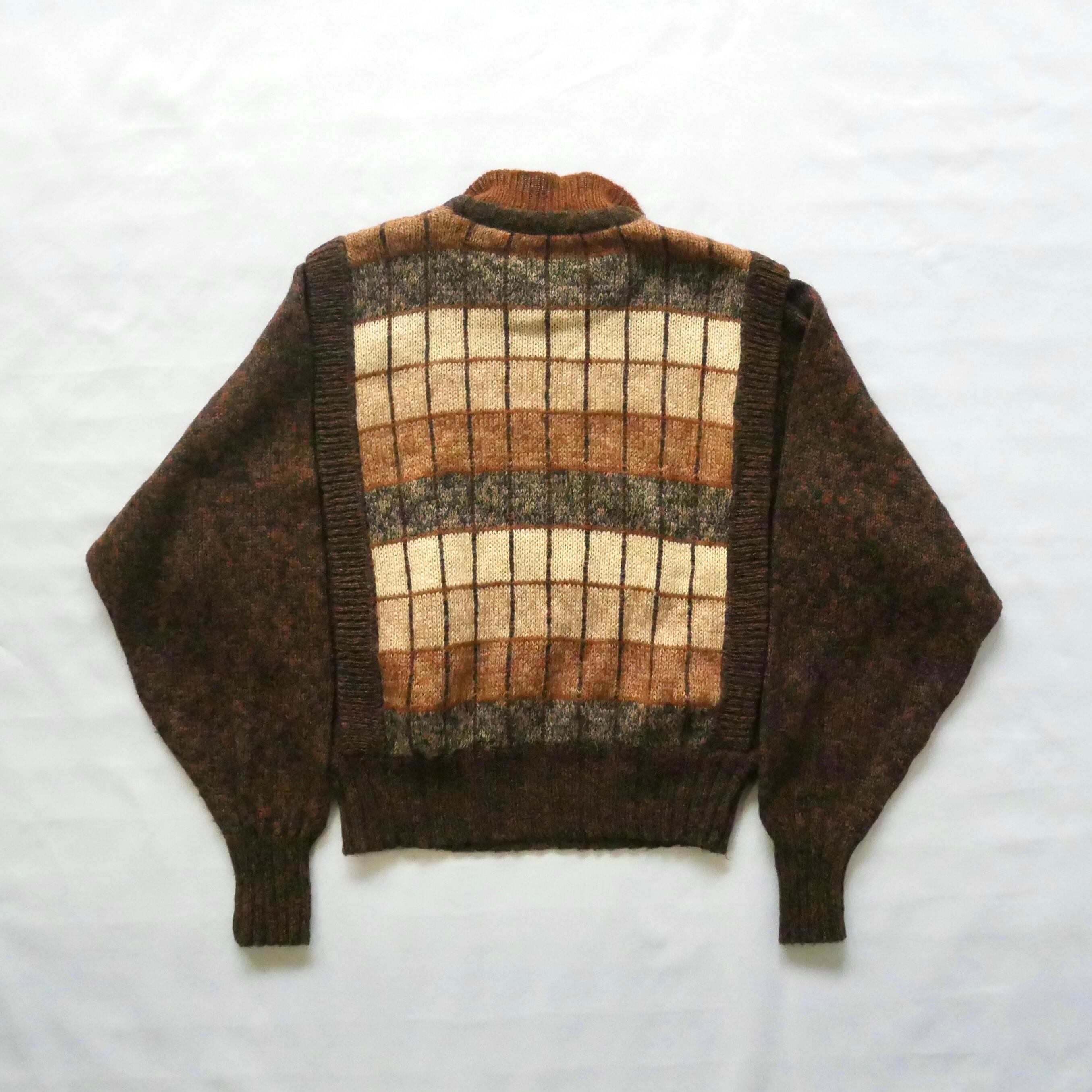 Made in Italy 70s mohair mix brown dolman sleeve knit イタリア製 70年代 ブロック柄 モヘア混 ドルマンスリーブニット