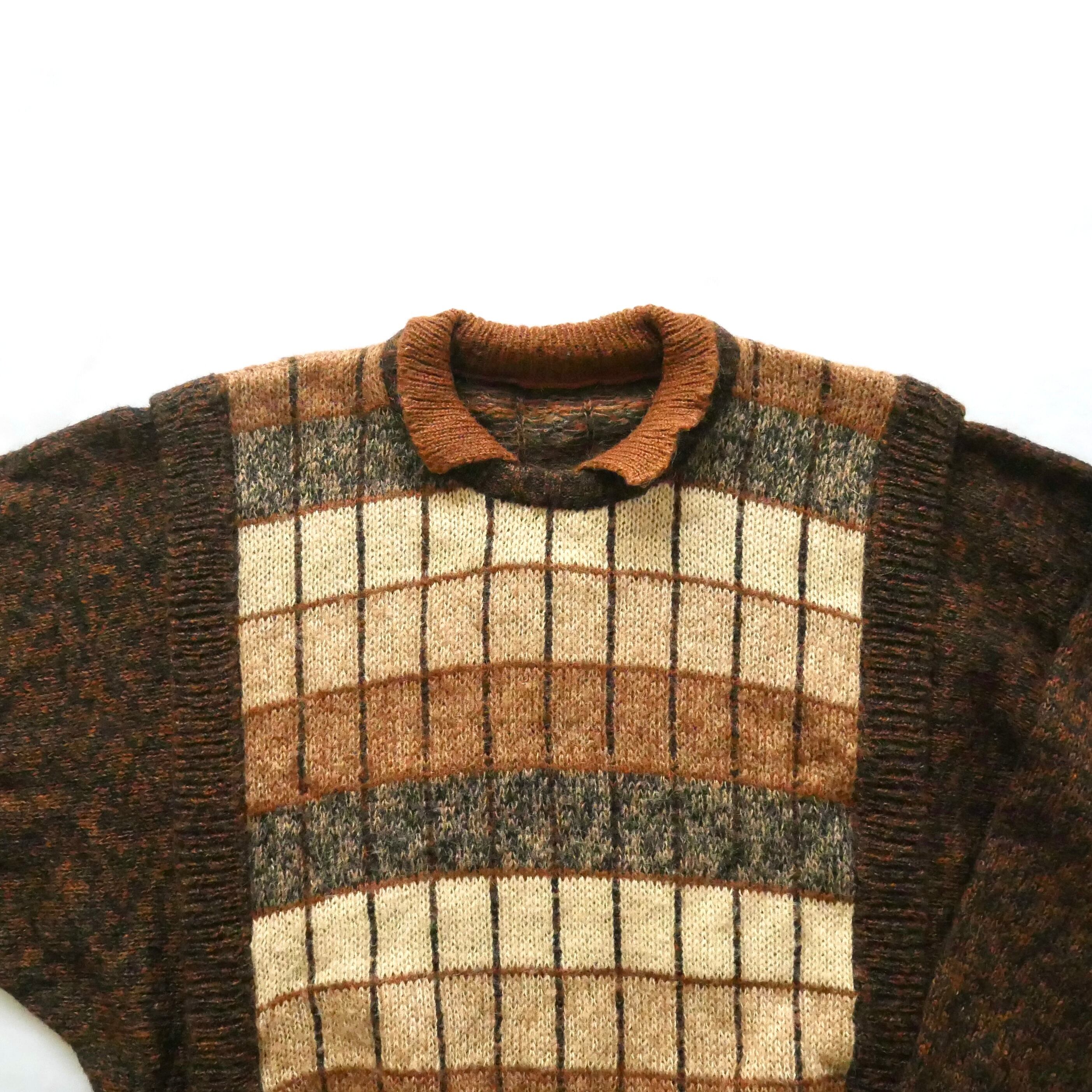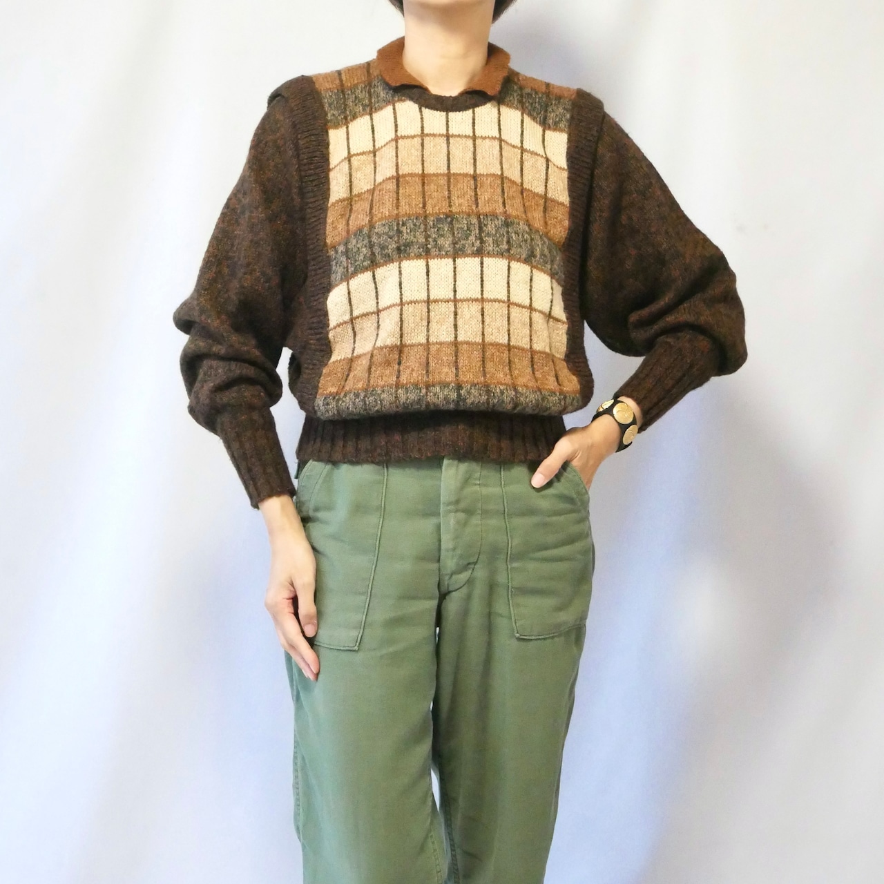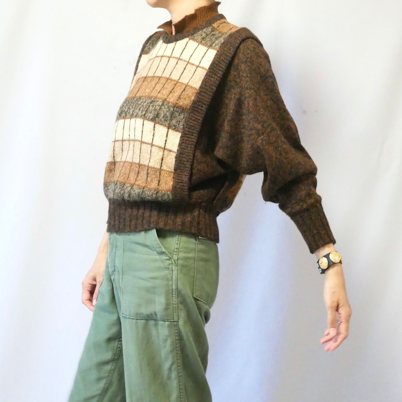 Made in Italy 70s mohair mix brown dolman sleeve knit イタリア製 70年代 ブロック柄 モヘア混 ドルマンスリーブニット