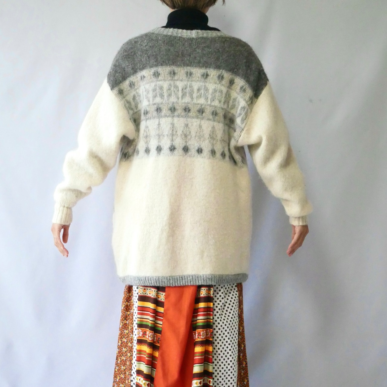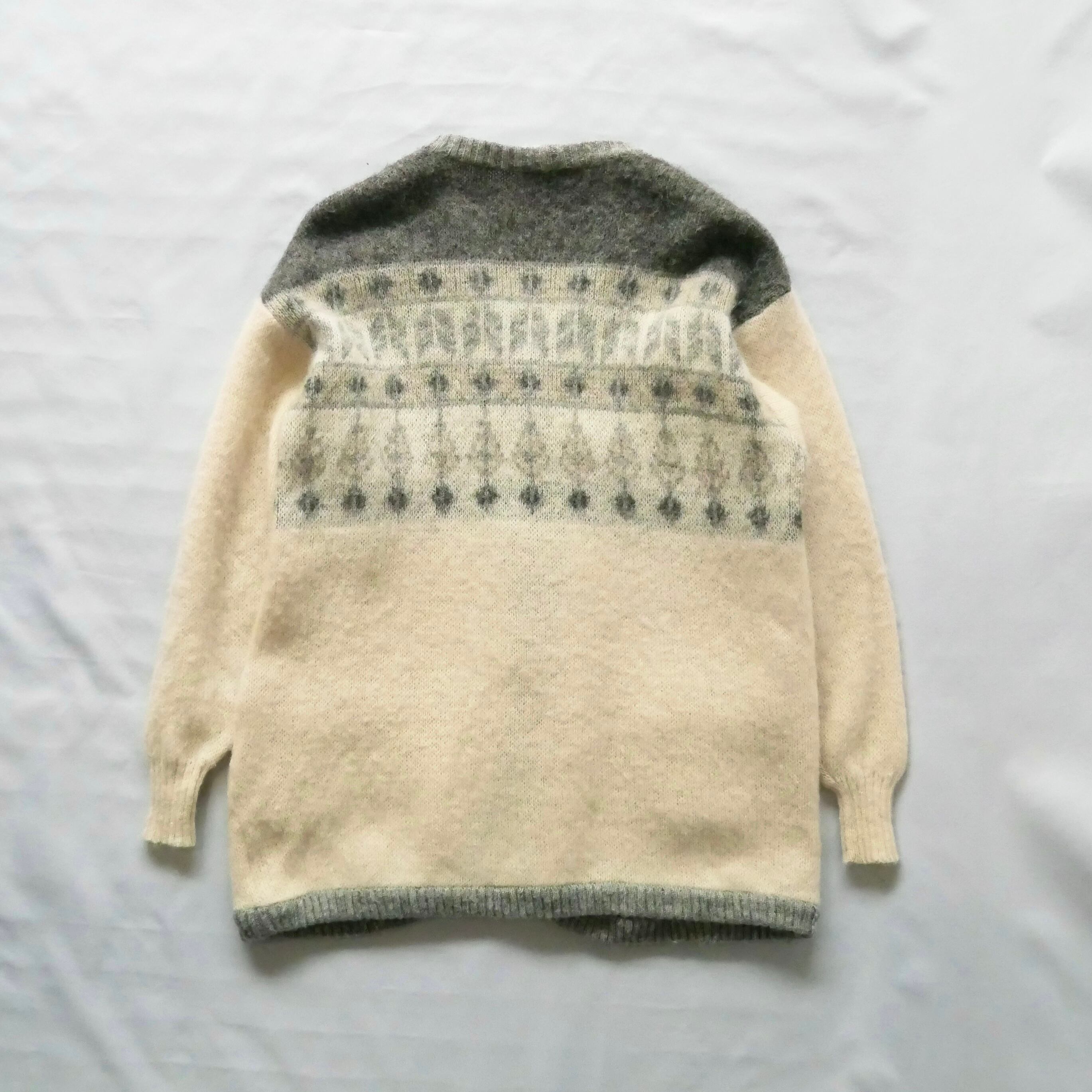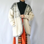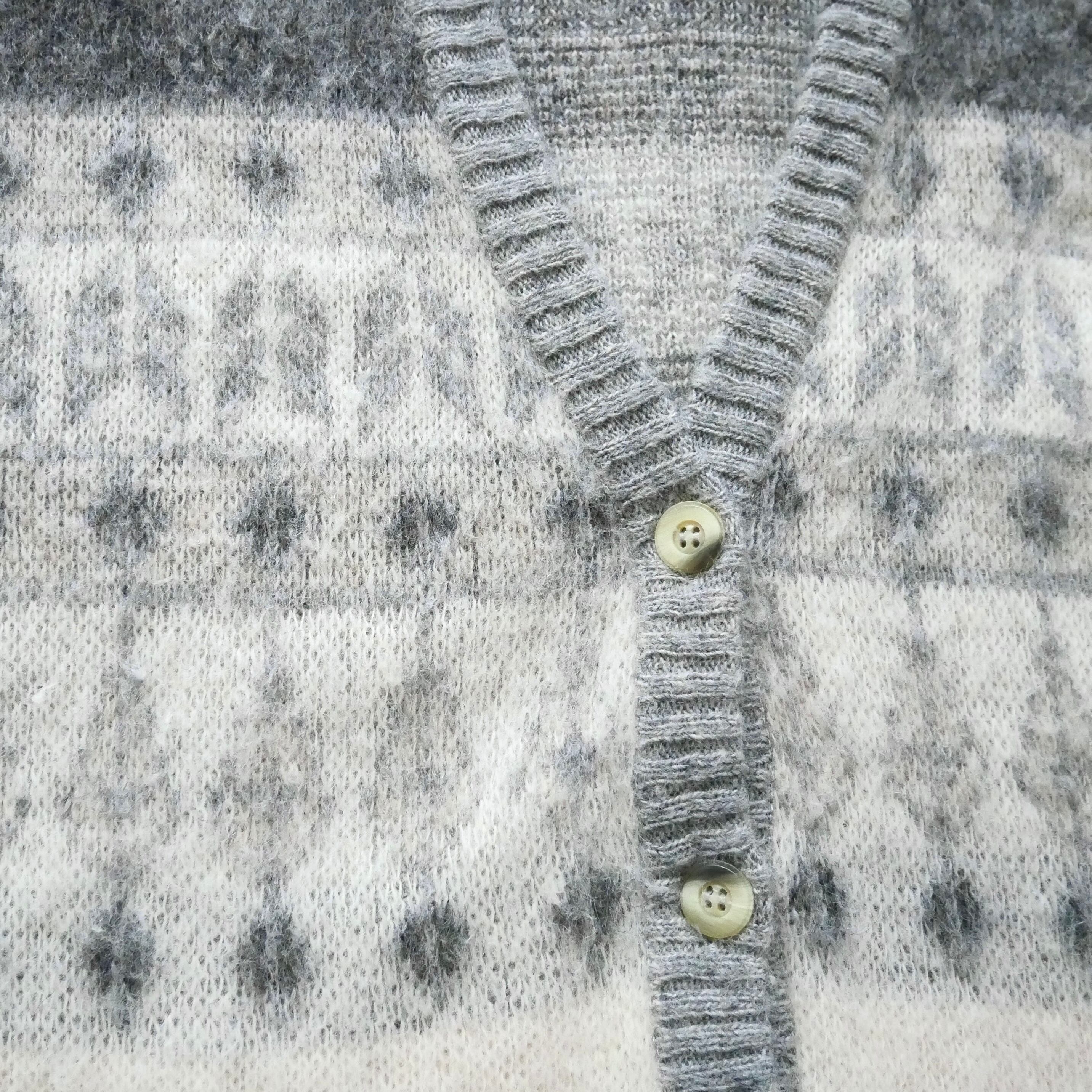 Made in Iceland grey white wool knit cardigan アイスランド製 グレー 白 ノルディック ウール ニットカーディガン