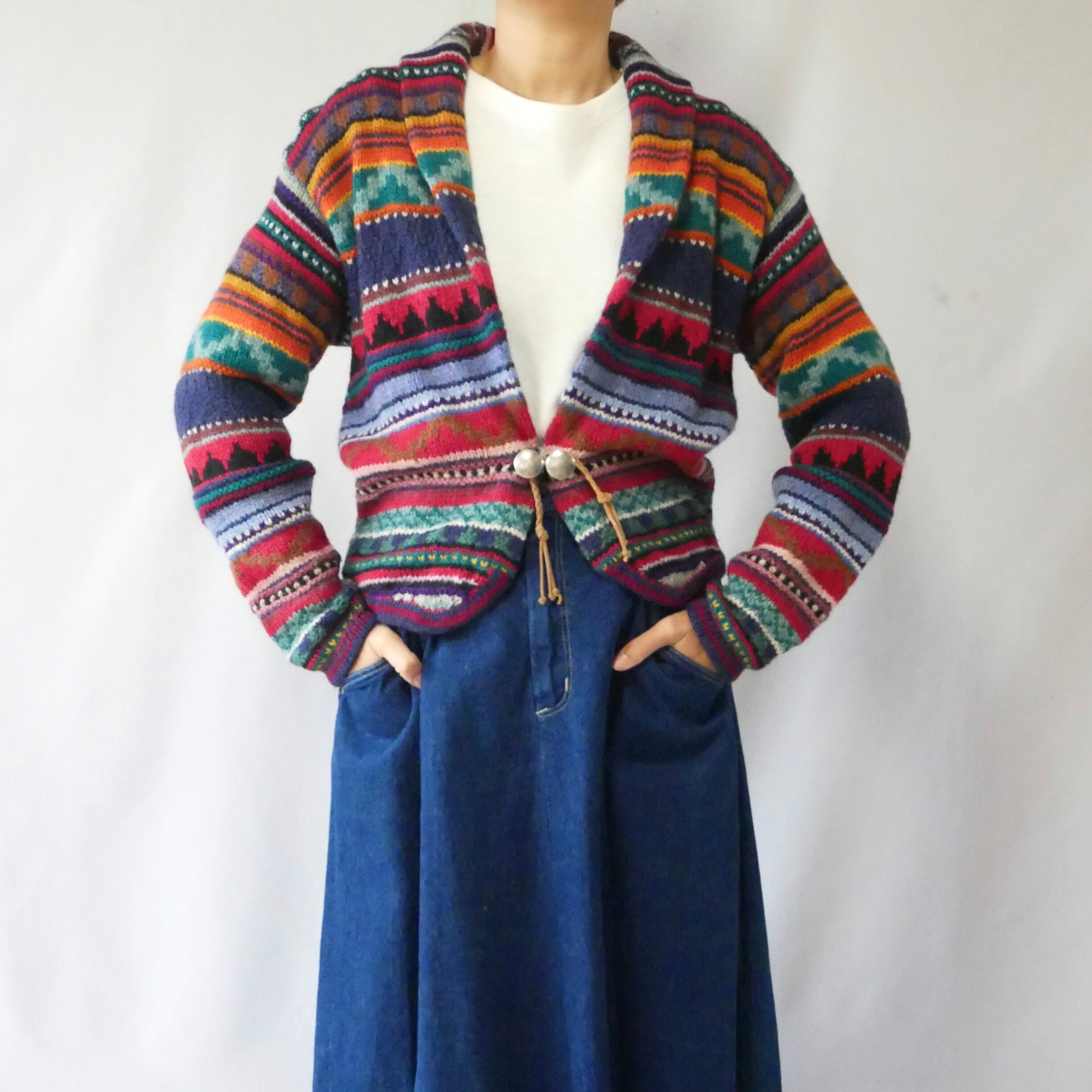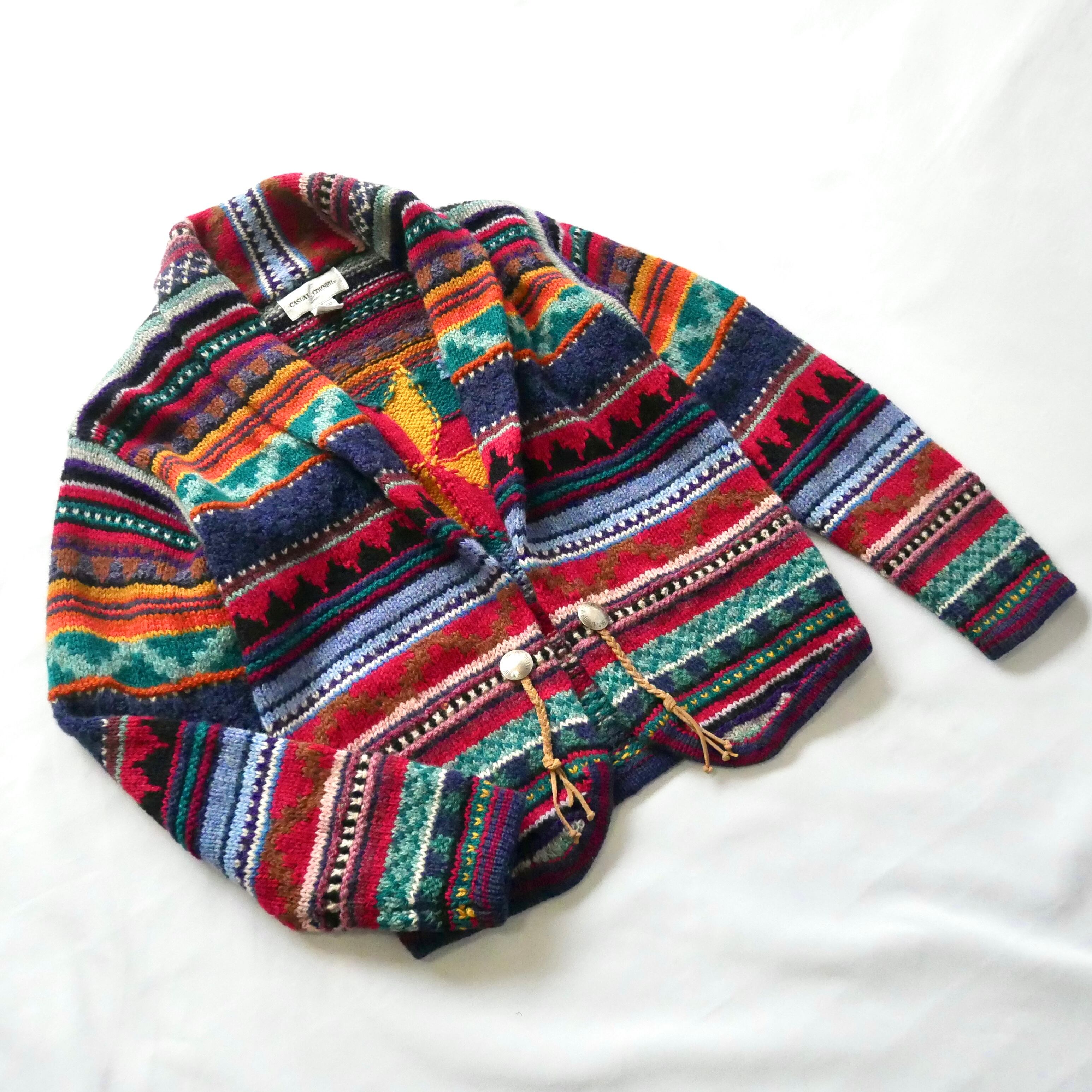 90s native pattern colorful knit gown 90年代 カラフル ネイティブ柄 ニットガウン