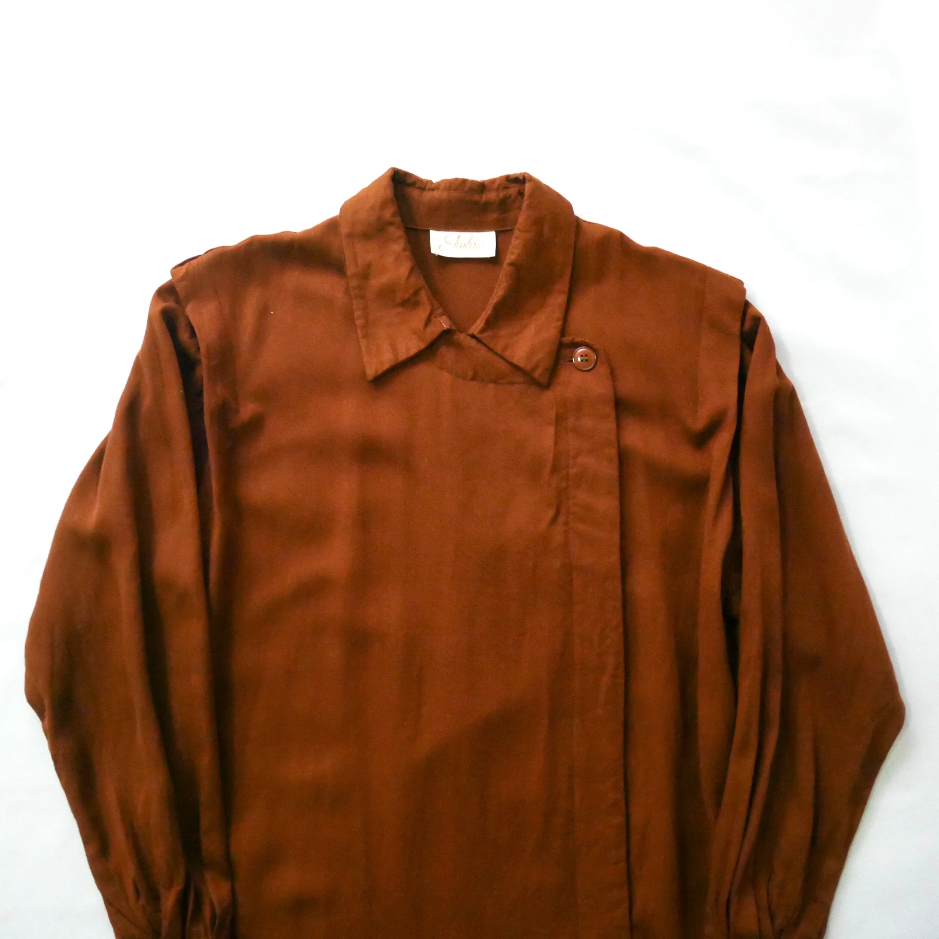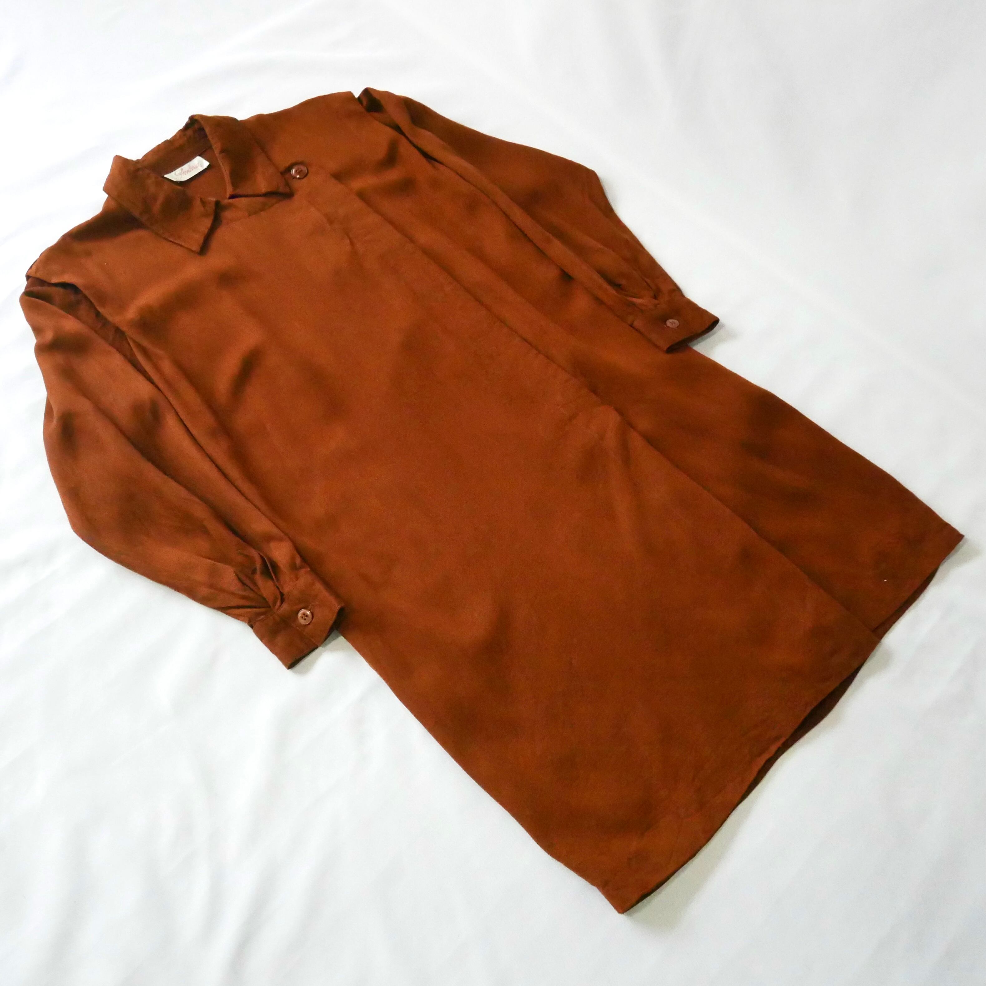 Made in USA brown rayon onepiece アメリカ製 ブラウン 比翼 レーヨン ロングワンピース