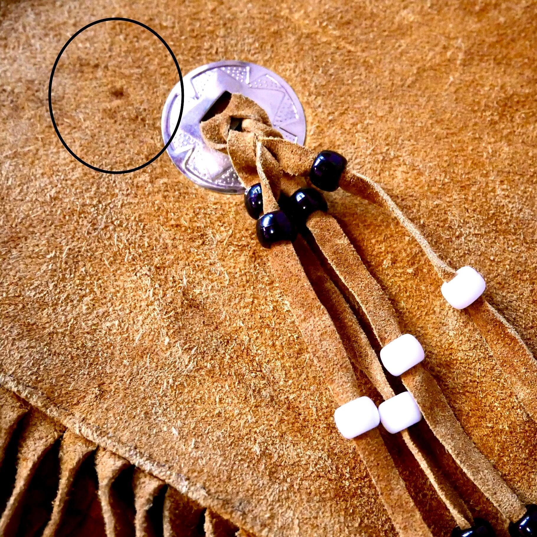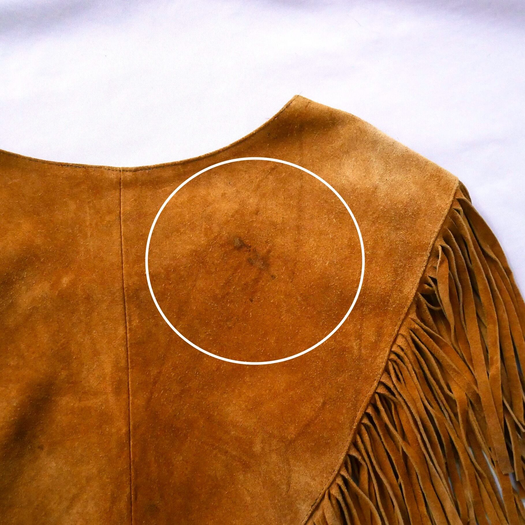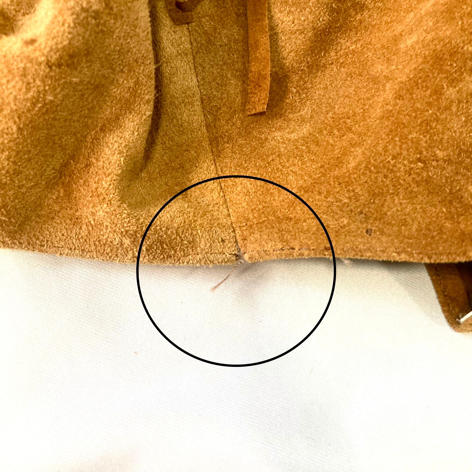 古いスウェードゆえ、摩擦がかかる箇所など色褪せ毛羽立ちなどあります。