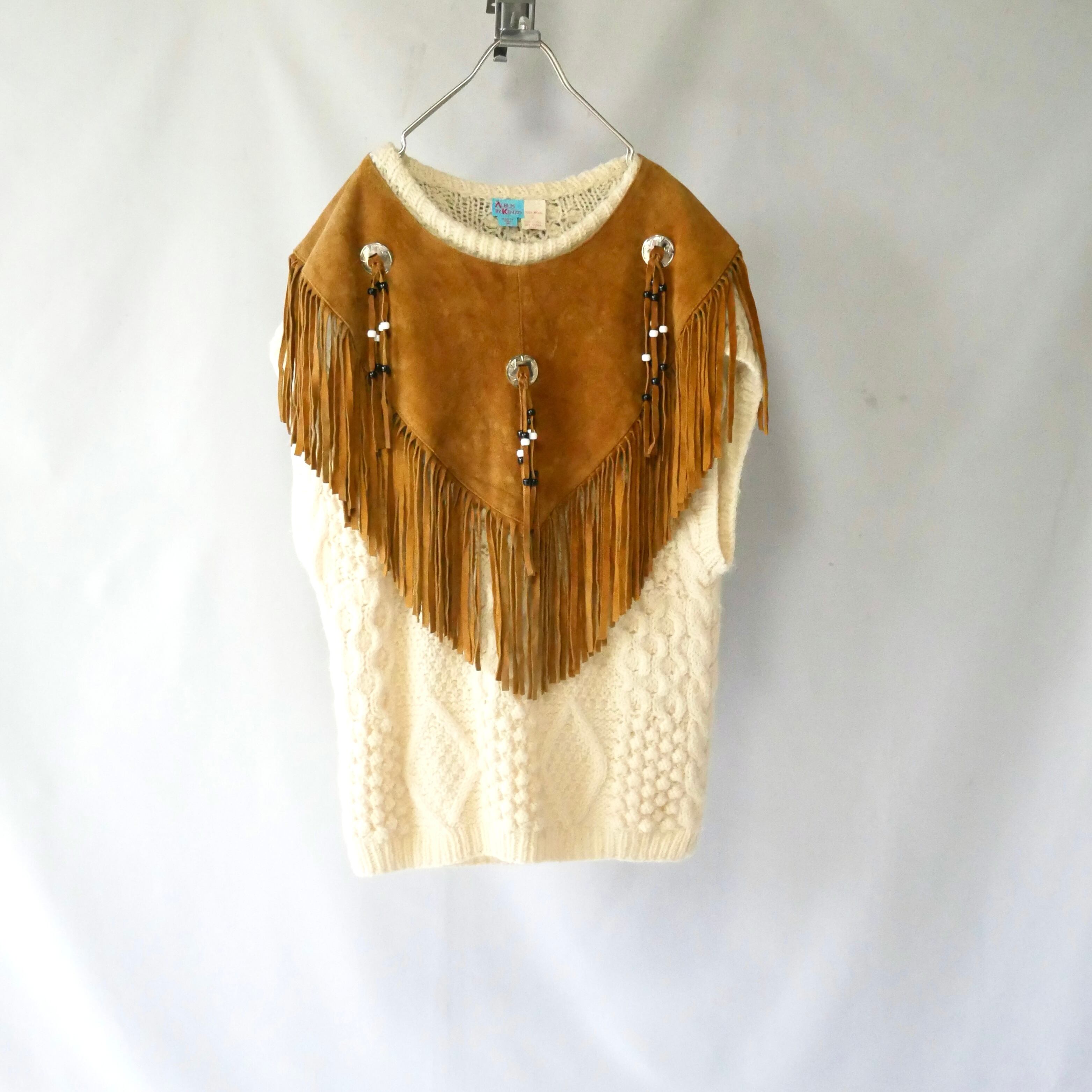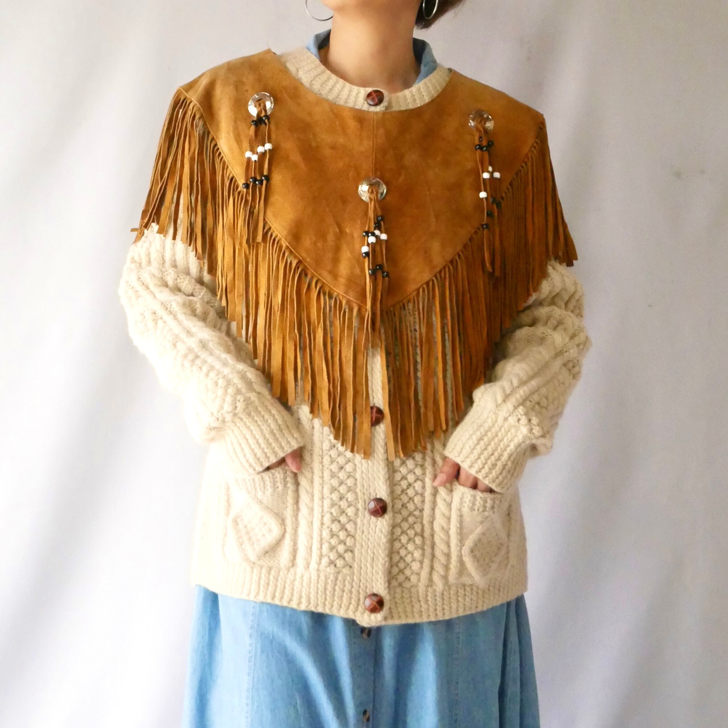 Made in mexico 70s leather fringe poncho collar メキシコ製 70年代 フリンジ スウェード レザー つけ襟 ポンチョ