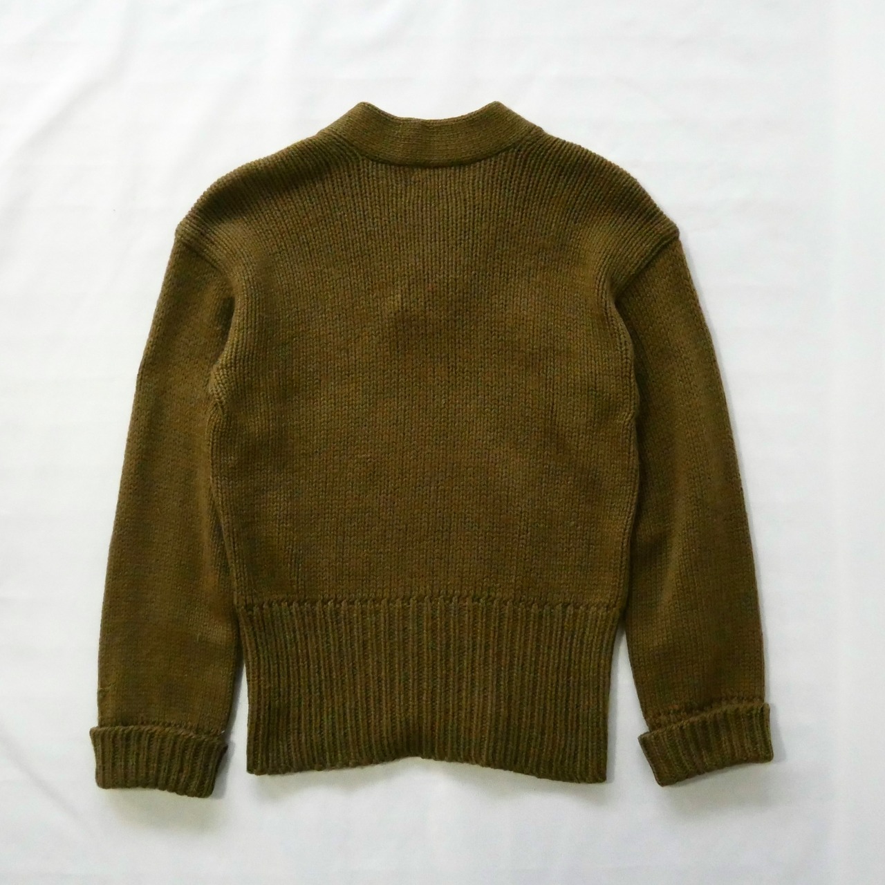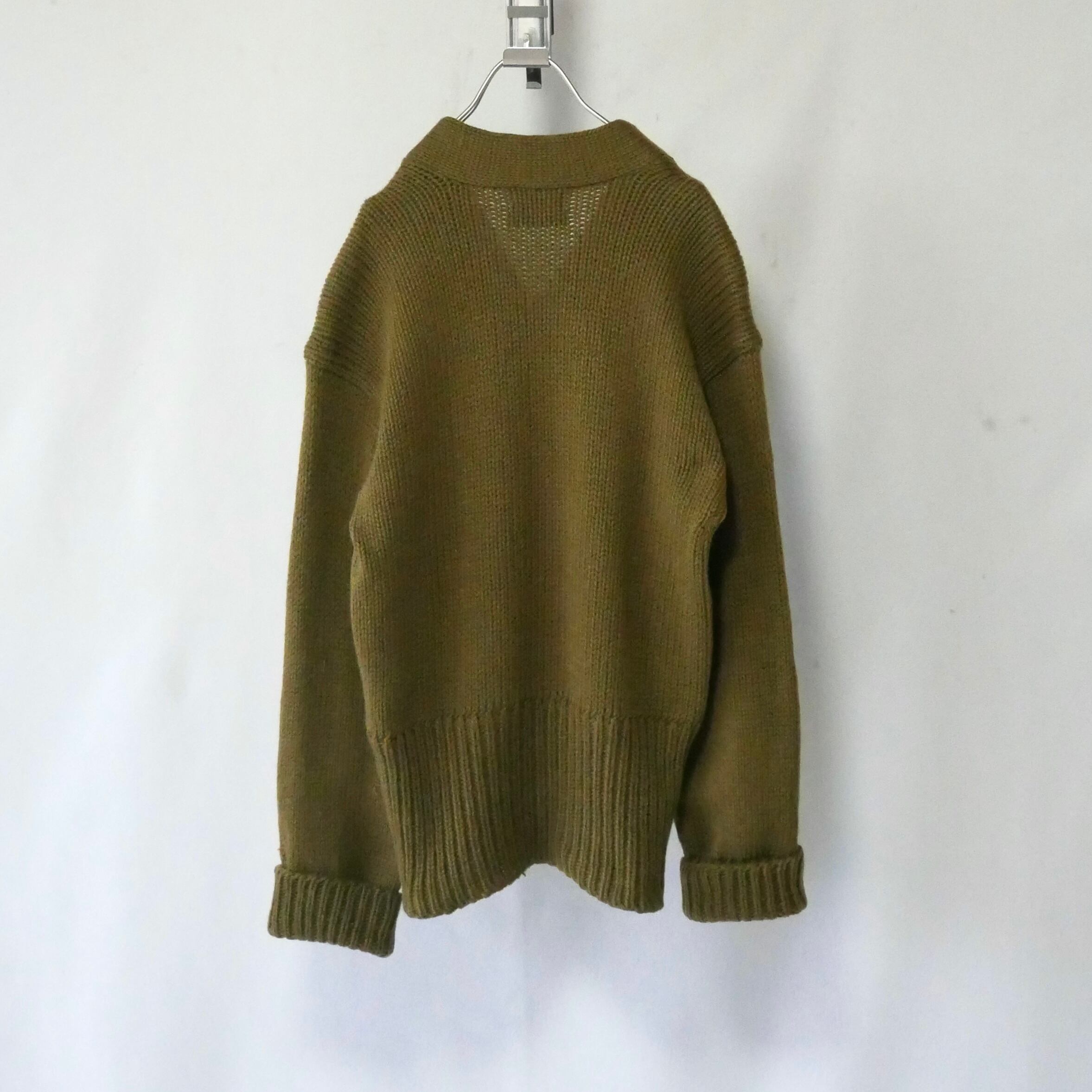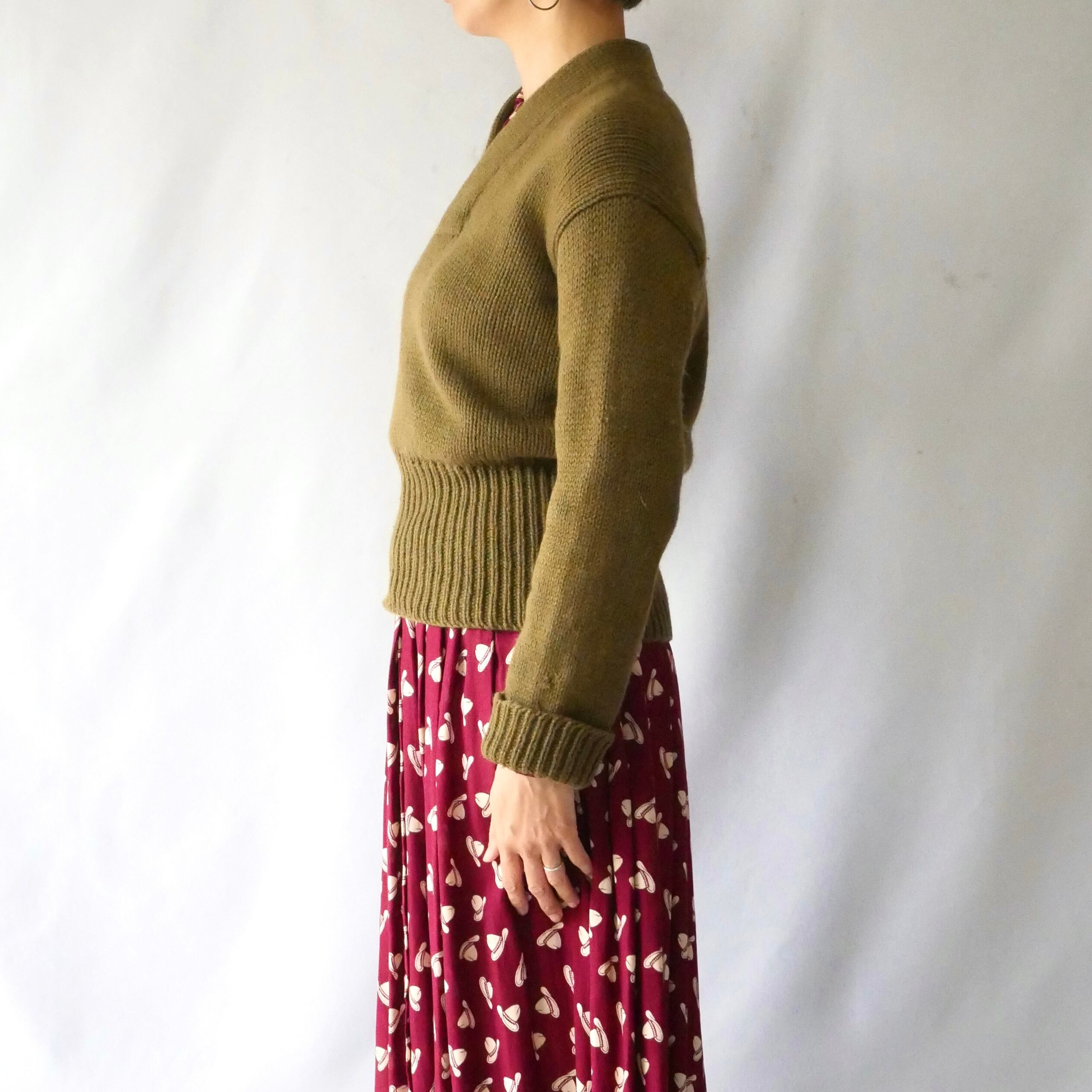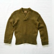 40s vintage highland V-neck low gauge wool sweater 40年代 ヴィンテージ ローゲージ vネック オリーブ 長リブ ニット