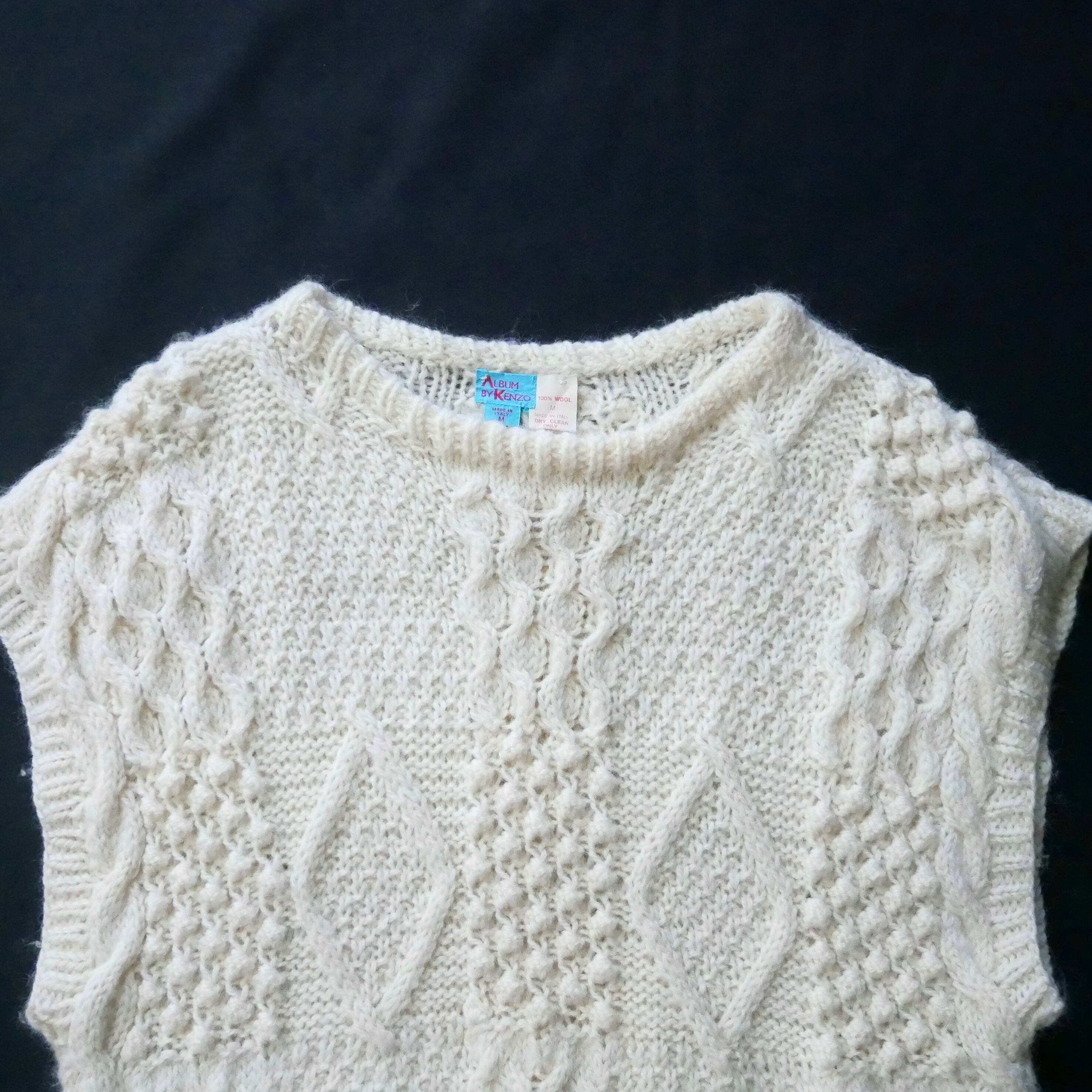 Made in italy 80s album by KENZO fisherman knit vest イタリア製 KENZO 白 アランニットベスト