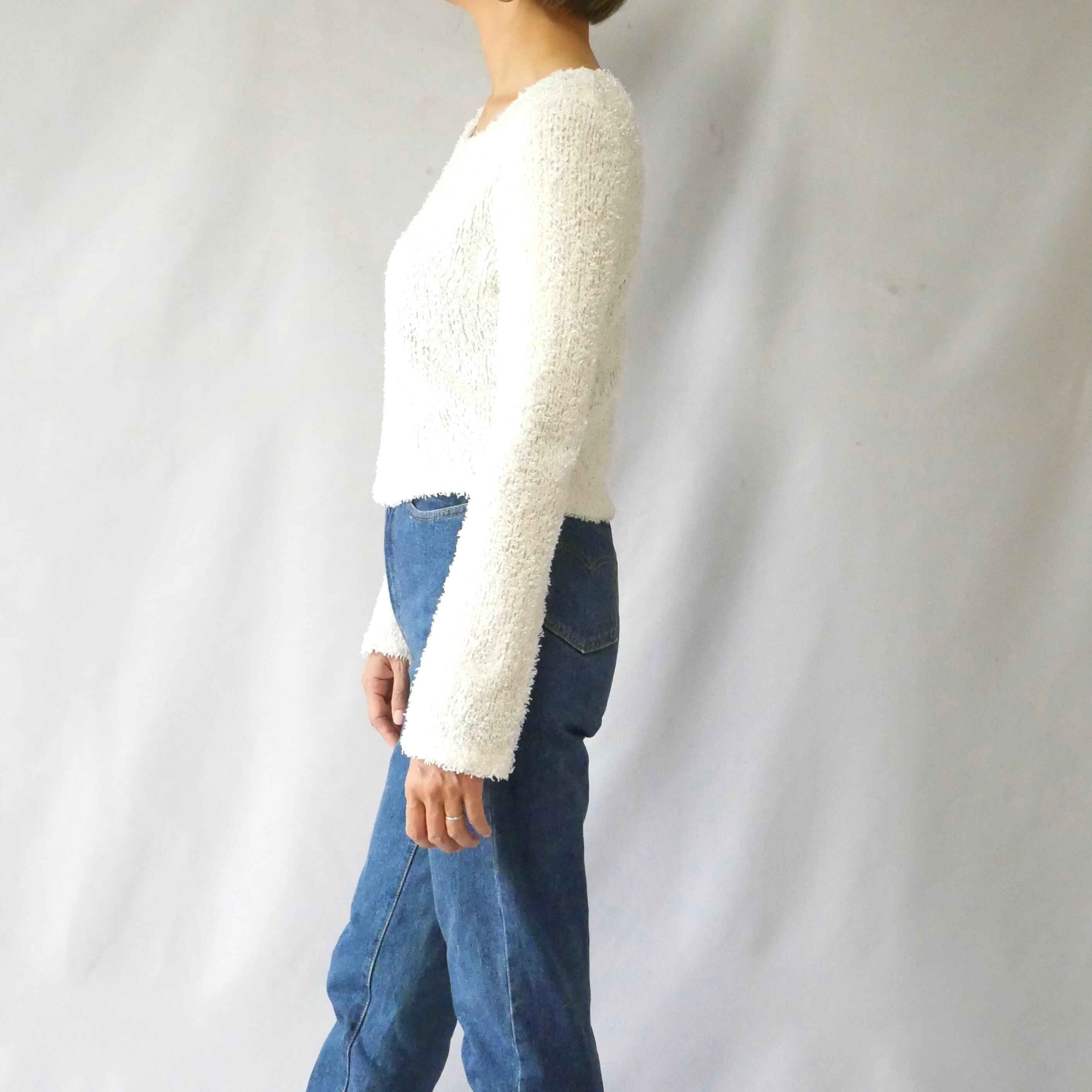 Made in USA 80s white shaggy tops アメリカ製 80-90年代 シャギー ホワイト ショート丈トップス