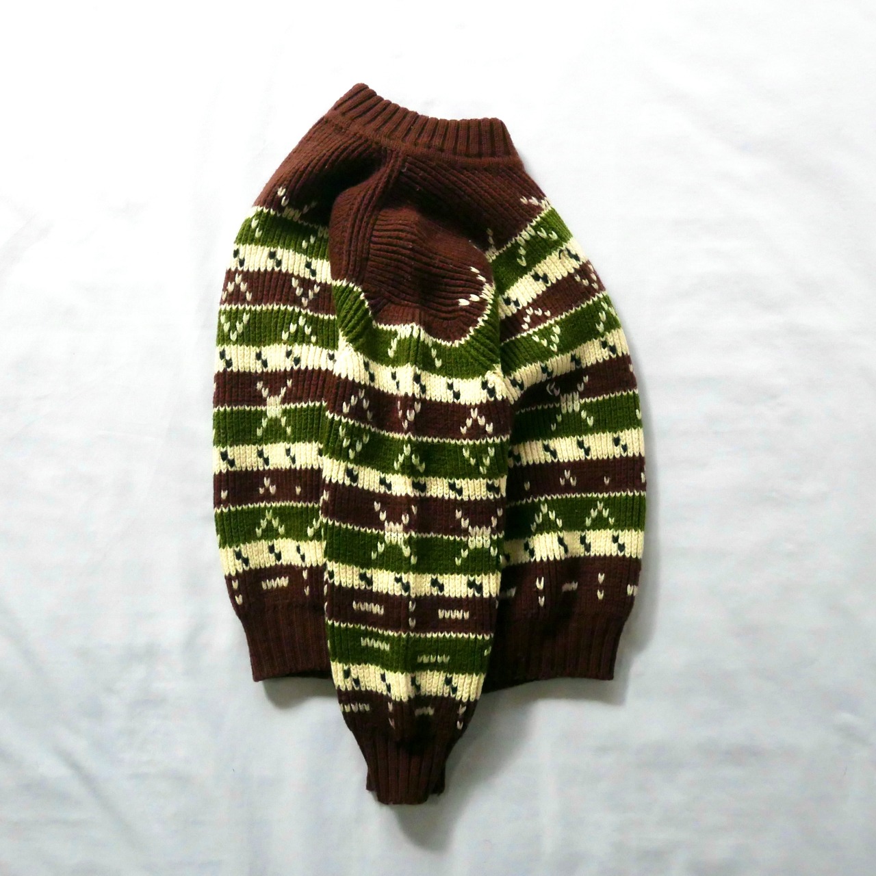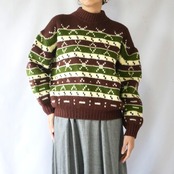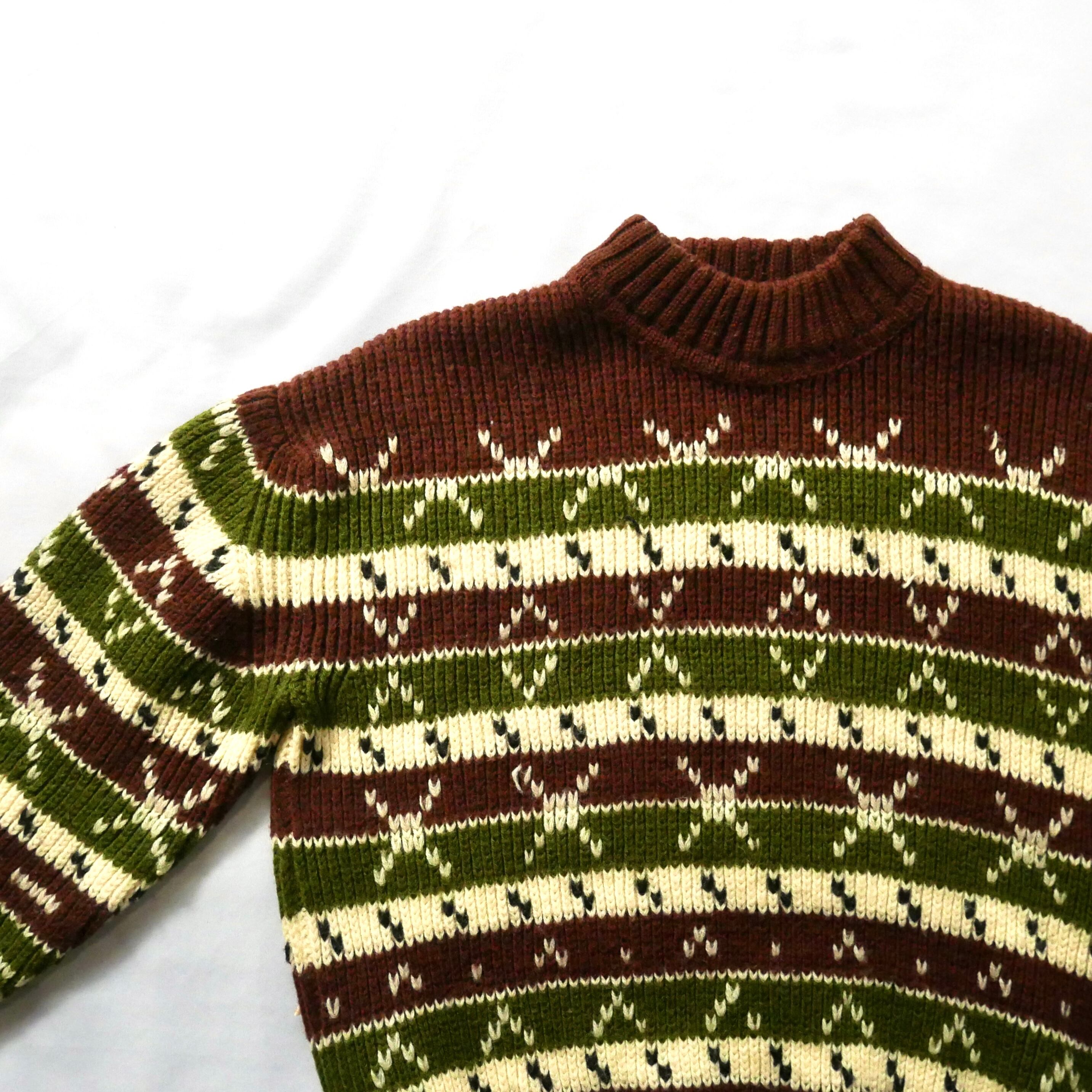 Vintage green brown acrylic mockneck knit ヴィンテージ ブラウン グリーン アクリル モックネック ニット | &Dorothy used&vintage 古着屋