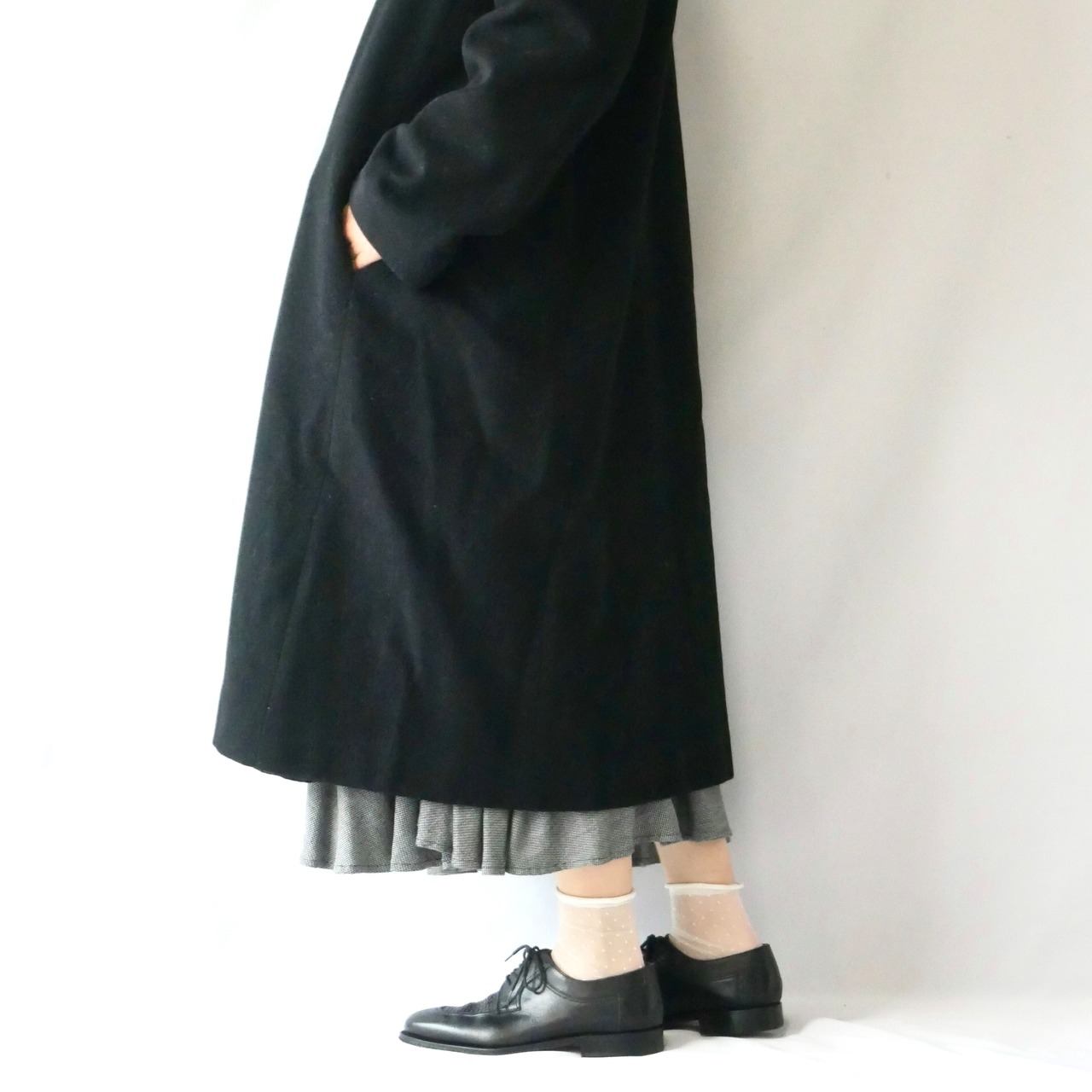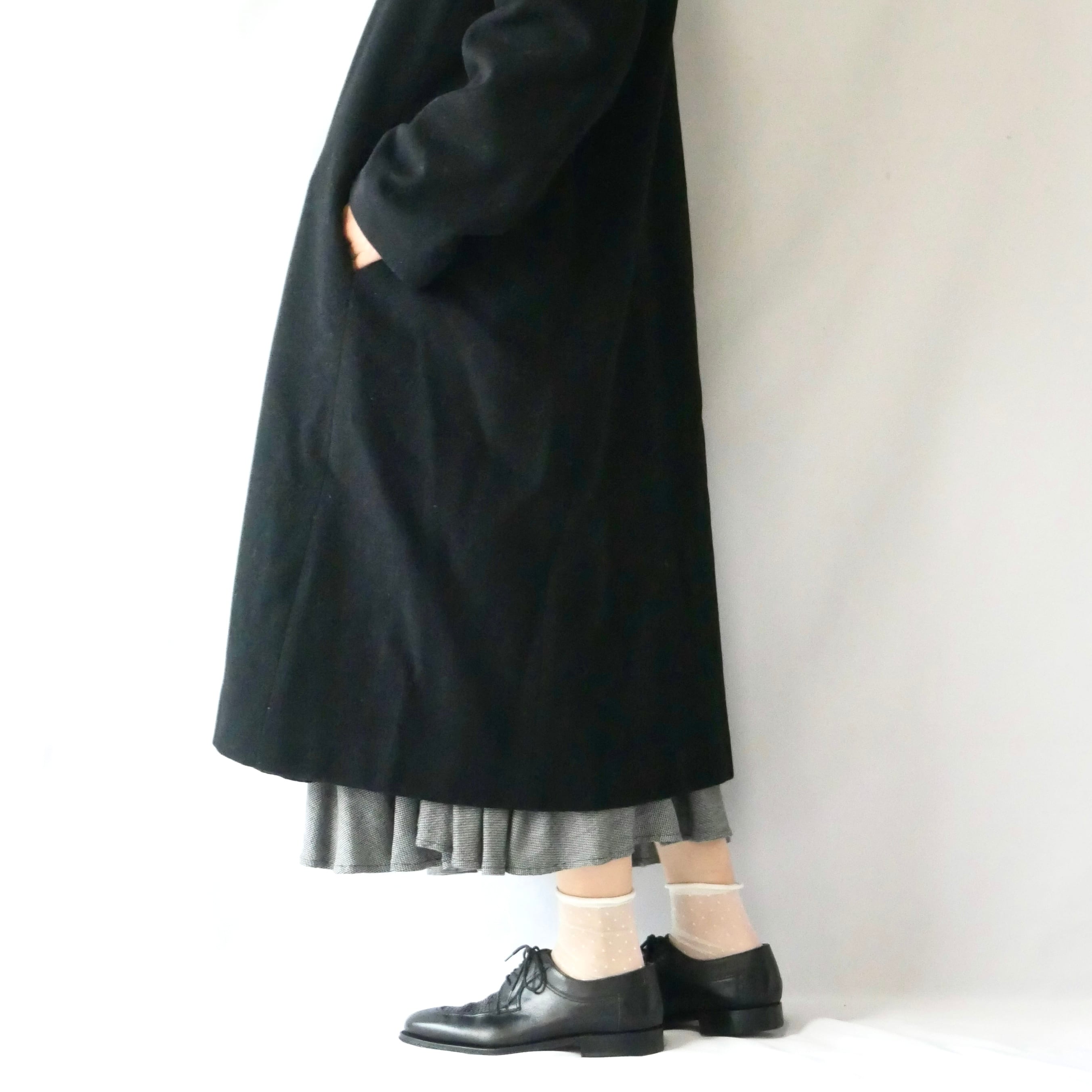 Made in USA 80s KAREN black wool long coat アメリカ製 80年代 黒 ウールロングコート