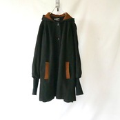 黒地にブラウンのポケット口、フード裏地がアクセントで可愛いウールコートです。
