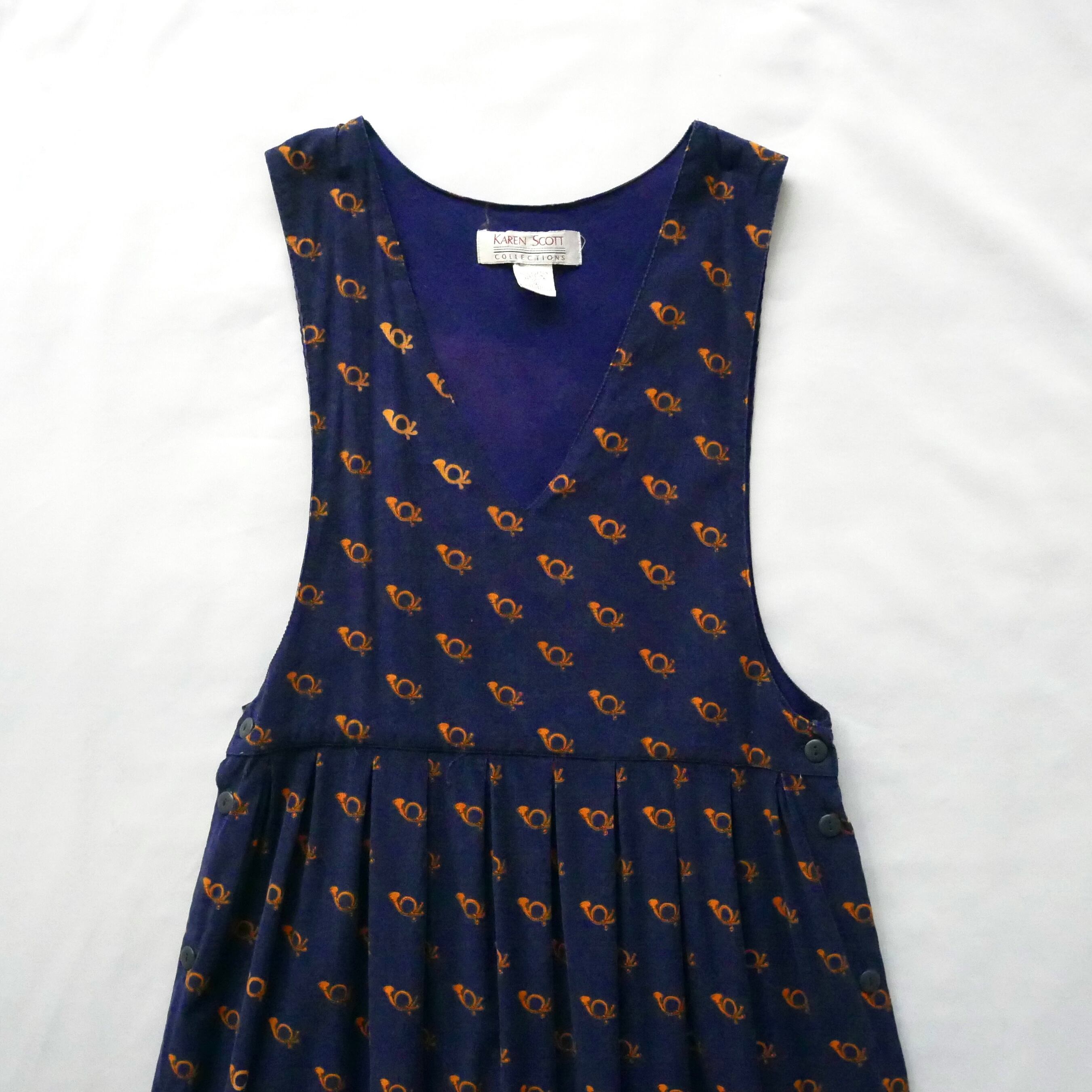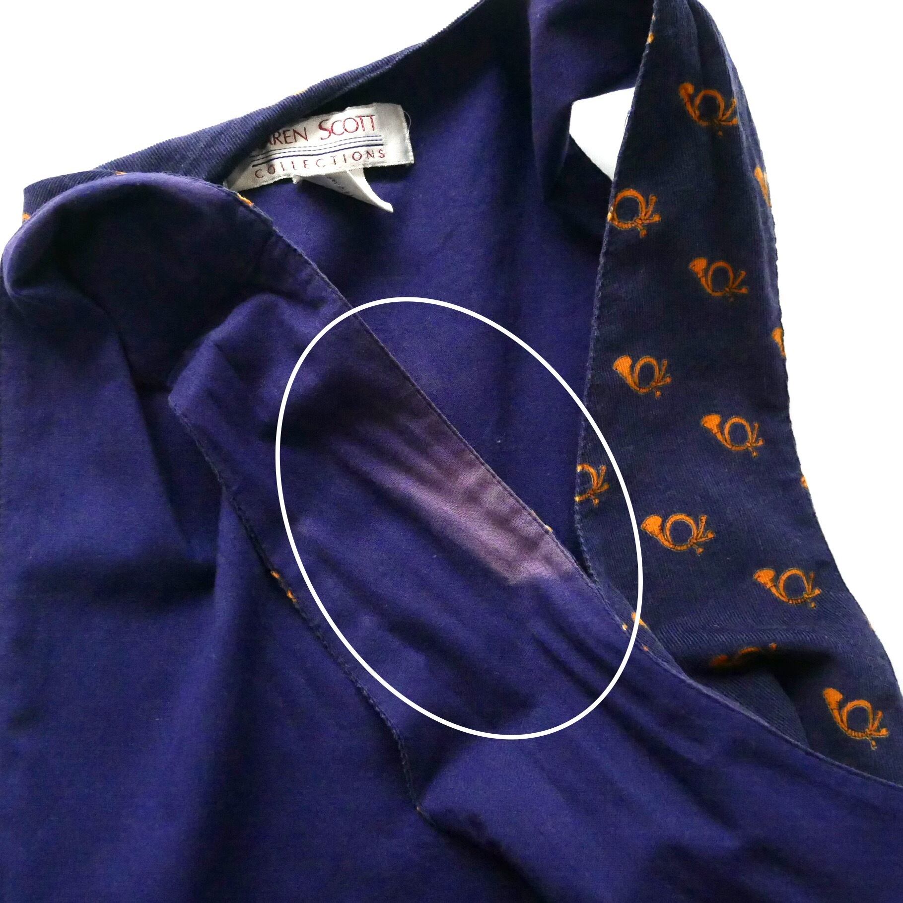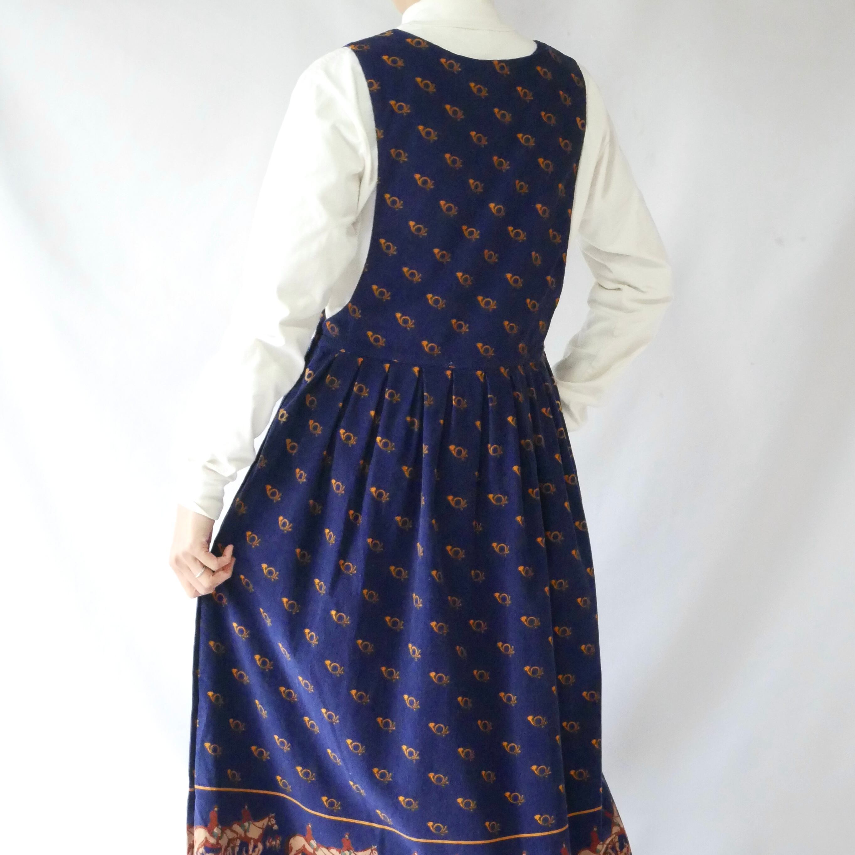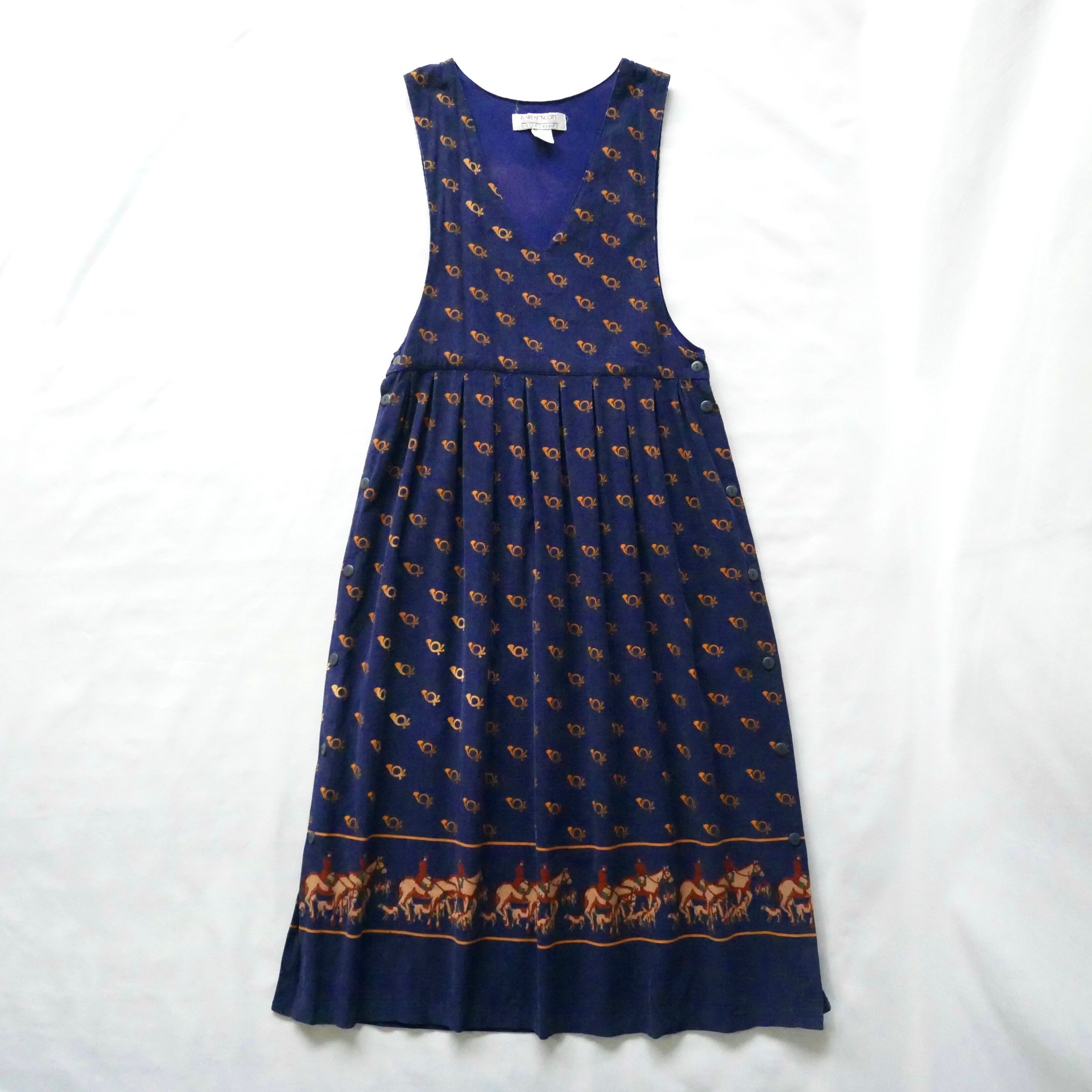 Karen Scott trumpet navy corduroy onepiece カレンスコット ネイビー トランペット 馬 総柄 コーデュロイ ワンピース