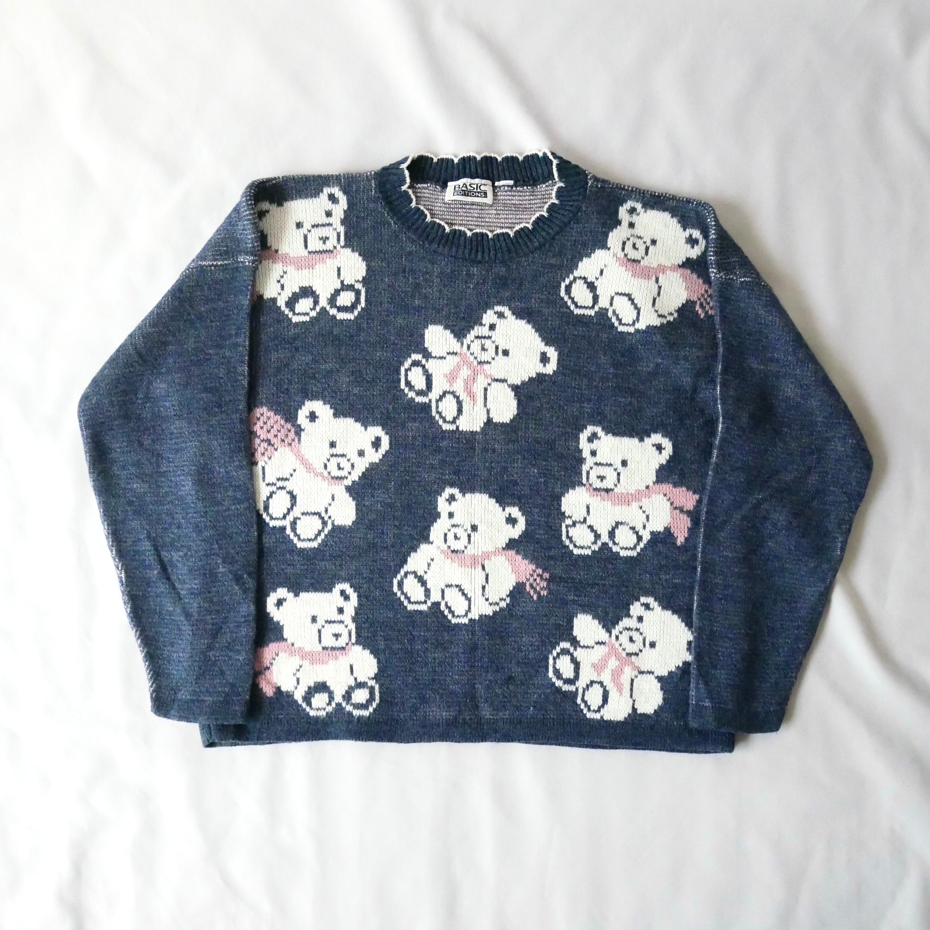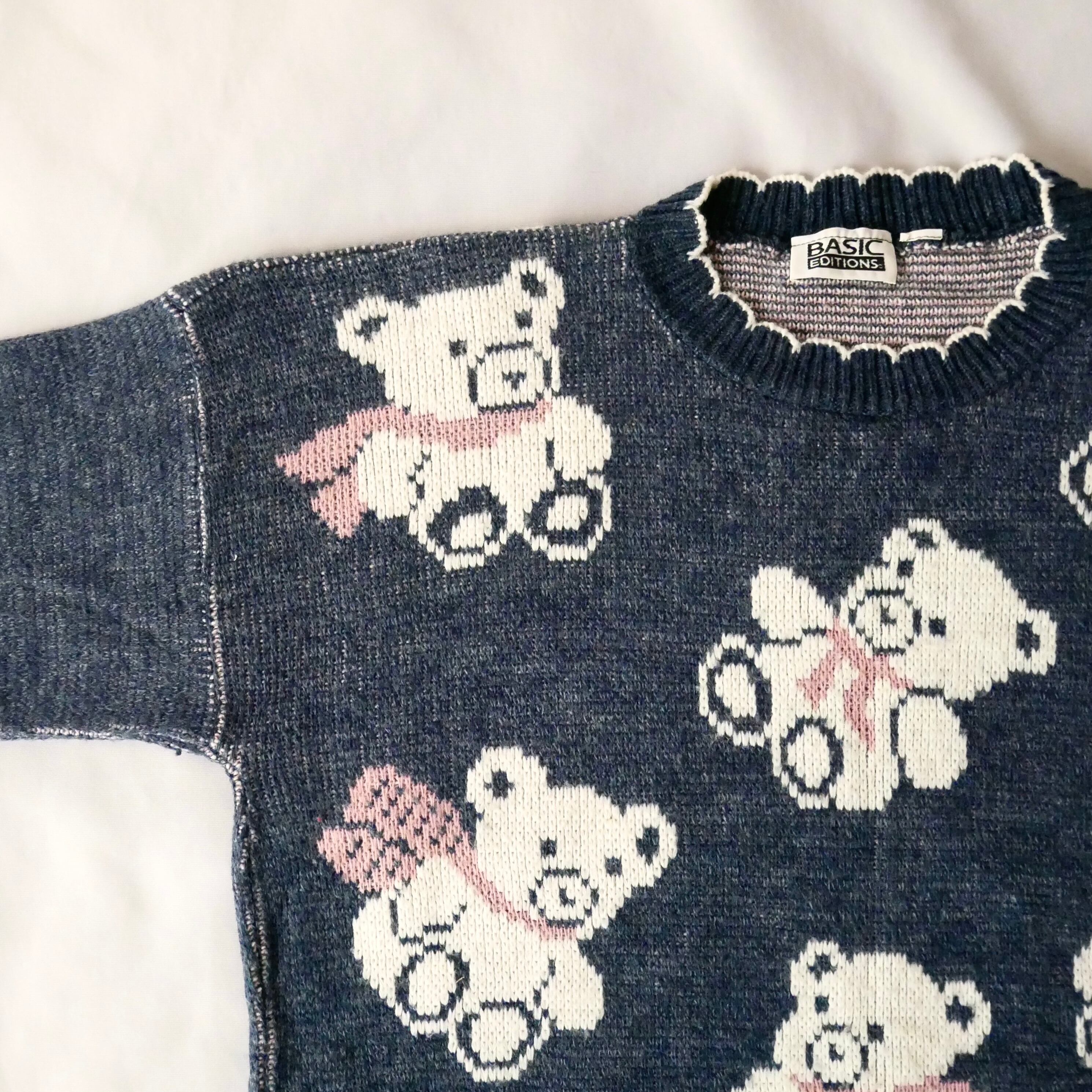 くまちゃんが前後にデザインされている80年代頃のジャガードニットです。
