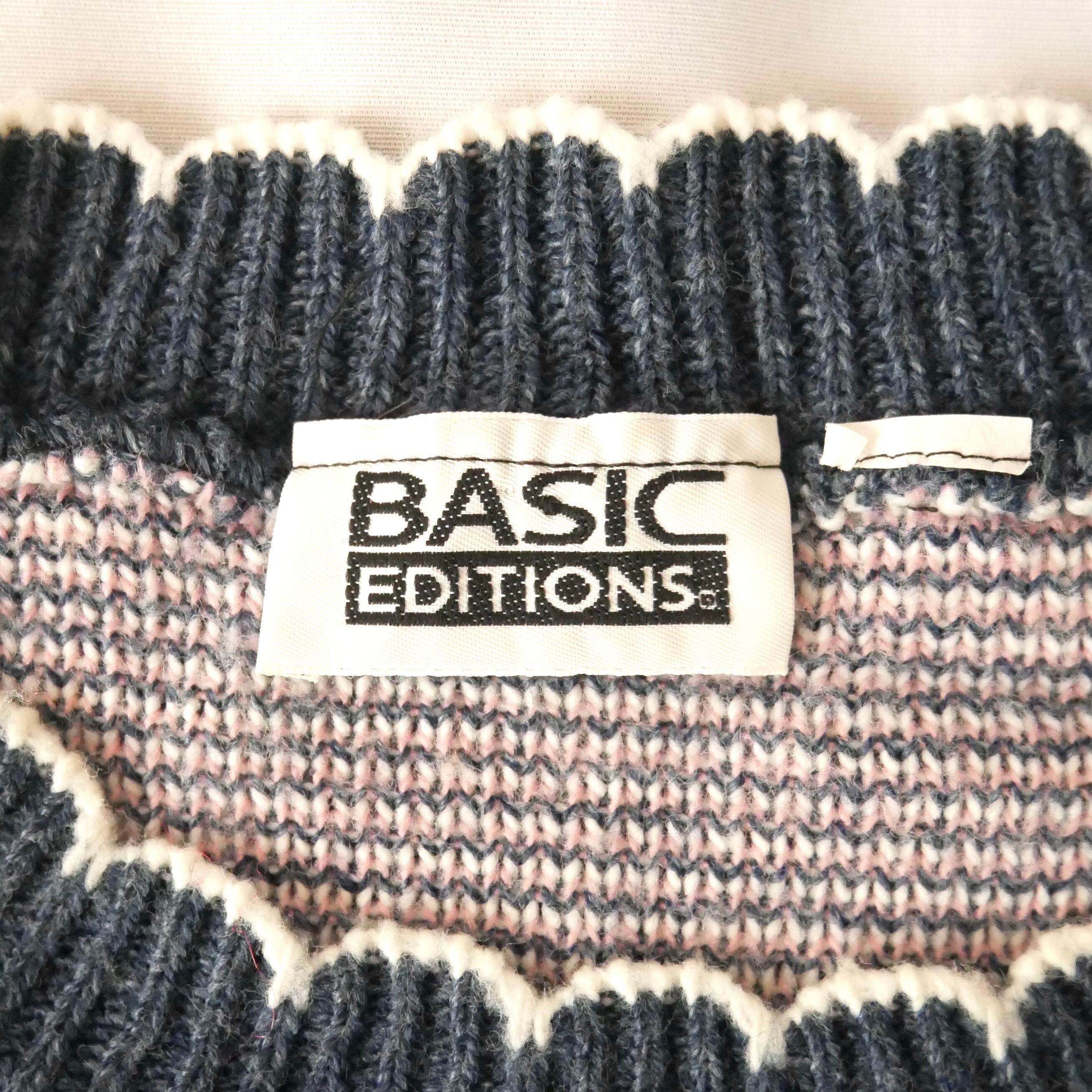 80s navy bear acrylic knit 80年代 ヴィンテージ くま 総柄 ジャガード ニット